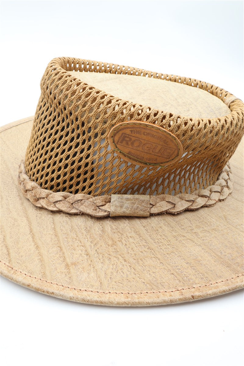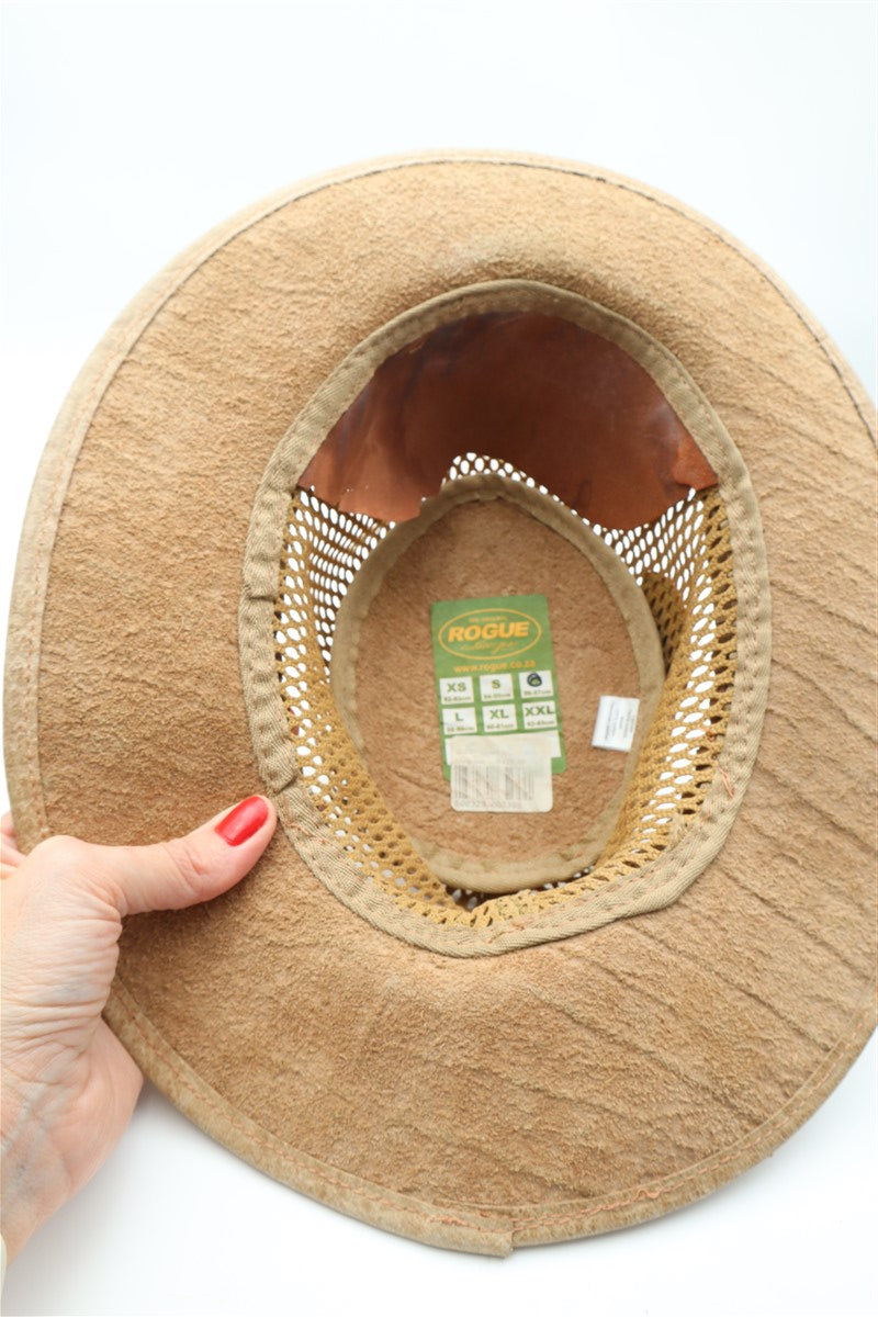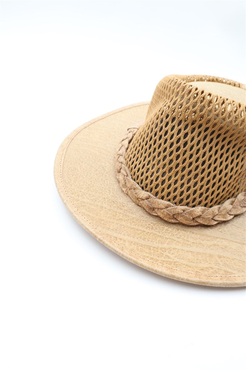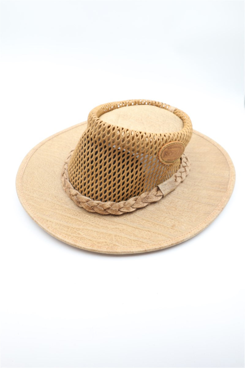 כובע מעור בבטנת כותנה בסגנון בוקרים בצבע חום כאמל