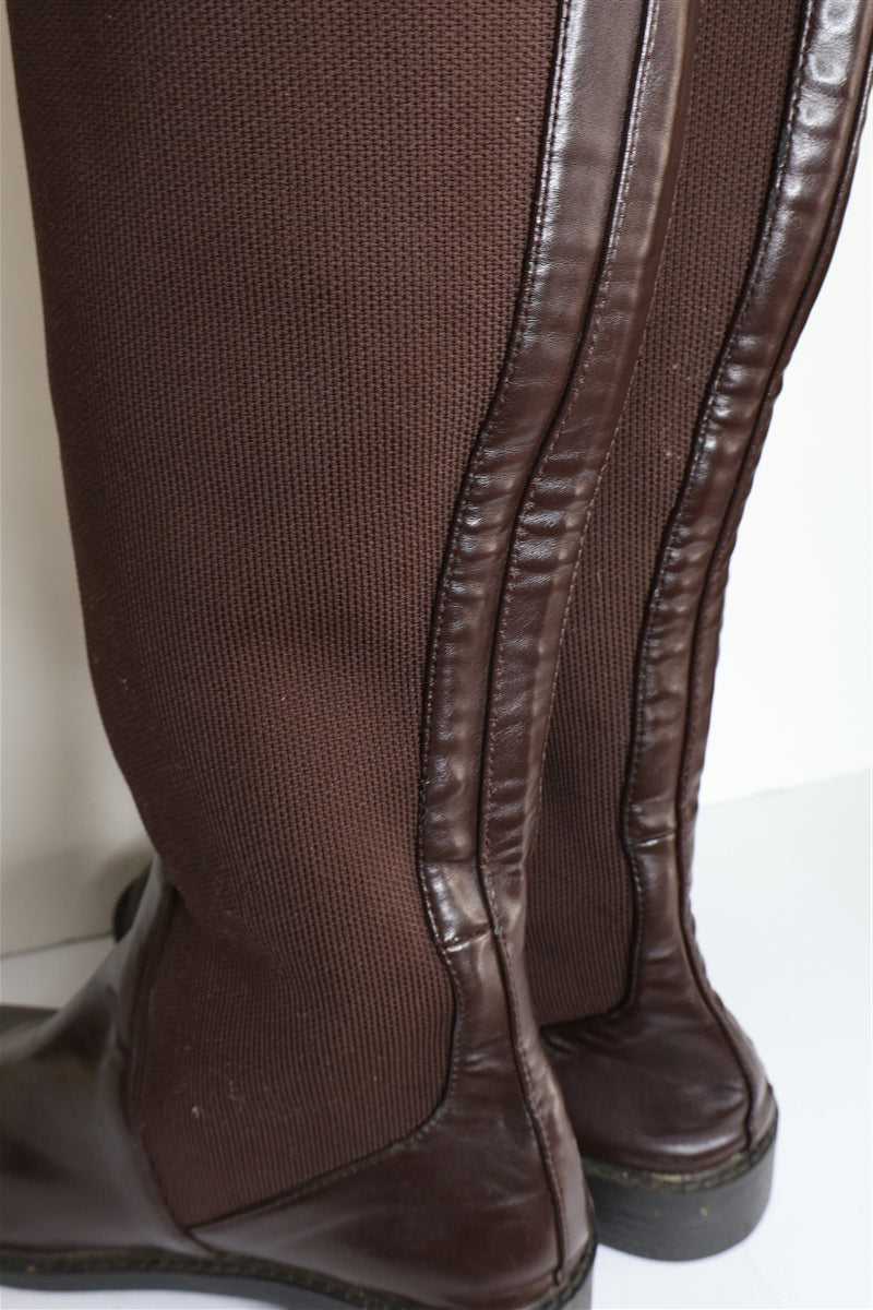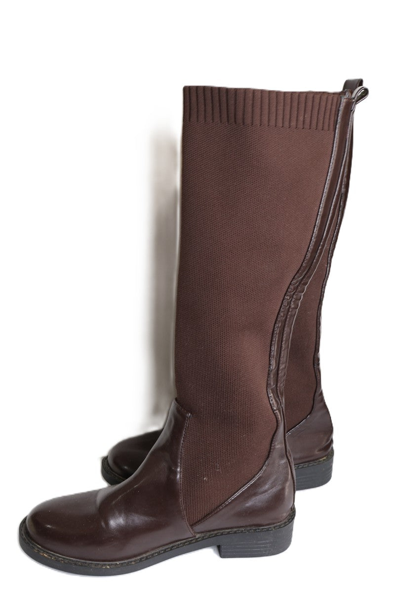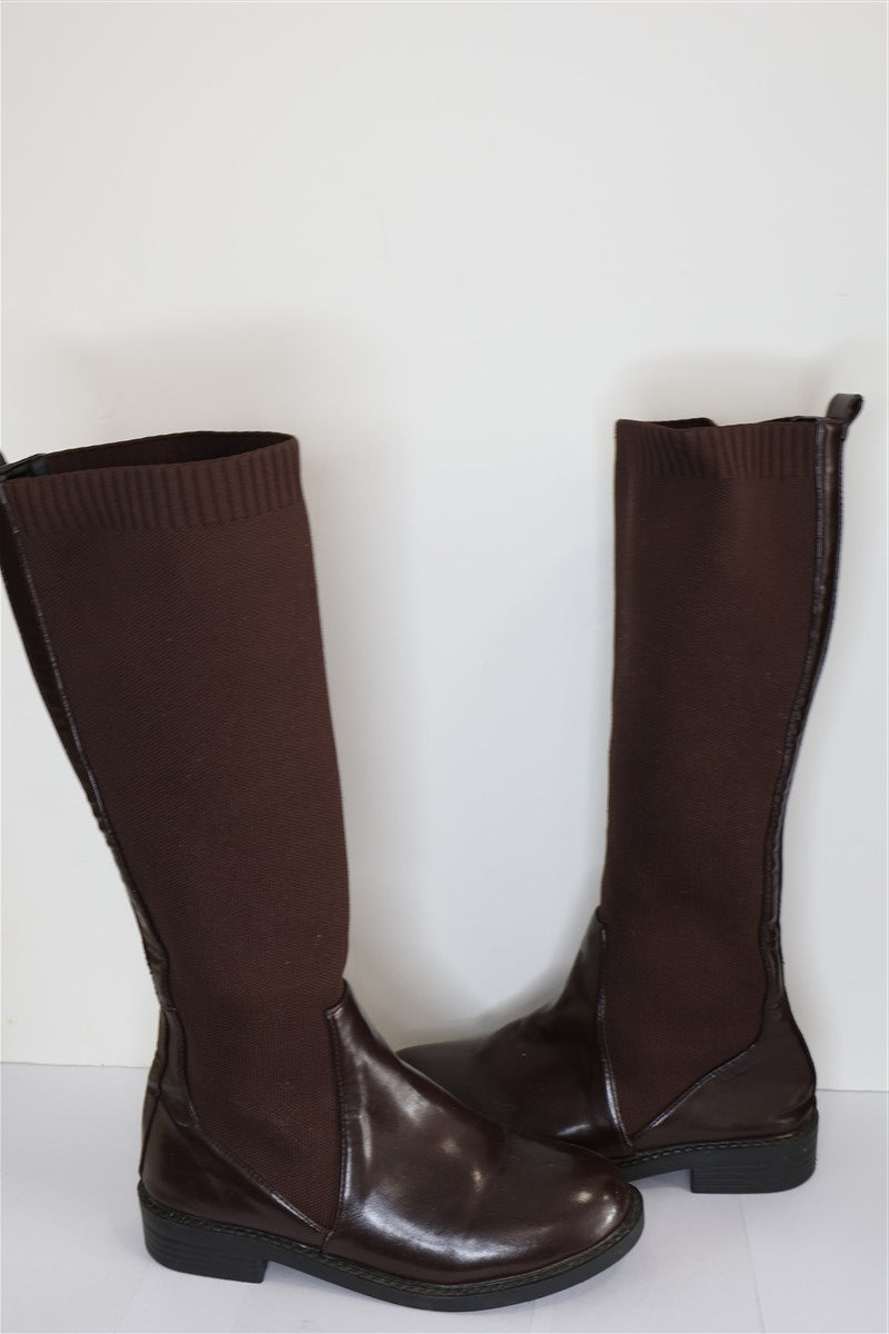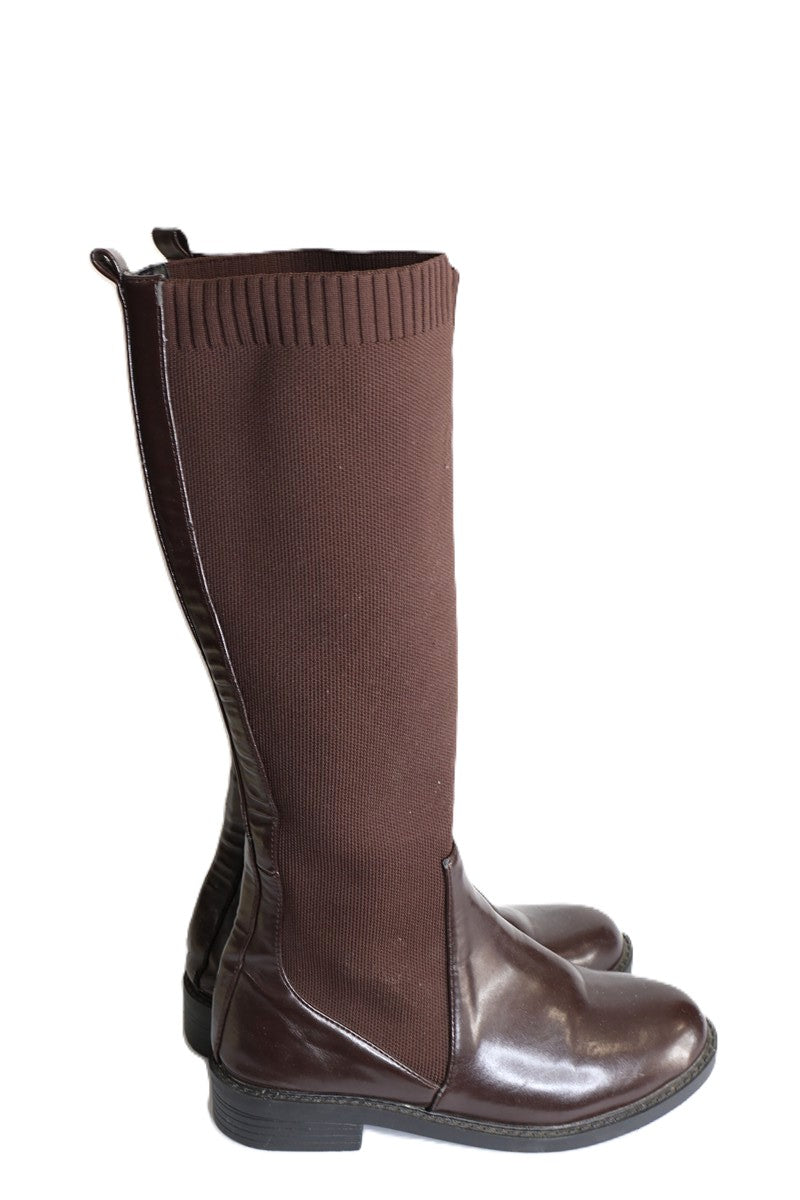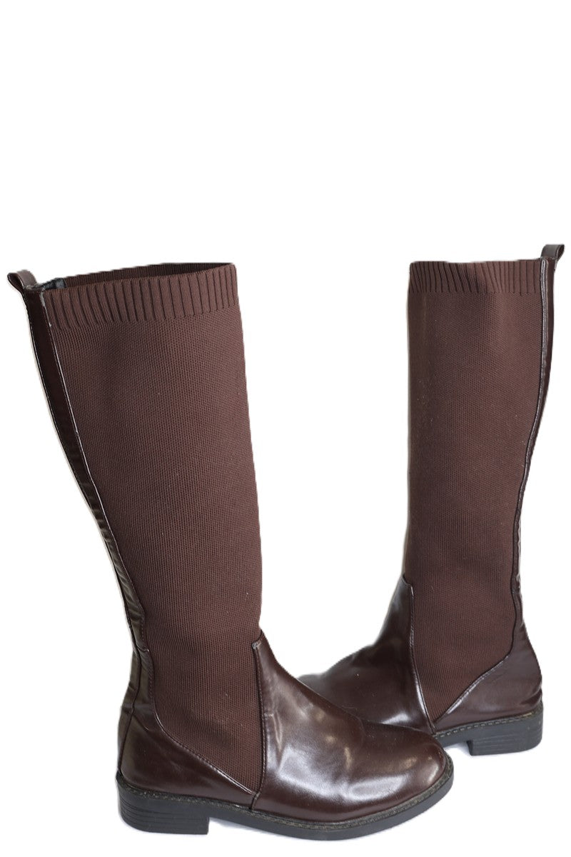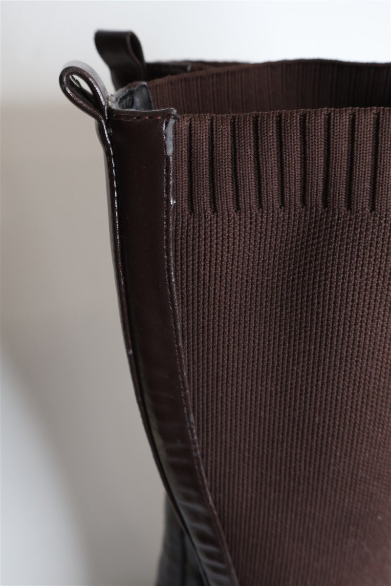 מגפי גרב בחום שוקולד, דמוי עור, מידה רשומה 40.