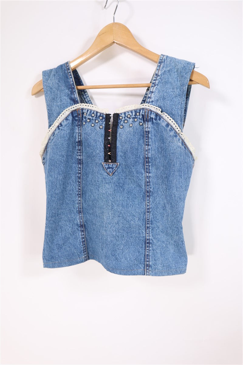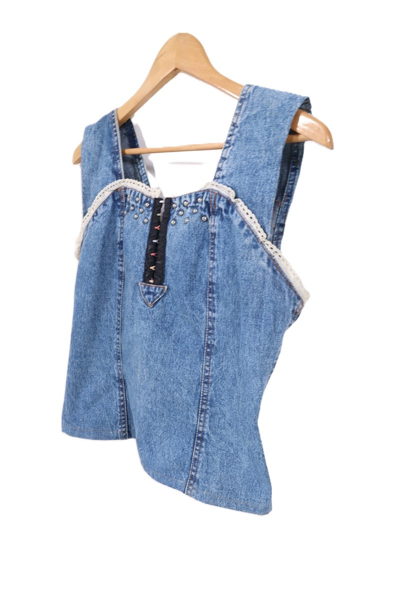 בעיטור פס קרושה בלבן בקו החזה, ניטים מתכתיים וקרסים צבעוניים מקדימה