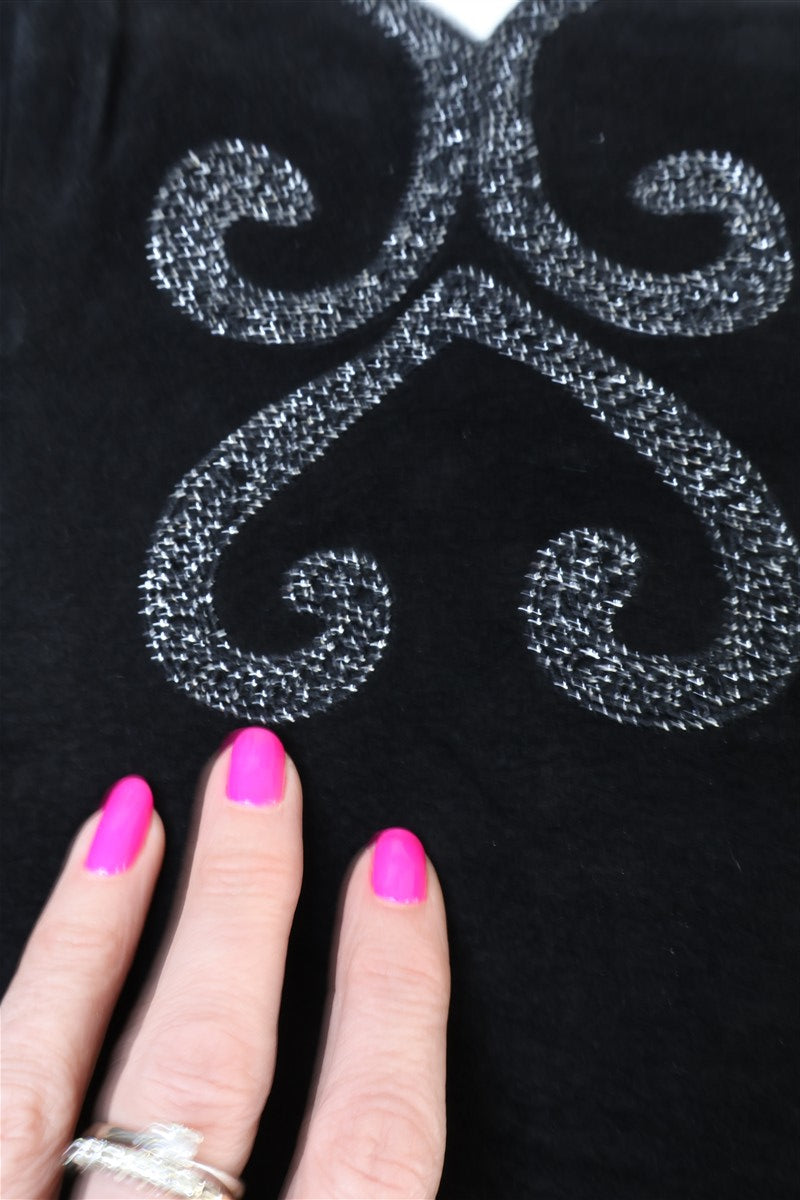 עיטור ניטים מנצנצים מקדימה להדגשת קו החזה