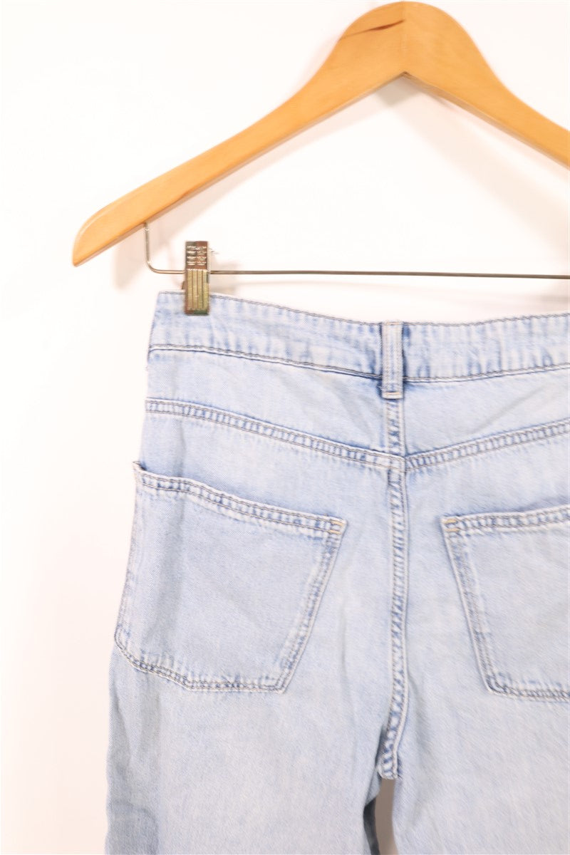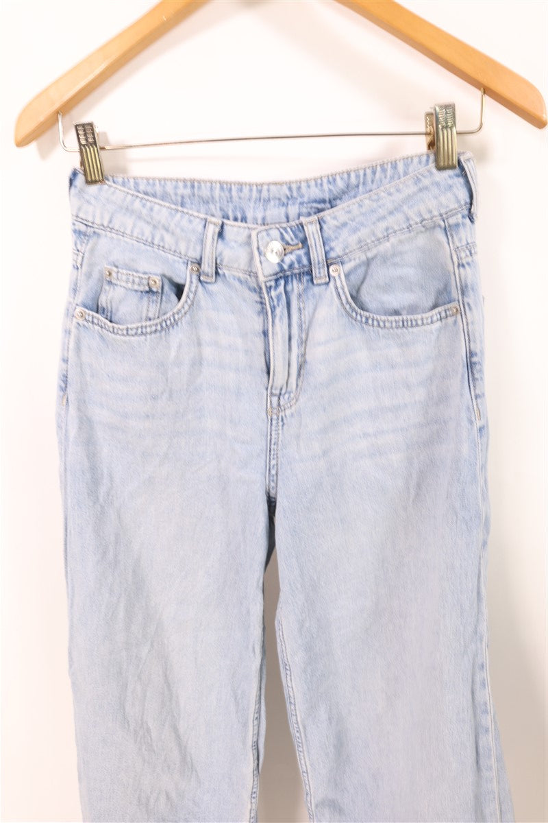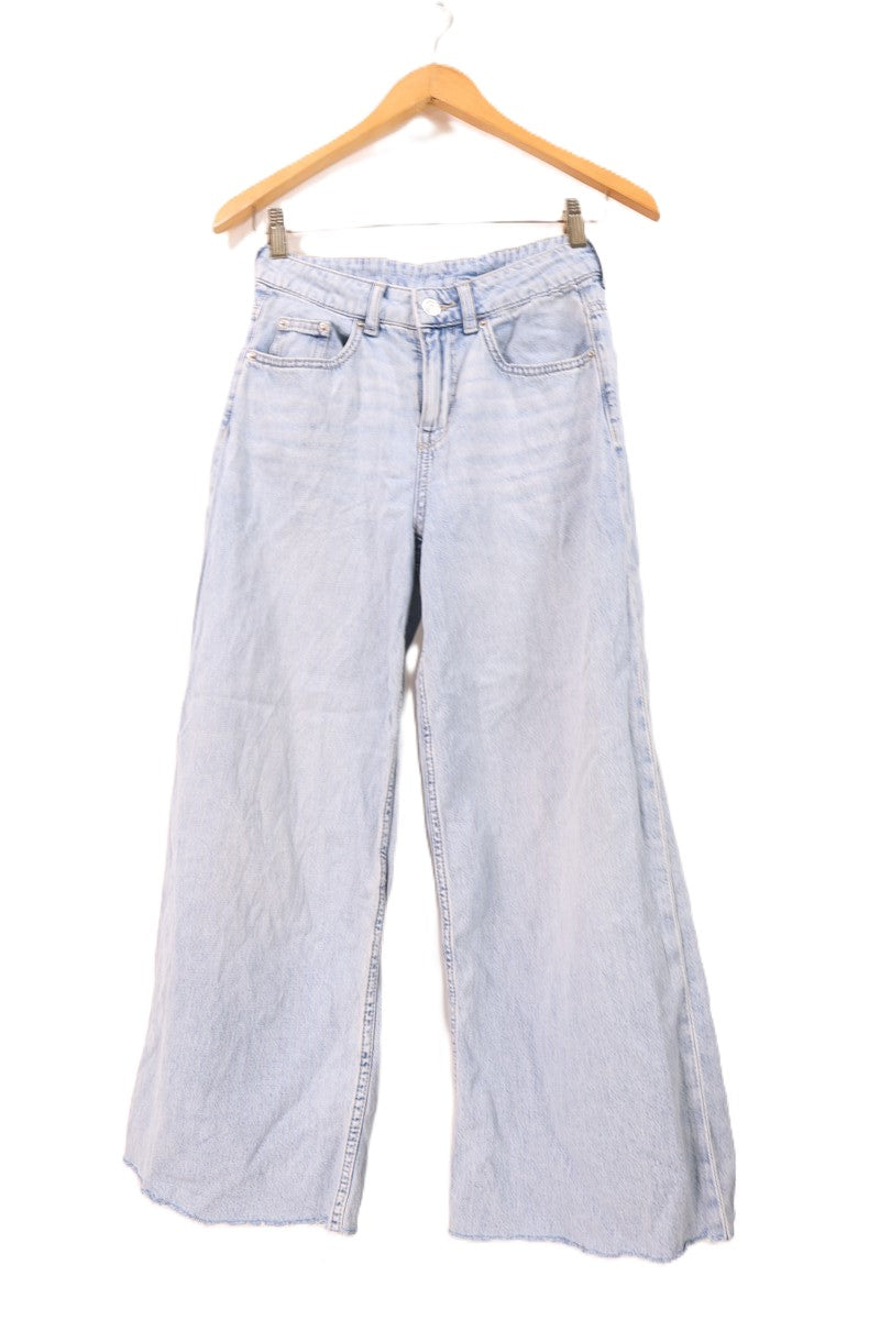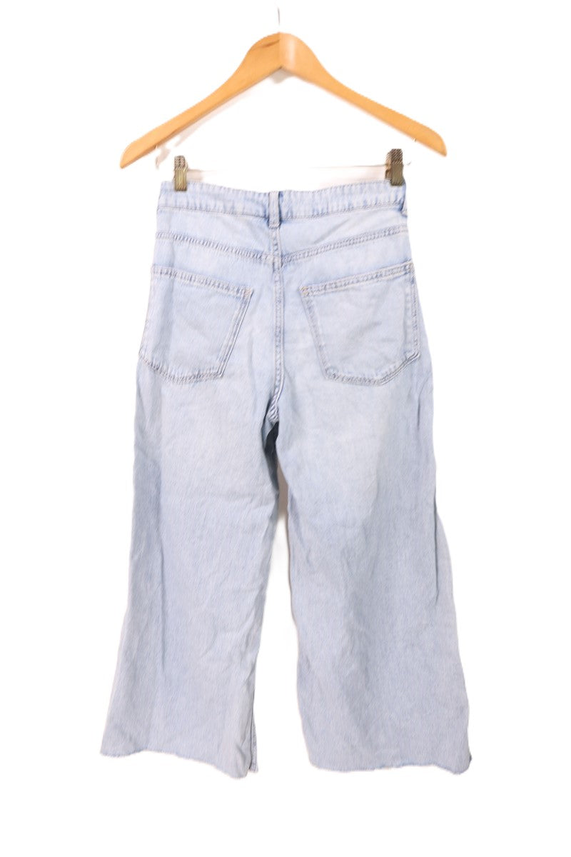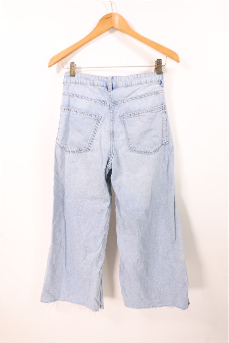 מכנסיי גינס בגזרה גבוהה ומתרחבת 7/8 בתכלת
