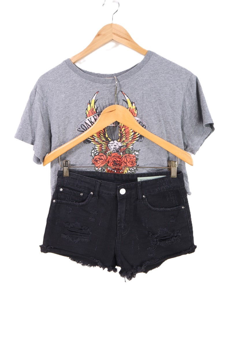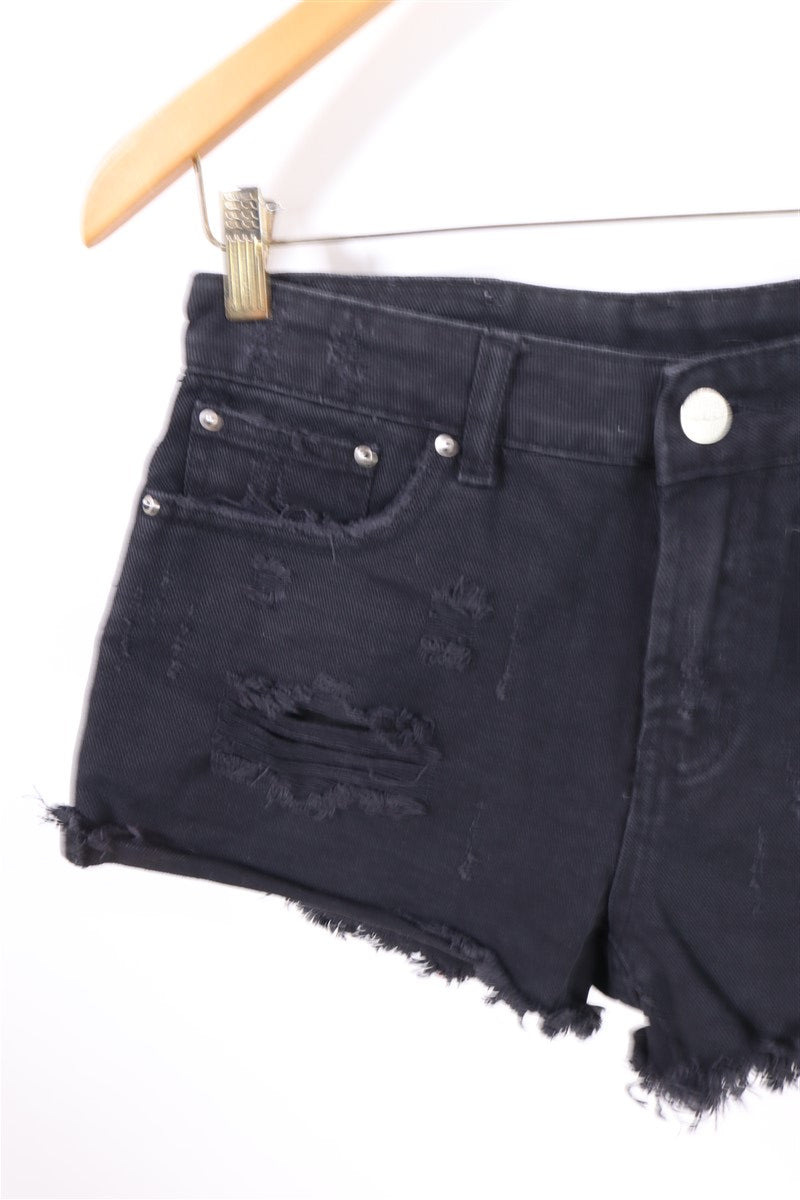 מכנסיים בסטייל שורט גינס בשחור- XS