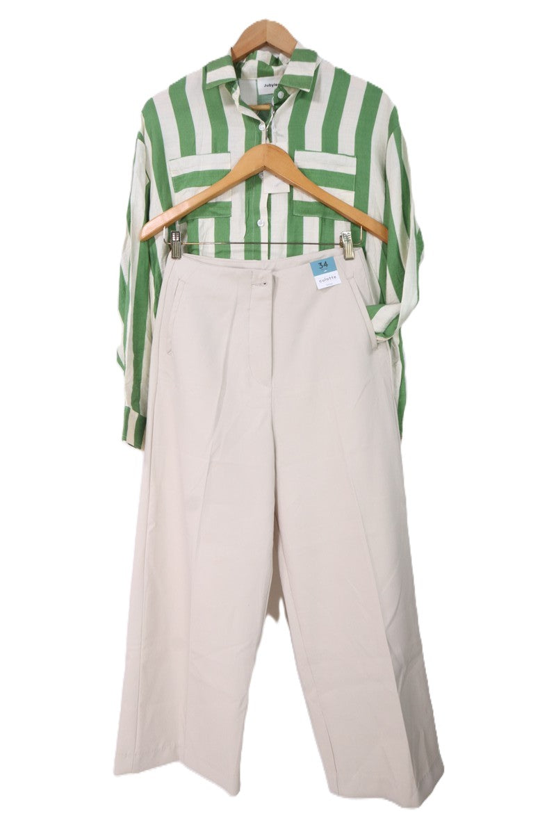 מכנסיים מתרחבים 7/8 בניוד בגזרה גבוהה