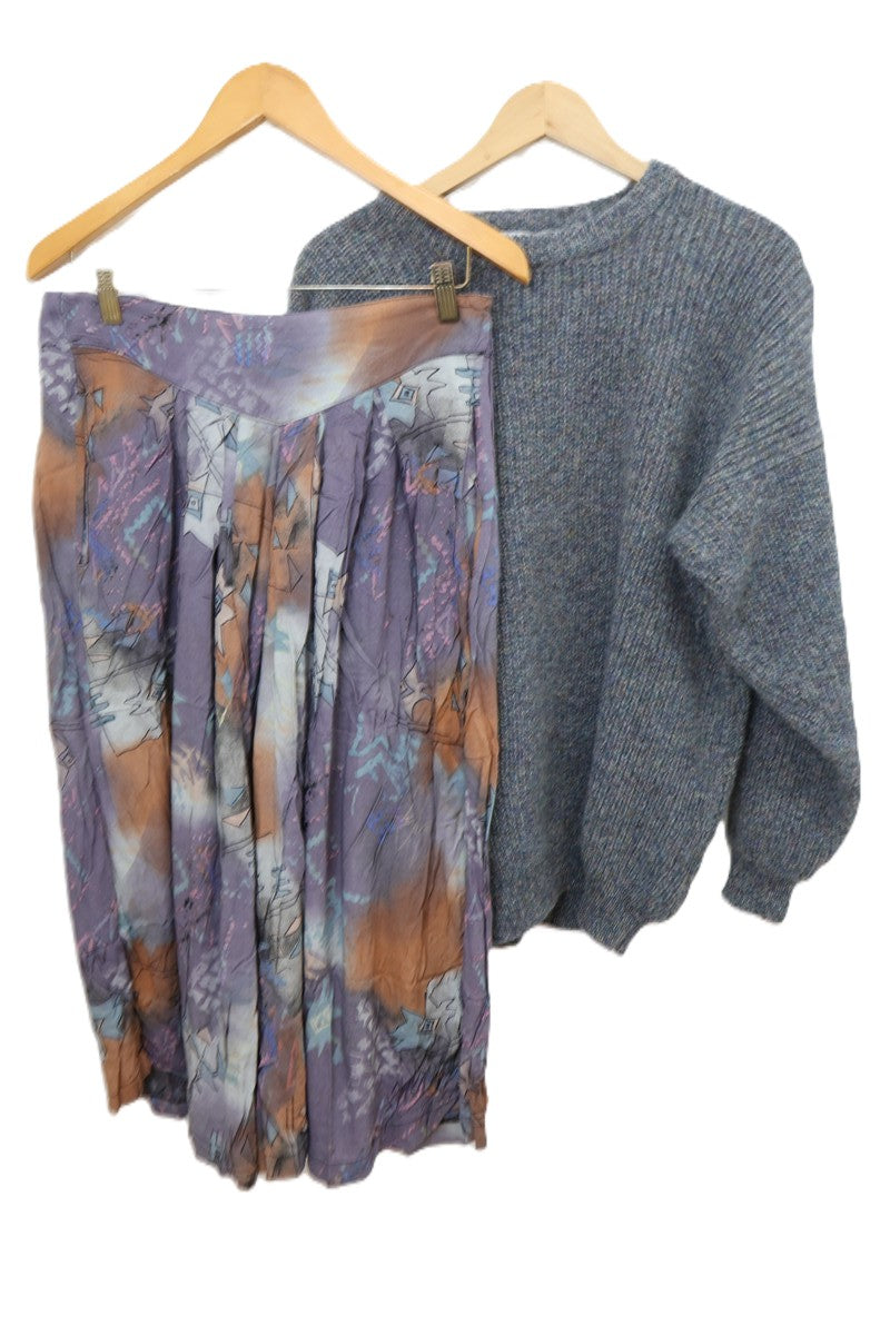 מכנסי חצאית וינטיג בגזרה גבוהה בצבעי סגול אםור