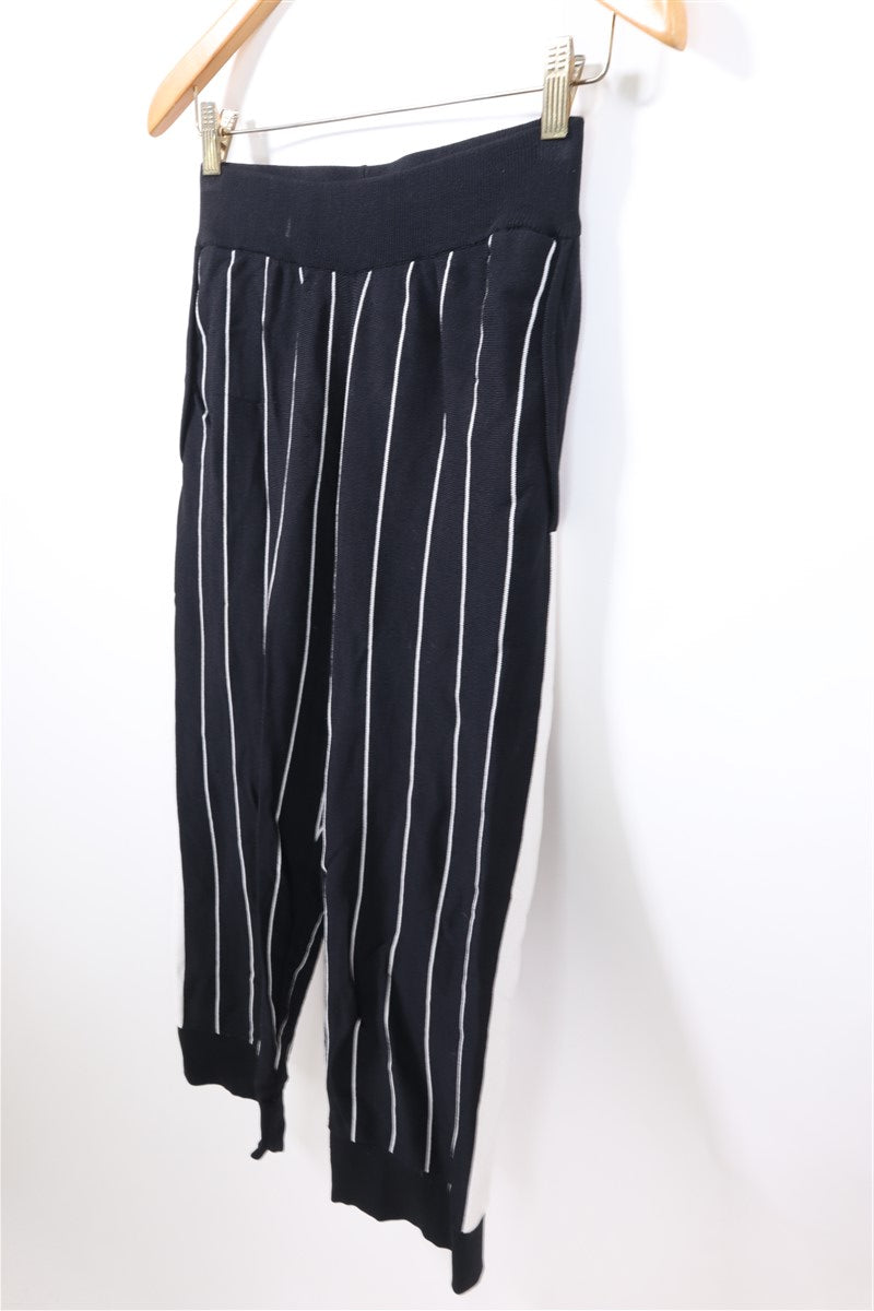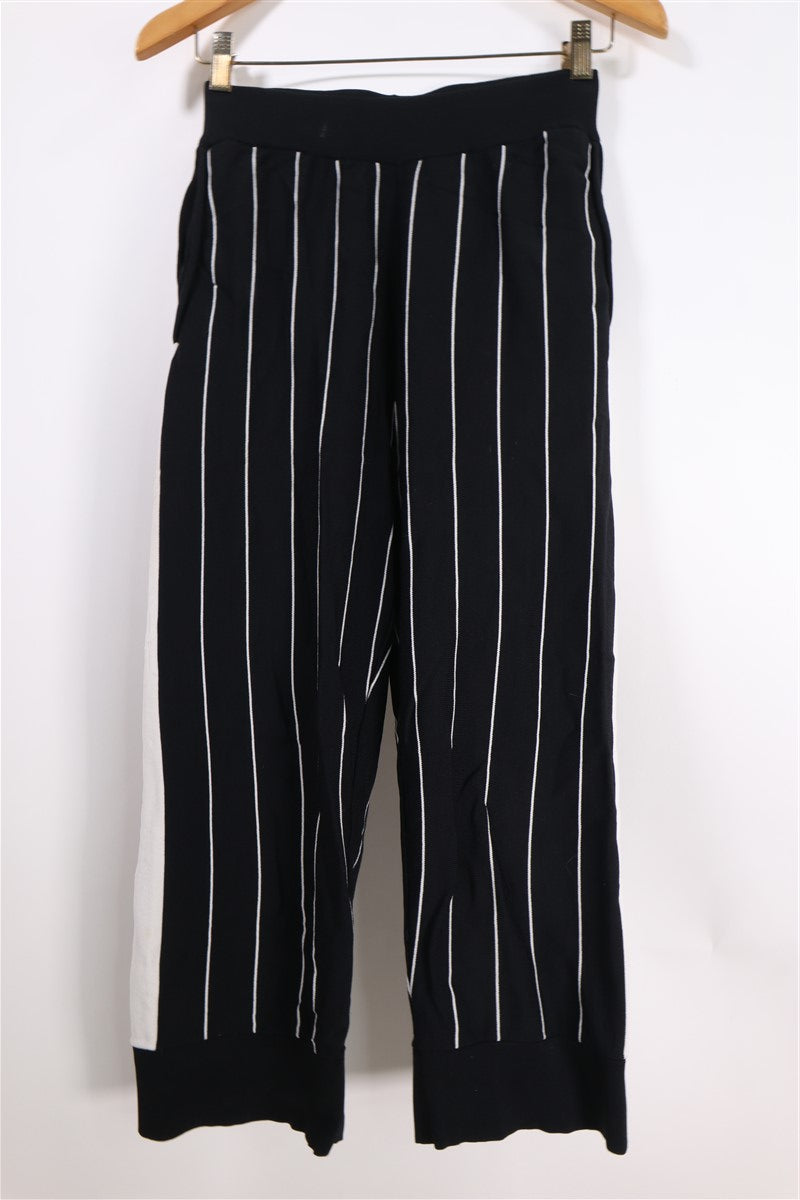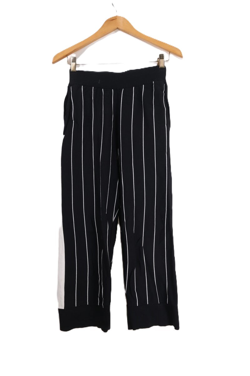 מכנסי בד 7/8 בסטייל ספורטיבי עם פסי אורך בלבן ופס עבה בצד