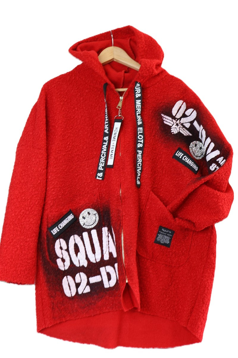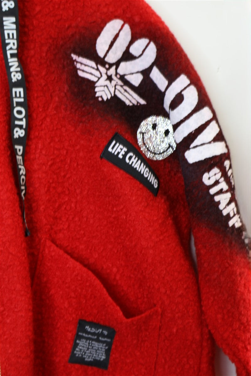 מעיל גקט מעוצב ומקשוקש באדום- L-XL