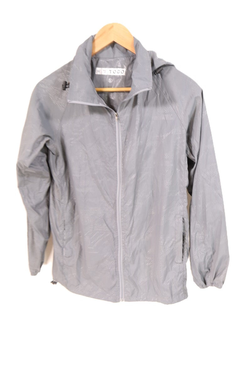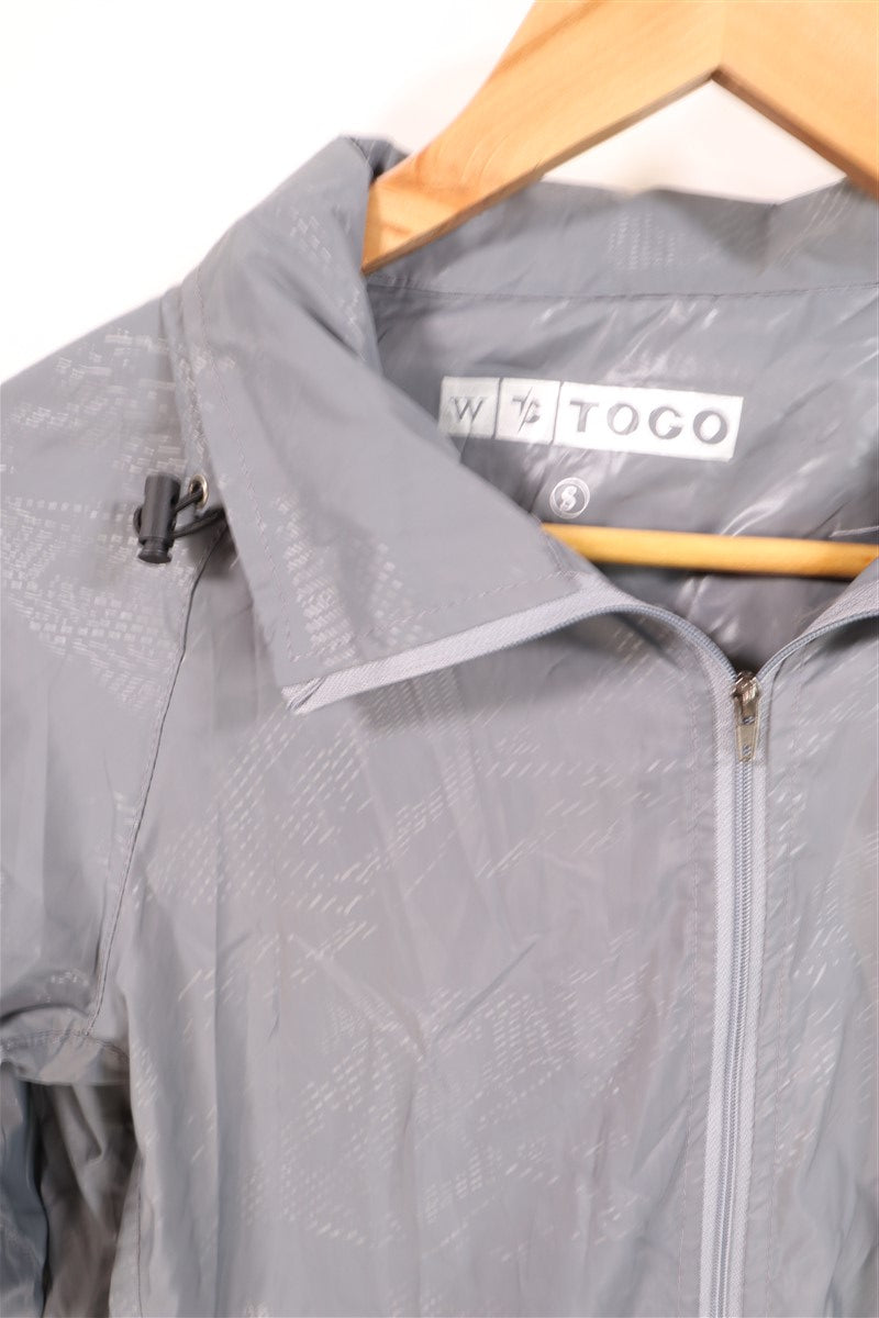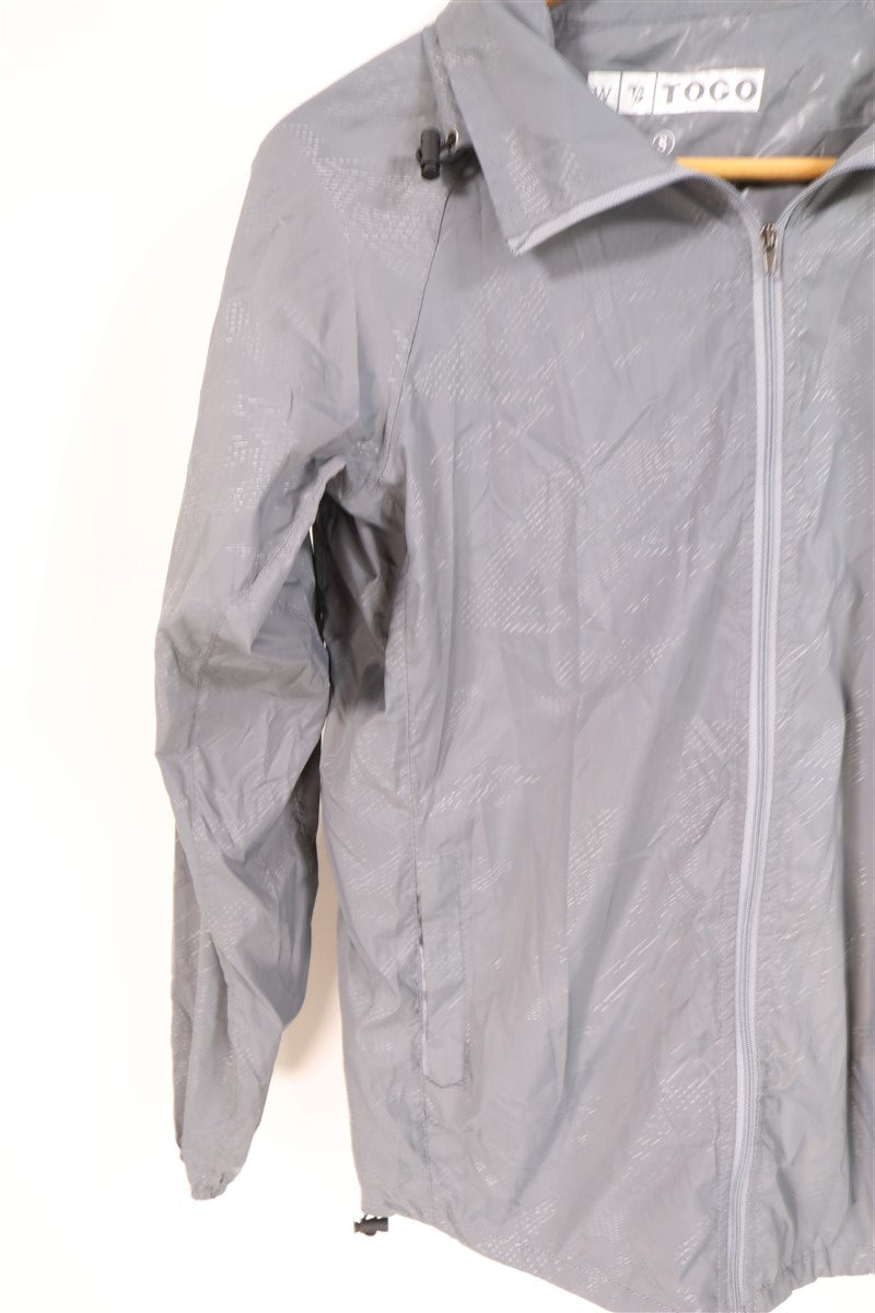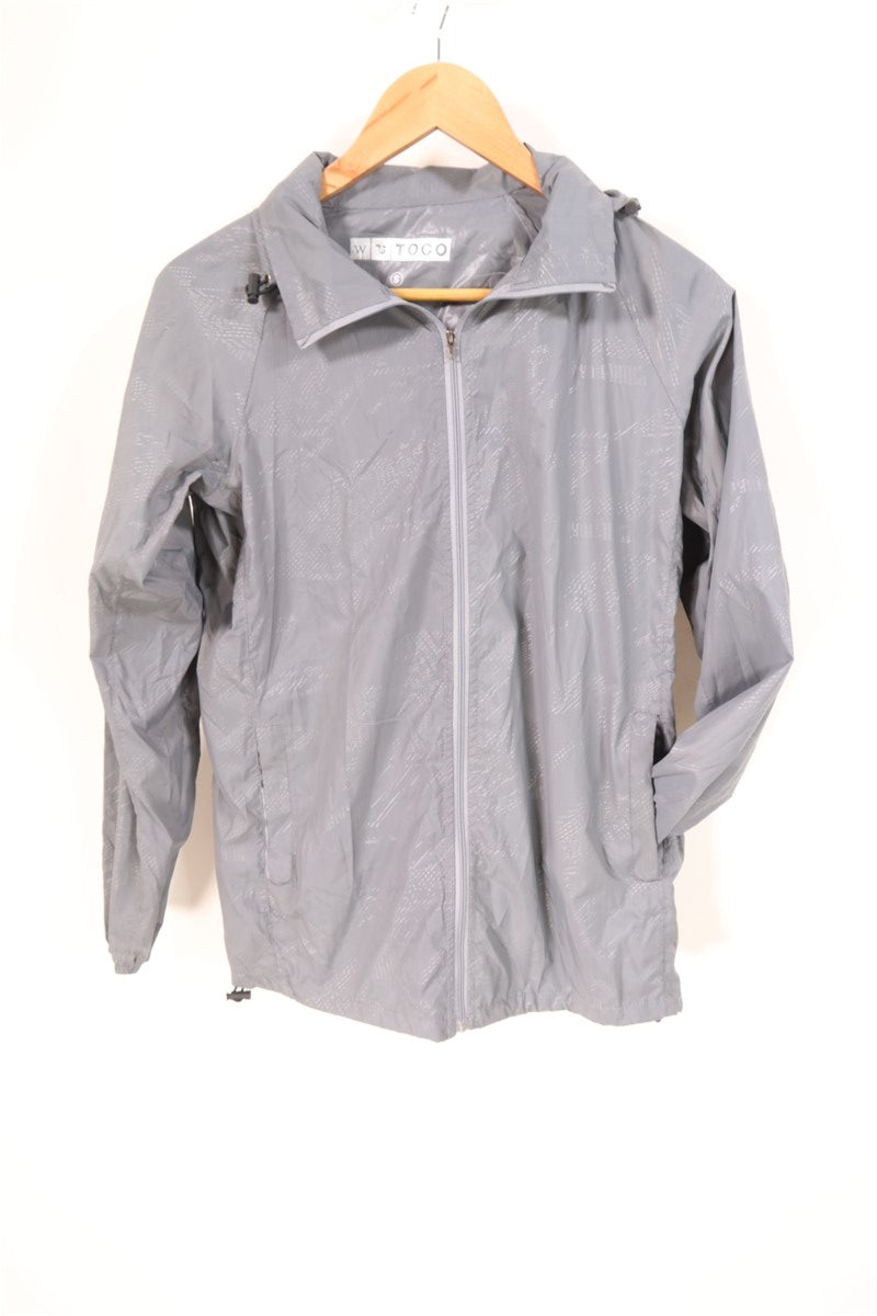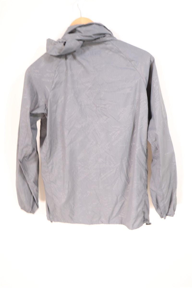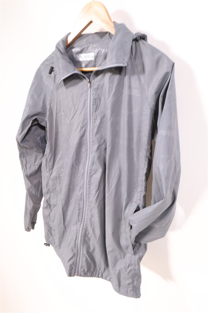 מעיל דק גשם בצבע אפור בגימור מבריק עם שני כיסים בצדדים בסגירת רוכסן