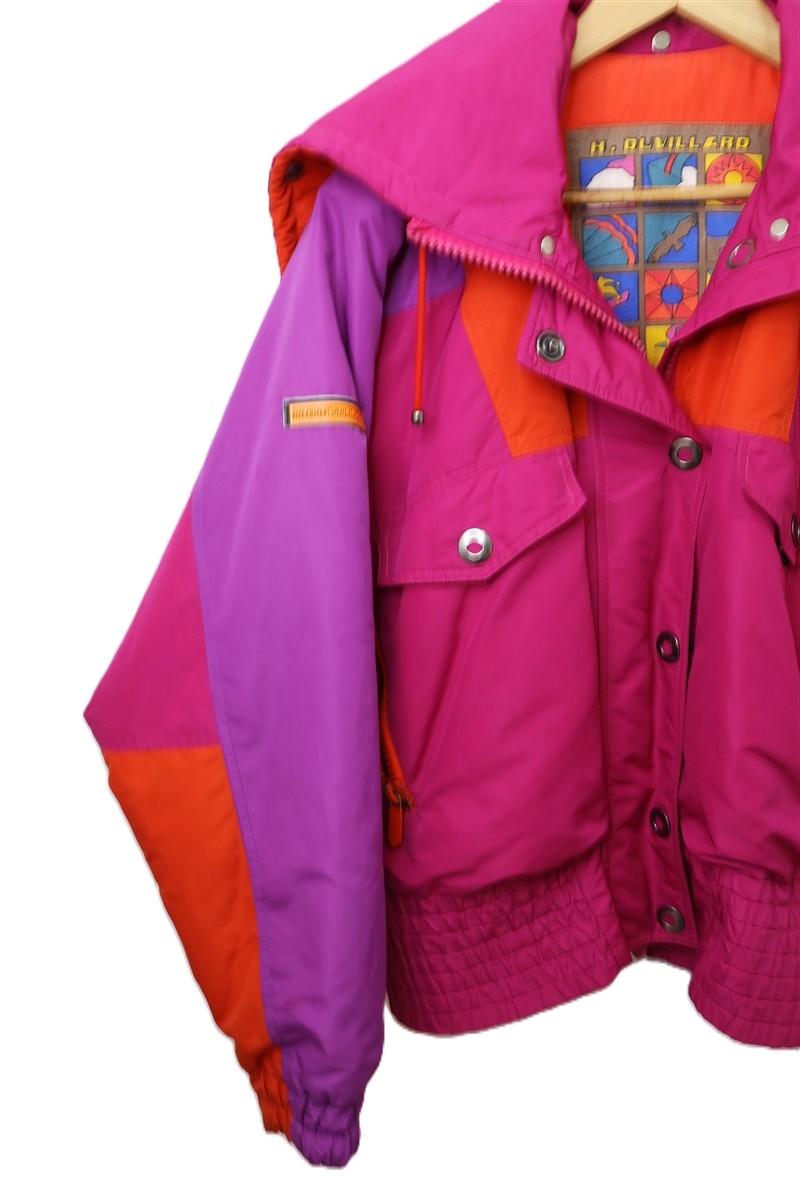 בצבע ורוד ובשילוב מקטעי צבע בסגול וכתום ופרינטים מיוחדים