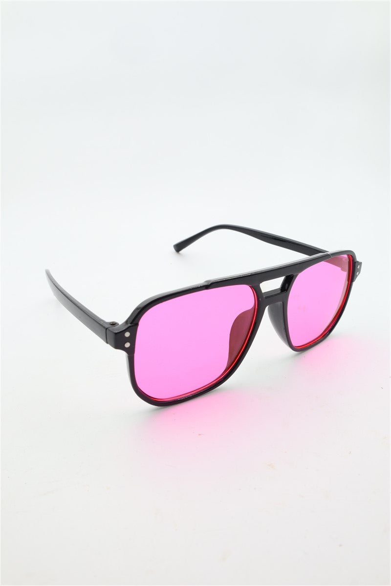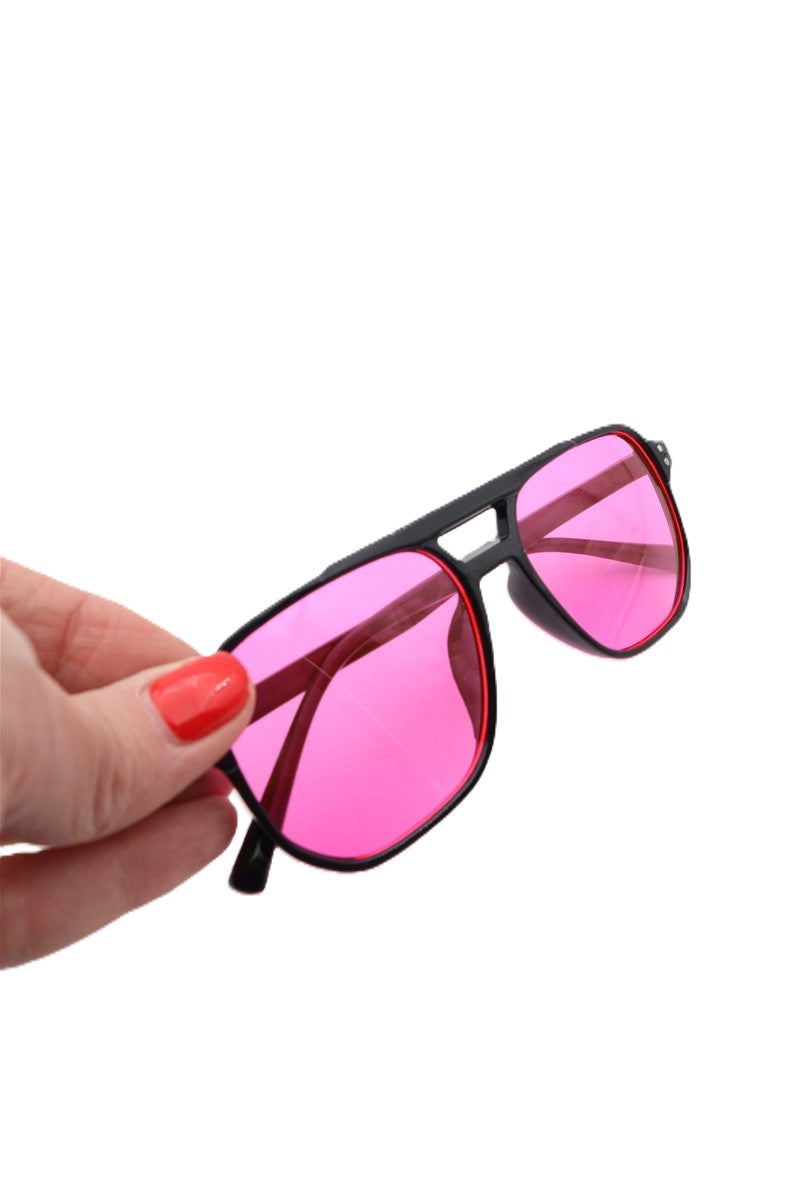 משקפי שמש מעוצבות בסגנון רטרו עם עדשה שקופה בצבע ורוד