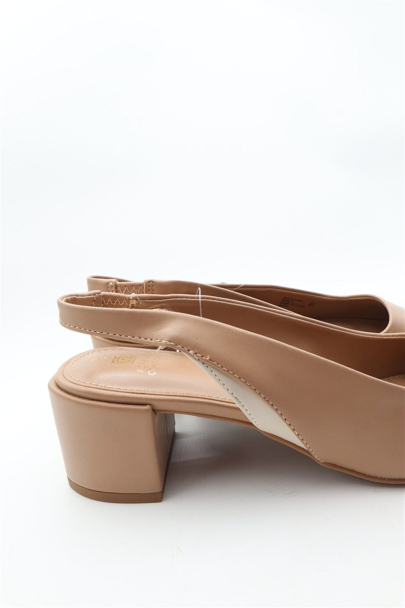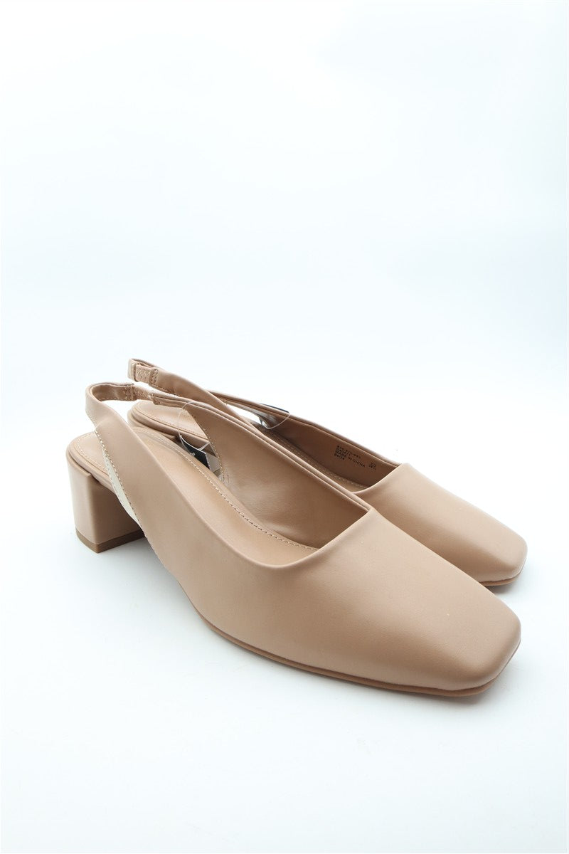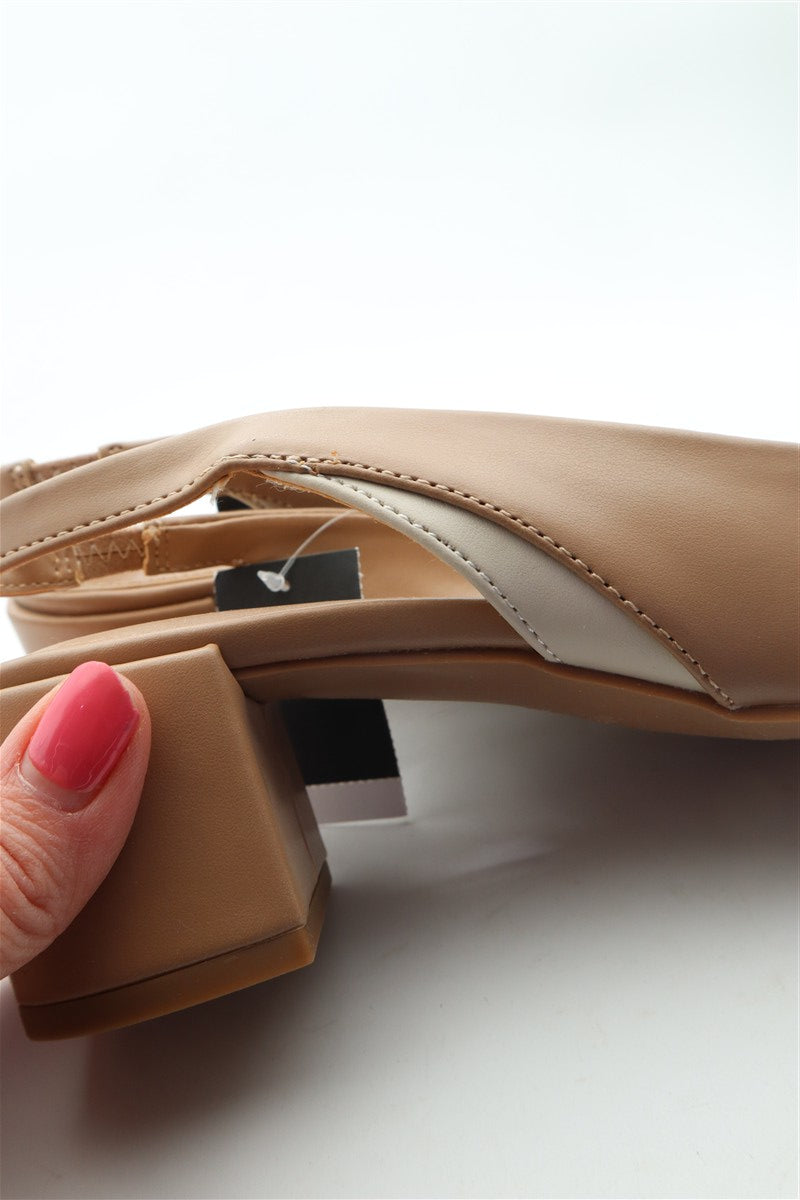 נעלי עקב בסגנון בובה בצבע ניוד קרם