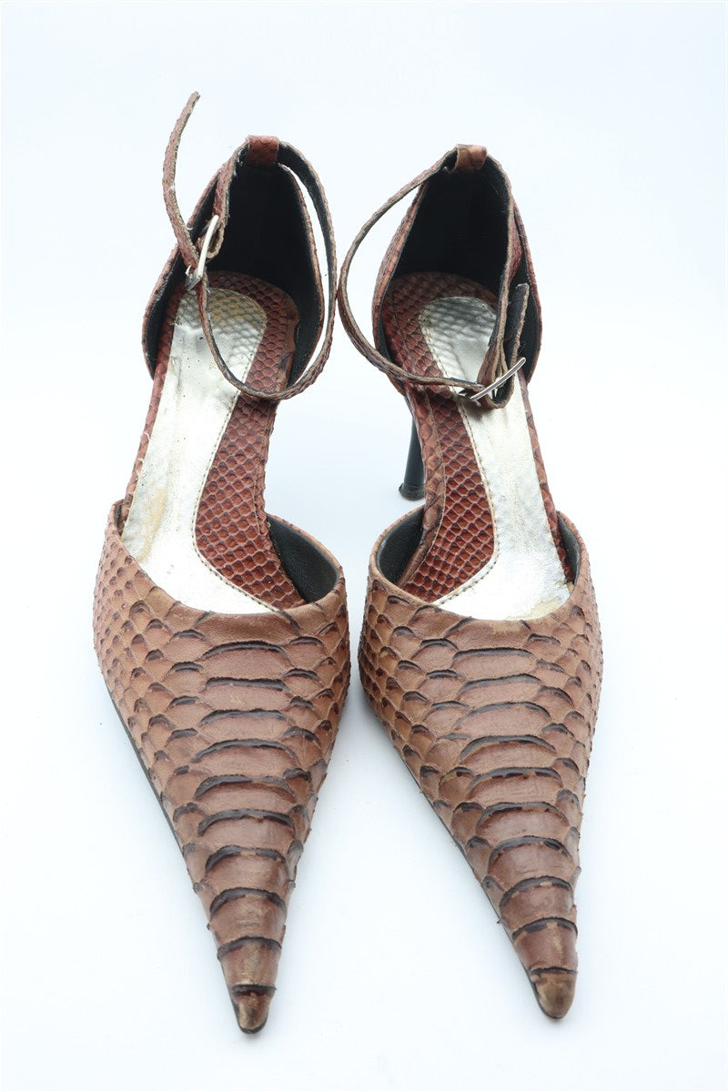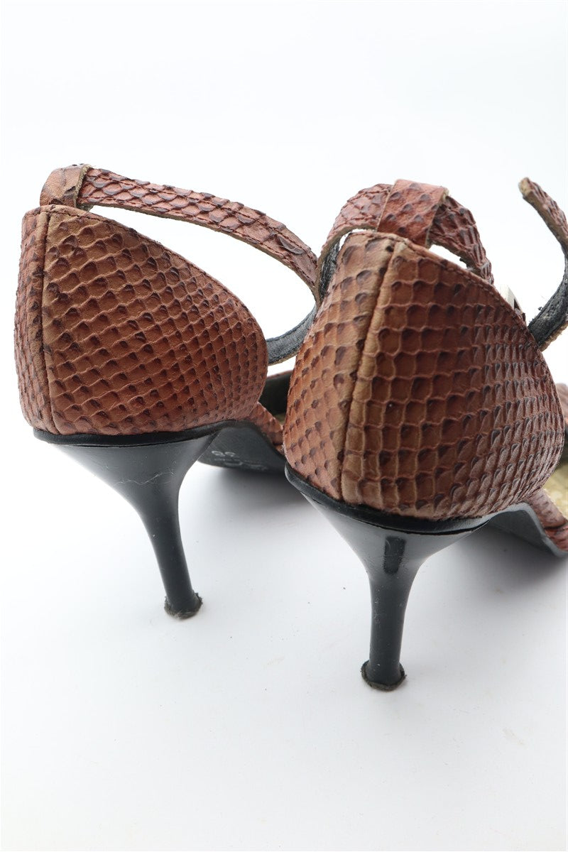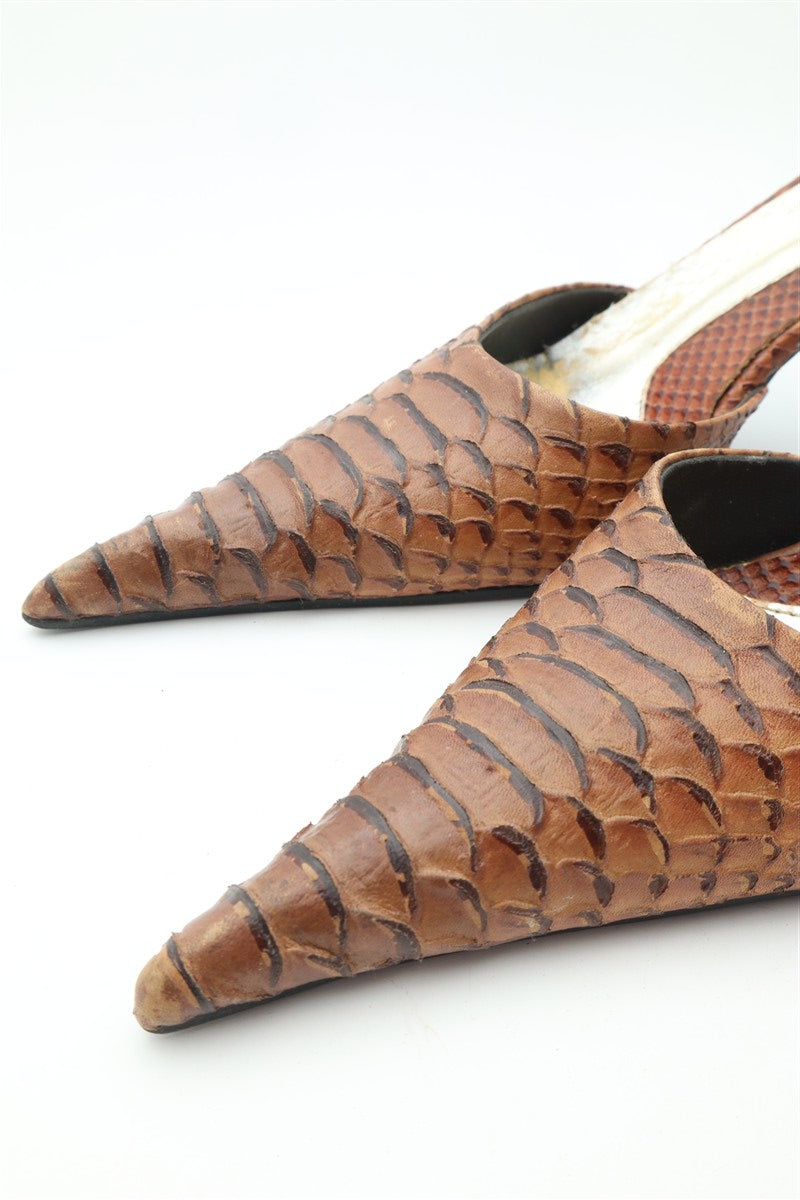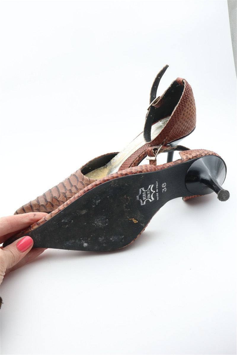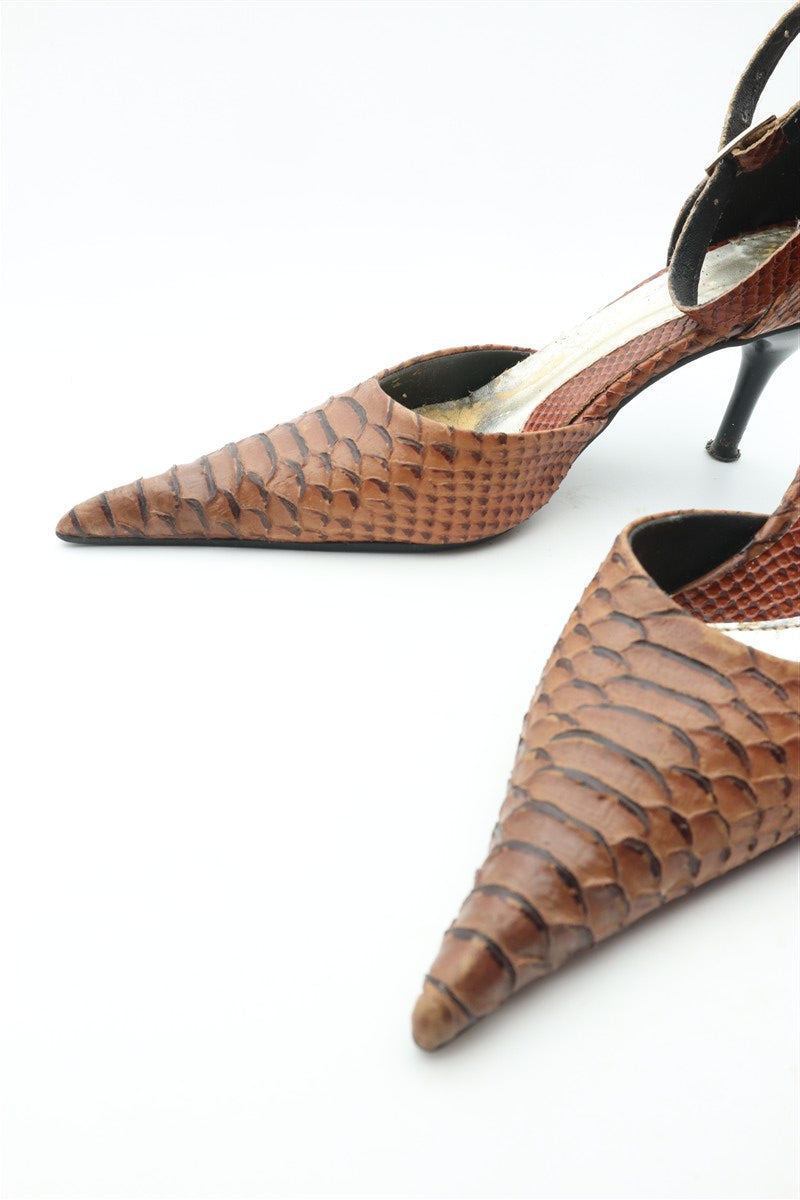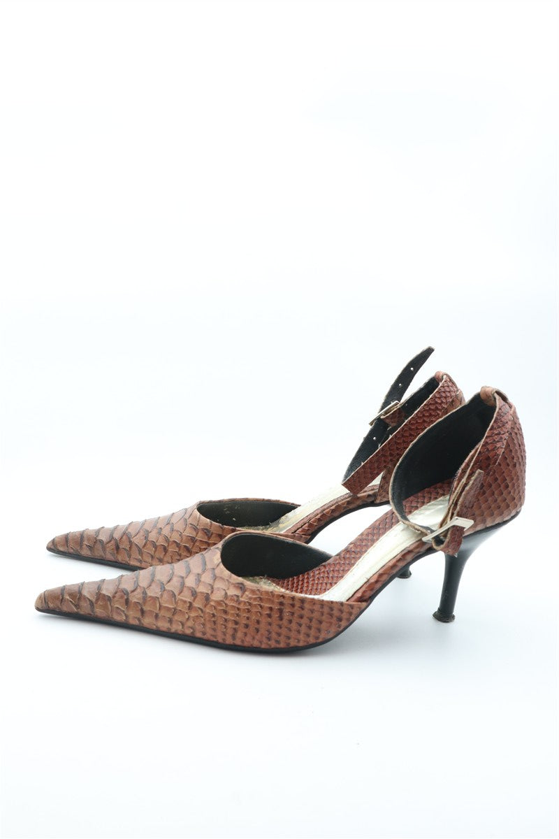 נעלי עקב וינטיג מעור שפיצים בחום - מידה 38