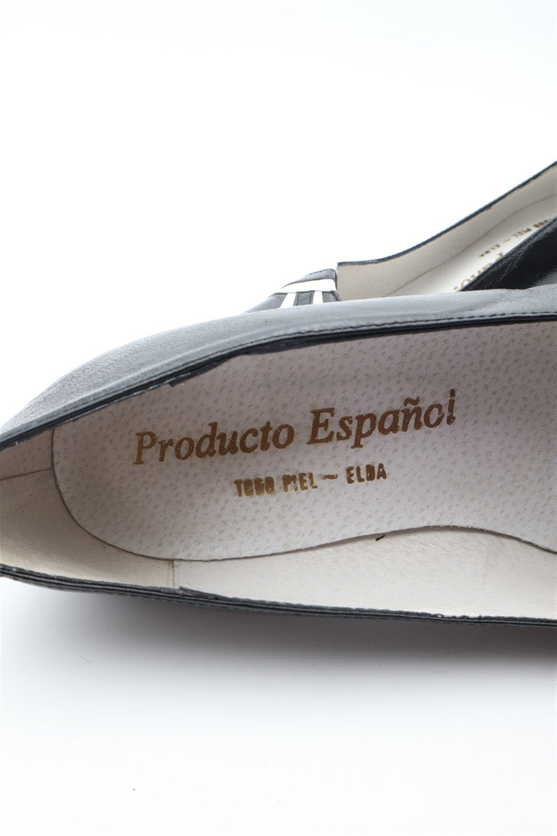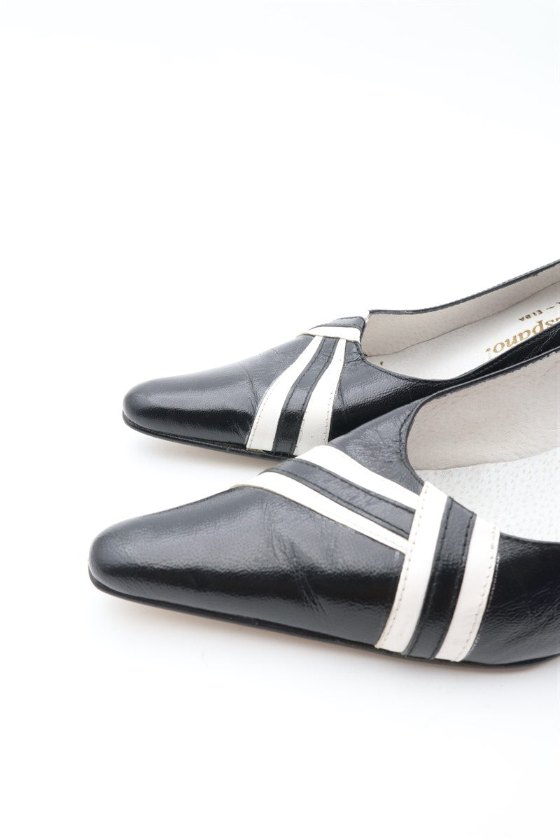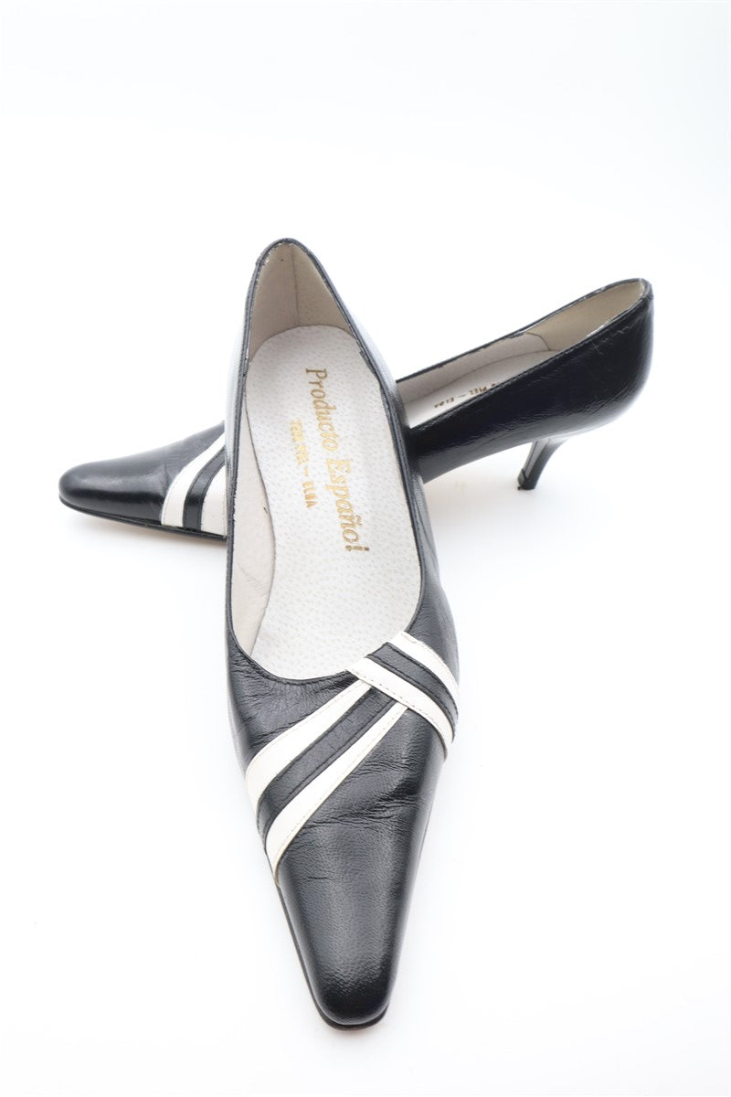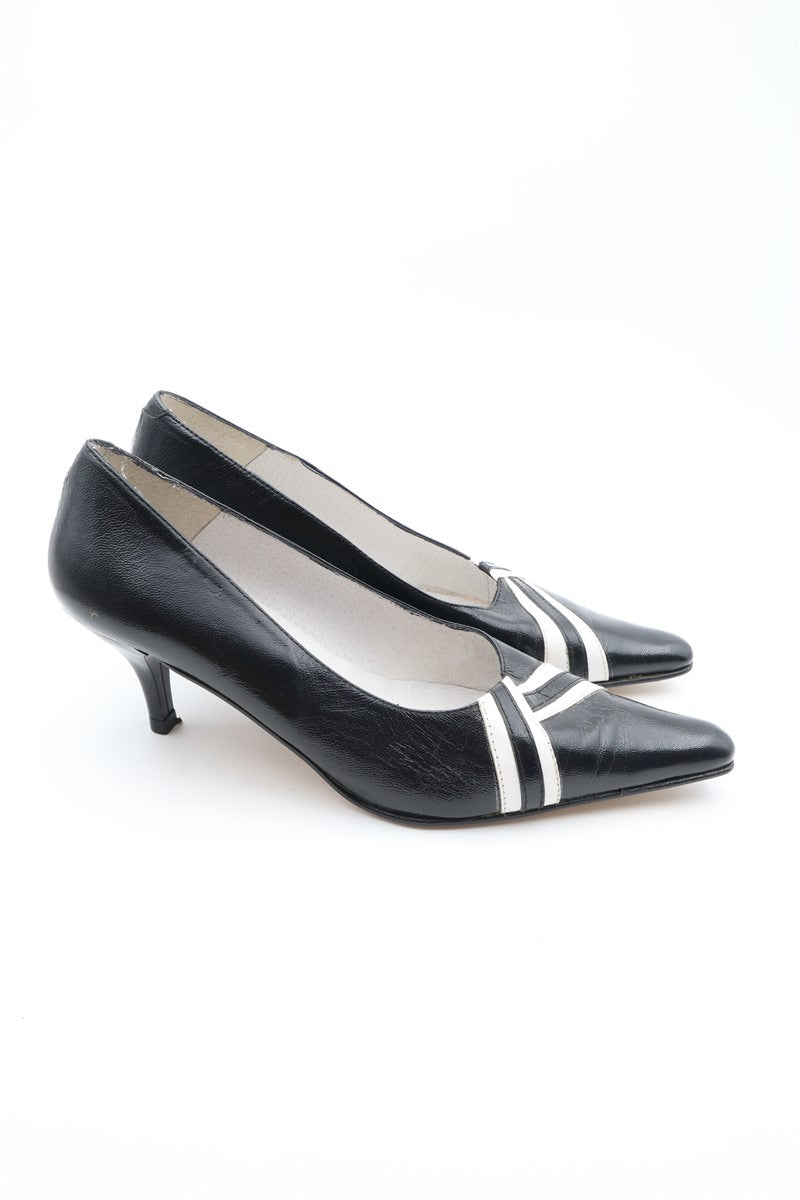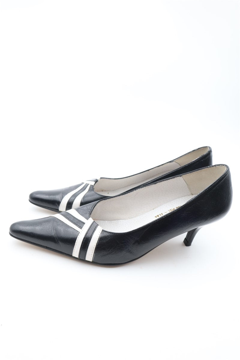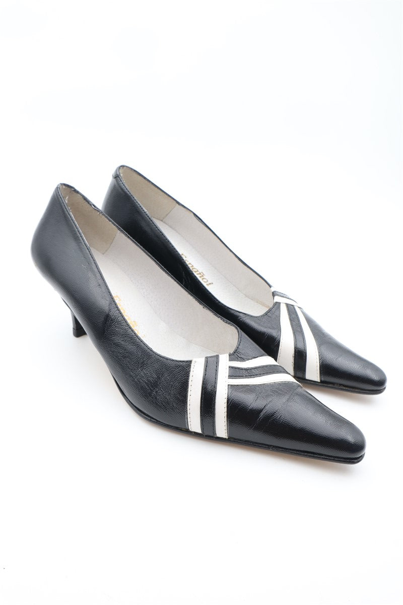 נעלי עקב וינטיג עור בצבע שחור בגימור פס לבן