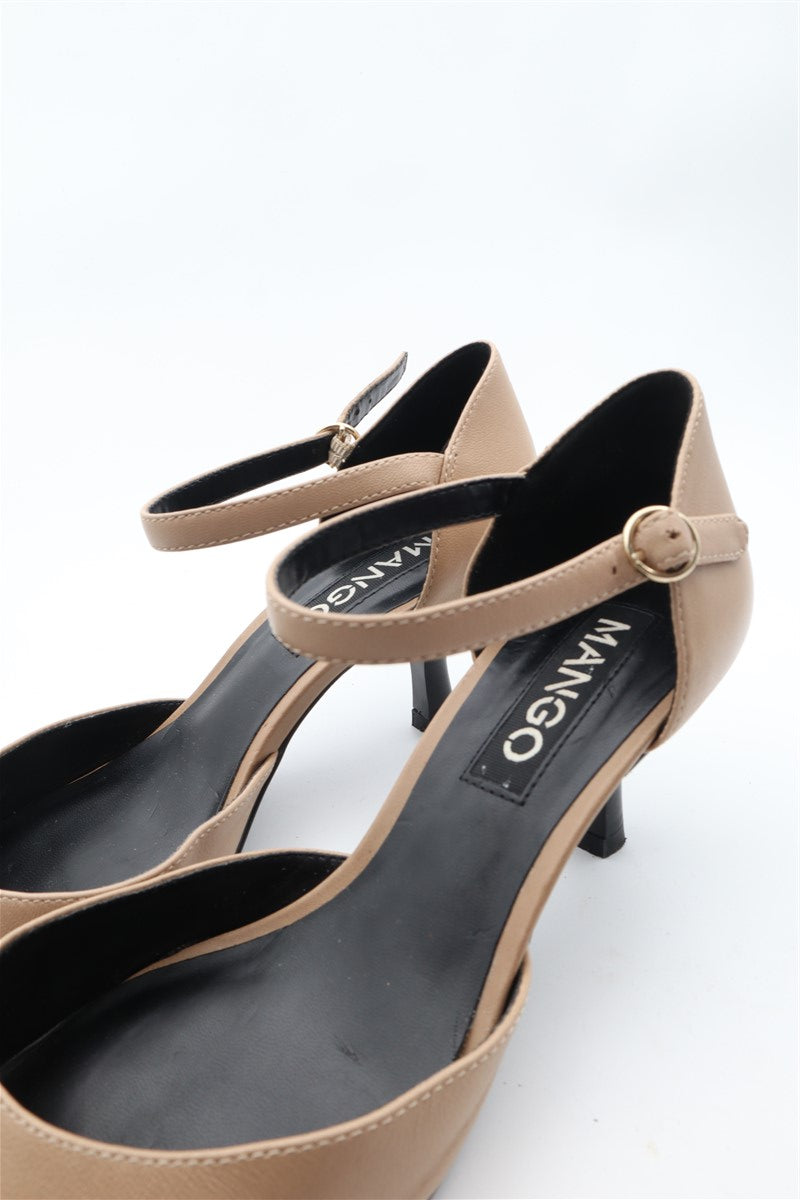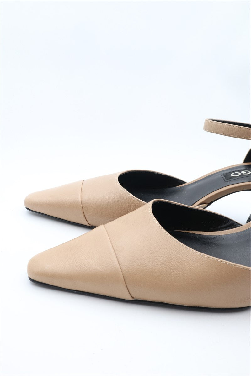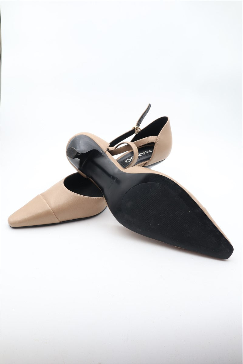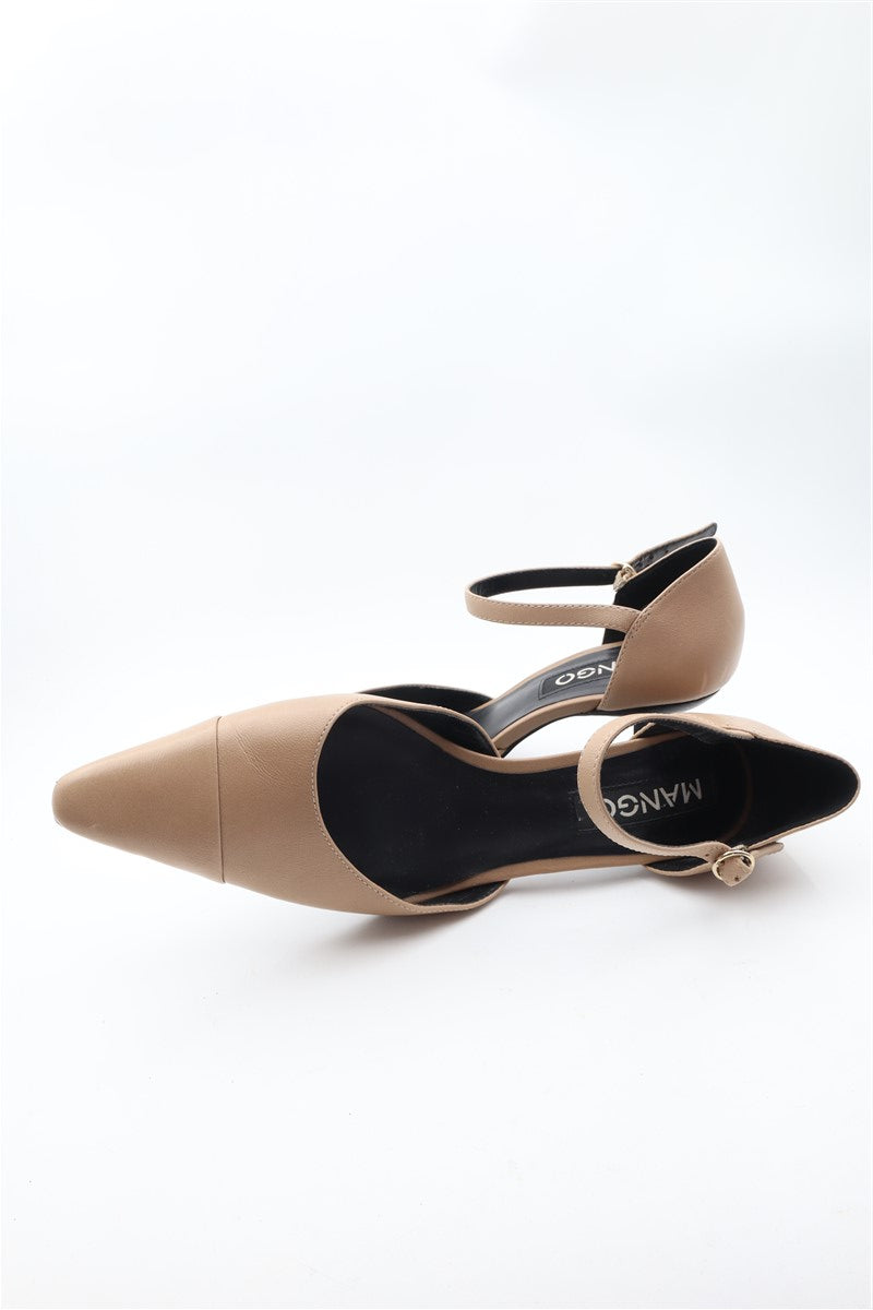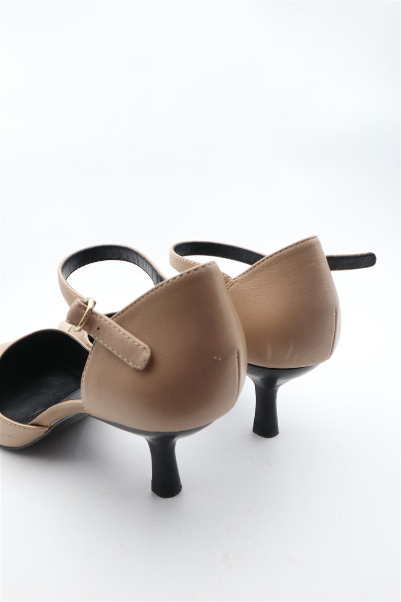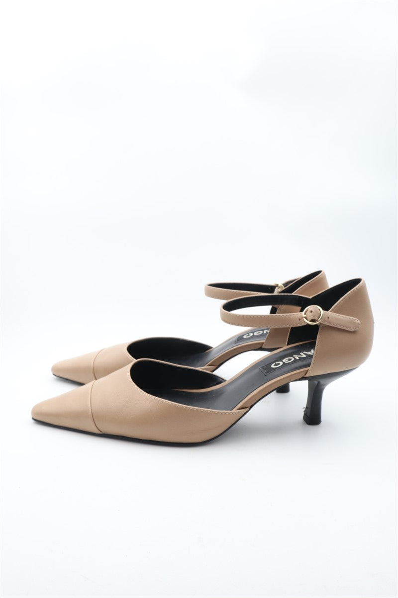 נעלי עקב מעוצבות בצבע מוקה עם סגירה אבזם קדמית בסיומת מעט מחודדת