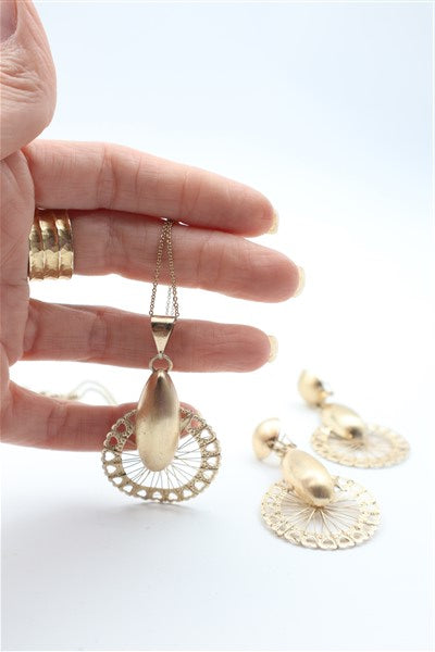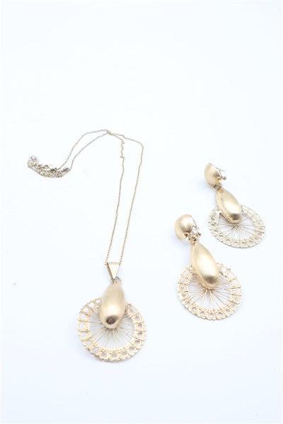 סט של שרשרת ועגילים תואמים בגוון זהוב