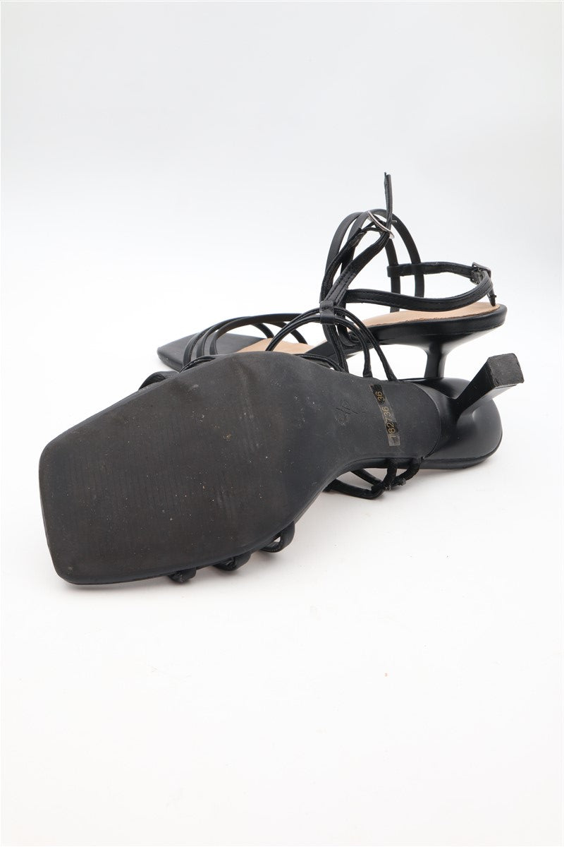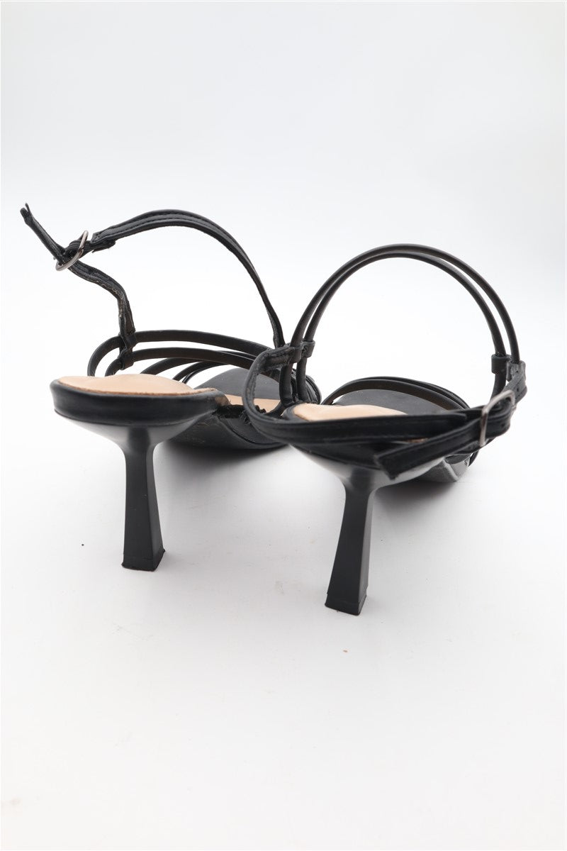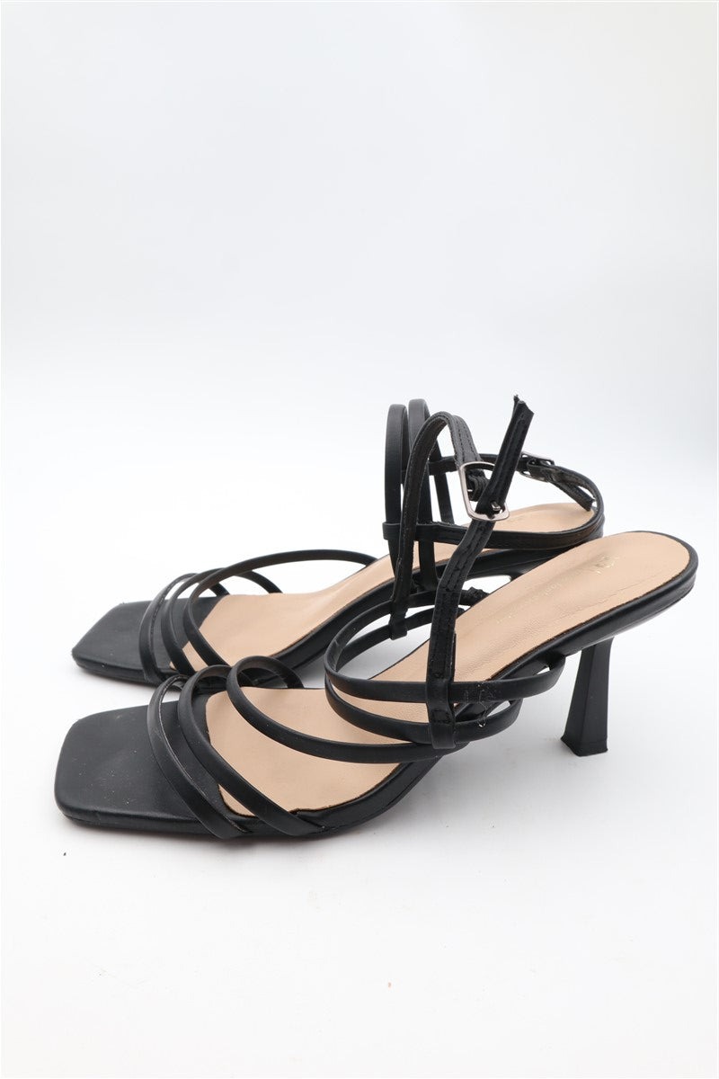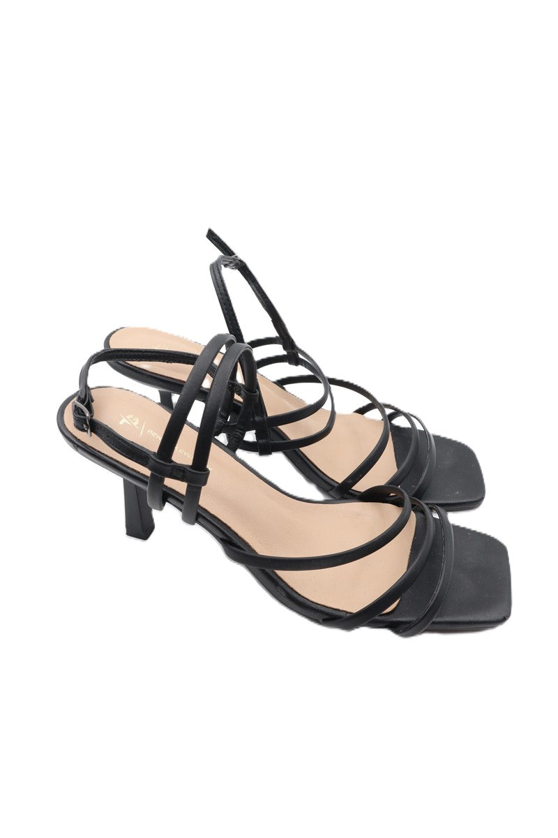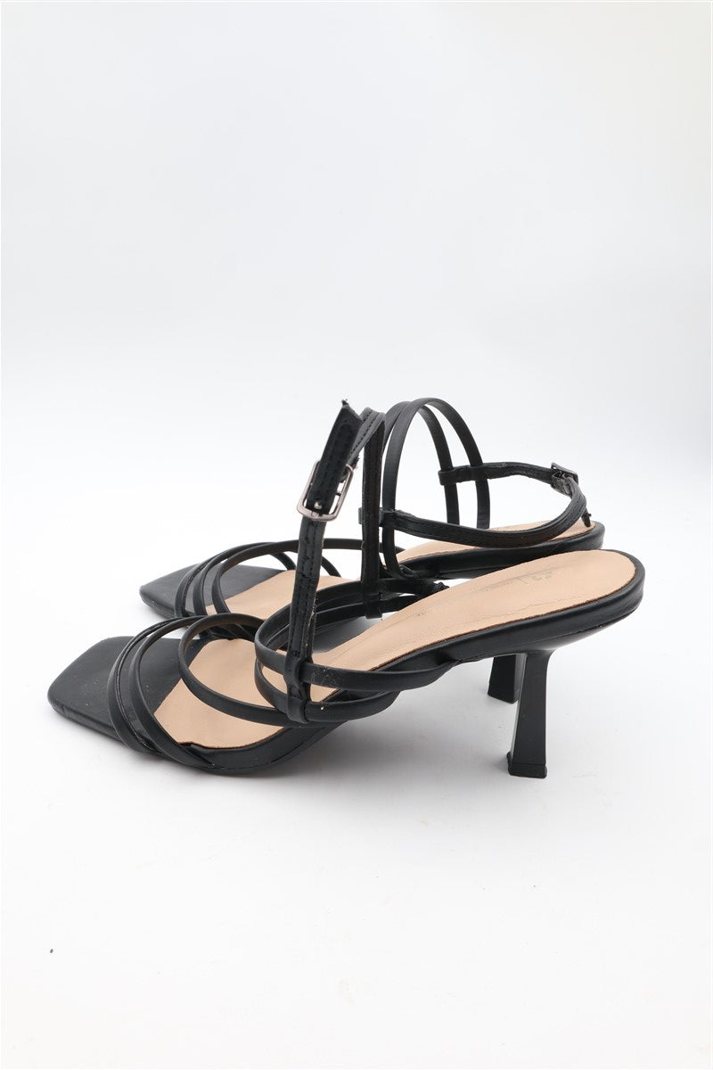 סנדלי עקב דמוי עור עם רצועות וסגירת אבזם אחורי עליון