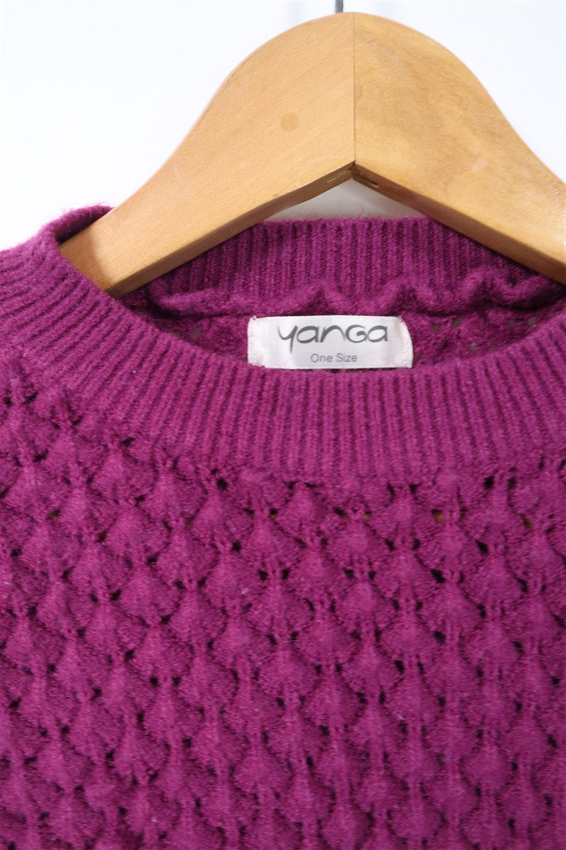 סריג קרופבבורדו סגול בסטייל סריגה מחוררת שם המותג YANGA מידה רשומה OS תתאים עד 38 הרכב בד פוליאמיד ואקרילן אורך 47 ס"מ היקף חזה עד 100 ס"מ |