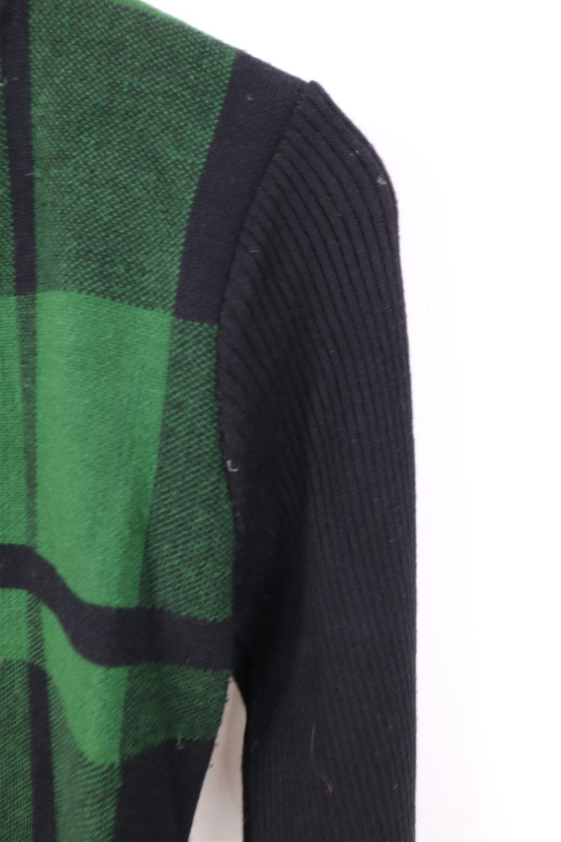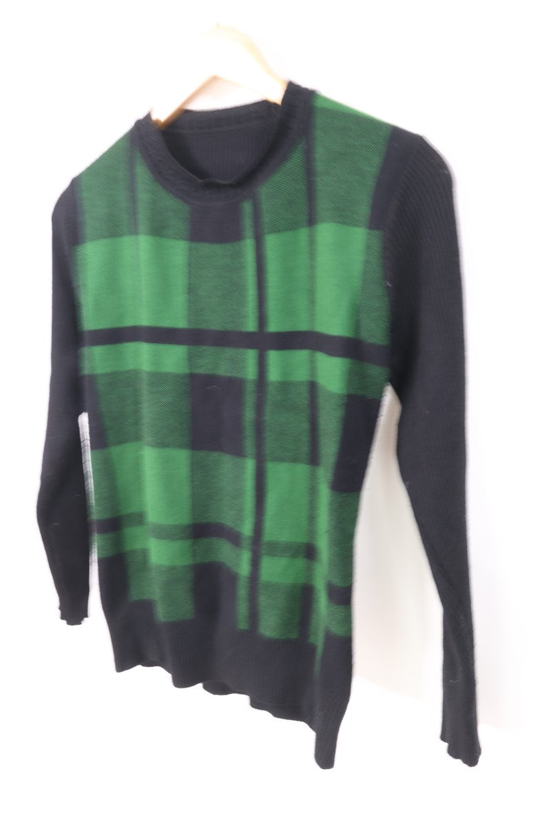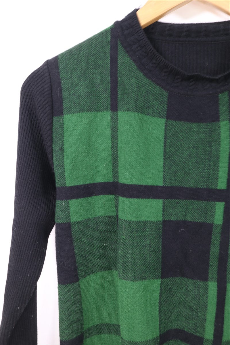 סריג שחור משולב משבצות בירוק, בד סריג סטרצי.