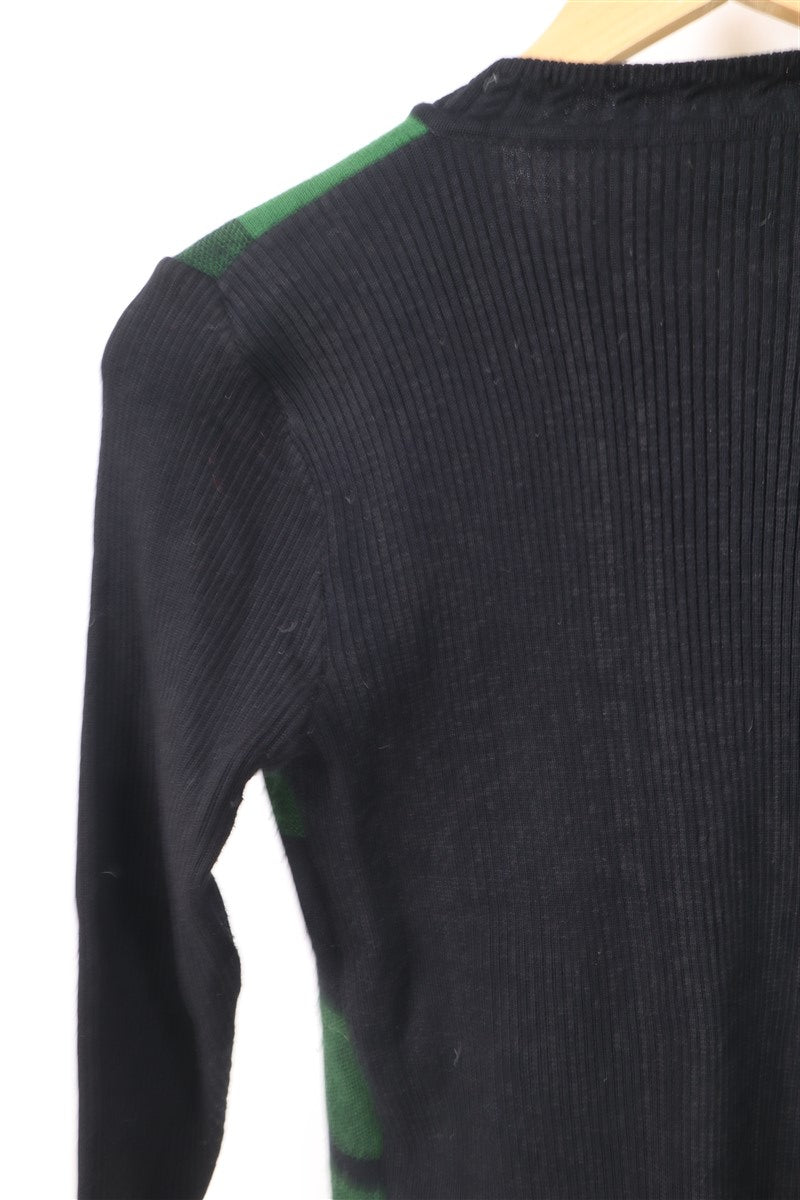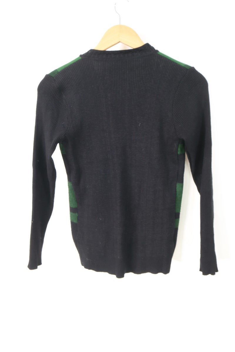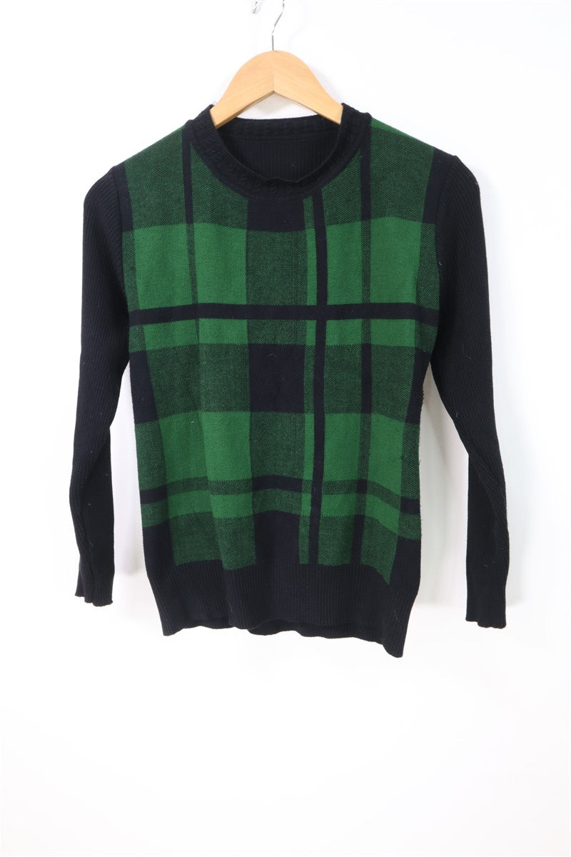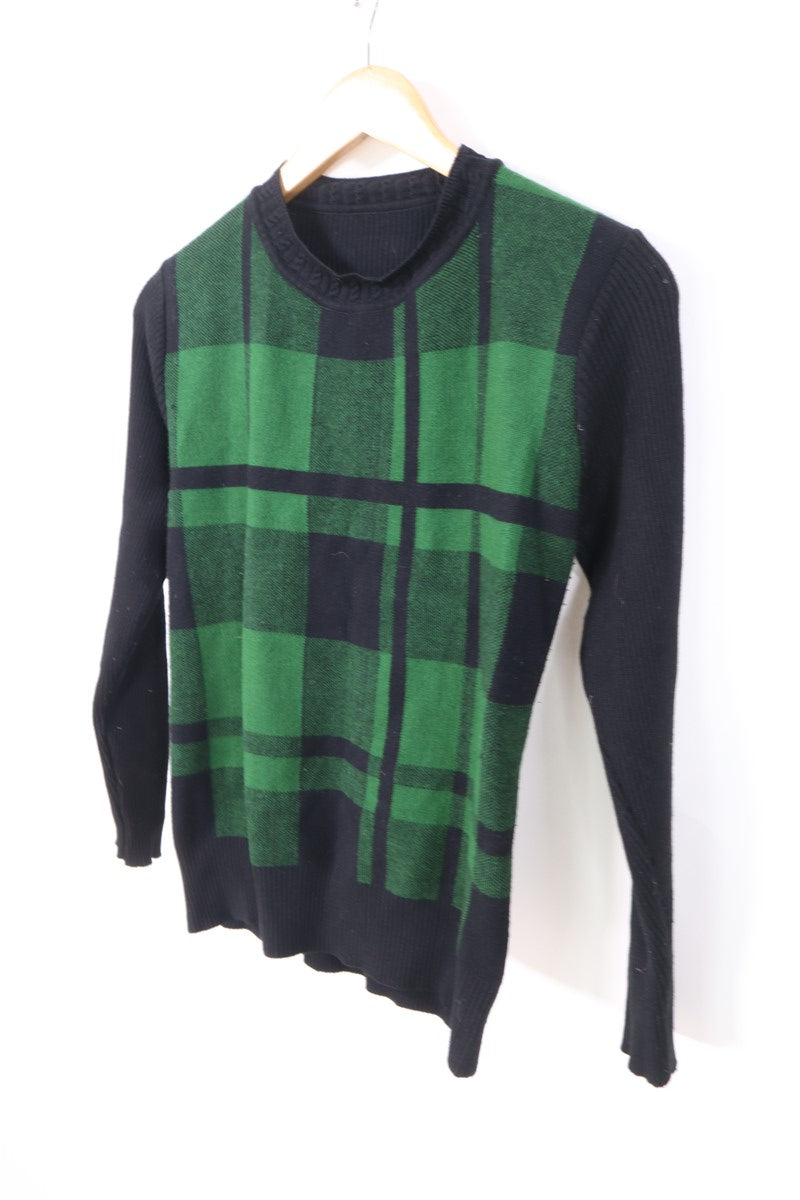 סריג שחור משולב משבצות בירוק, בד סריג סטרצי.