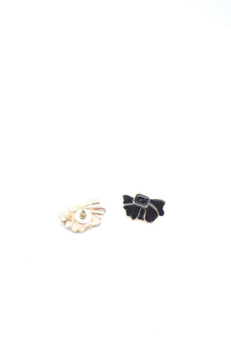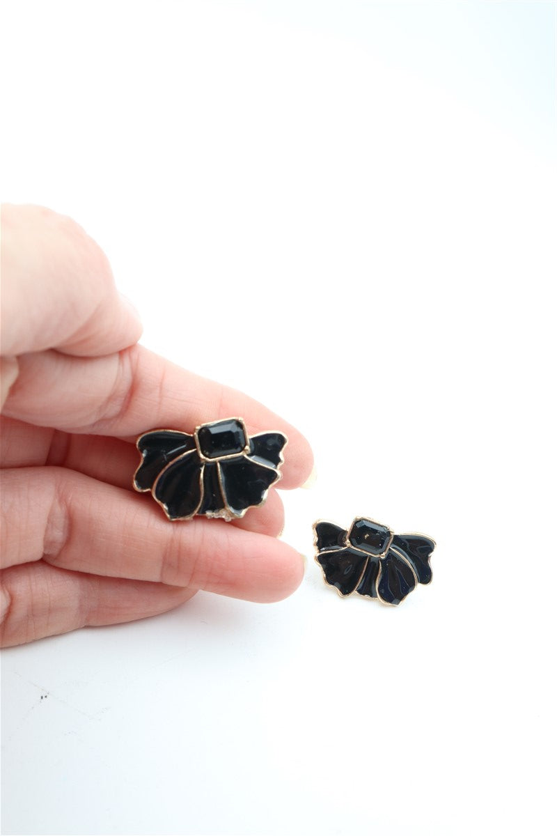 עגילים רטרו בצורת פפיון בצבע שחור מתכת זהובה
