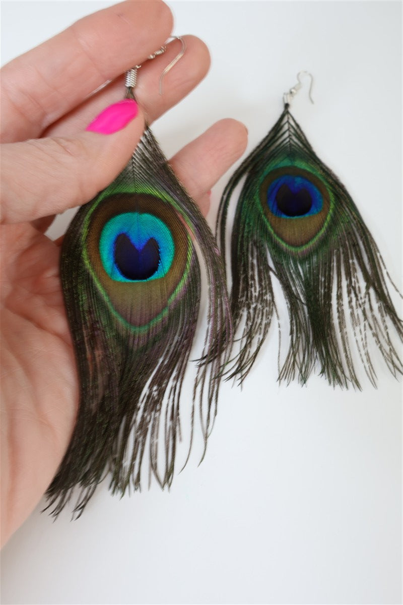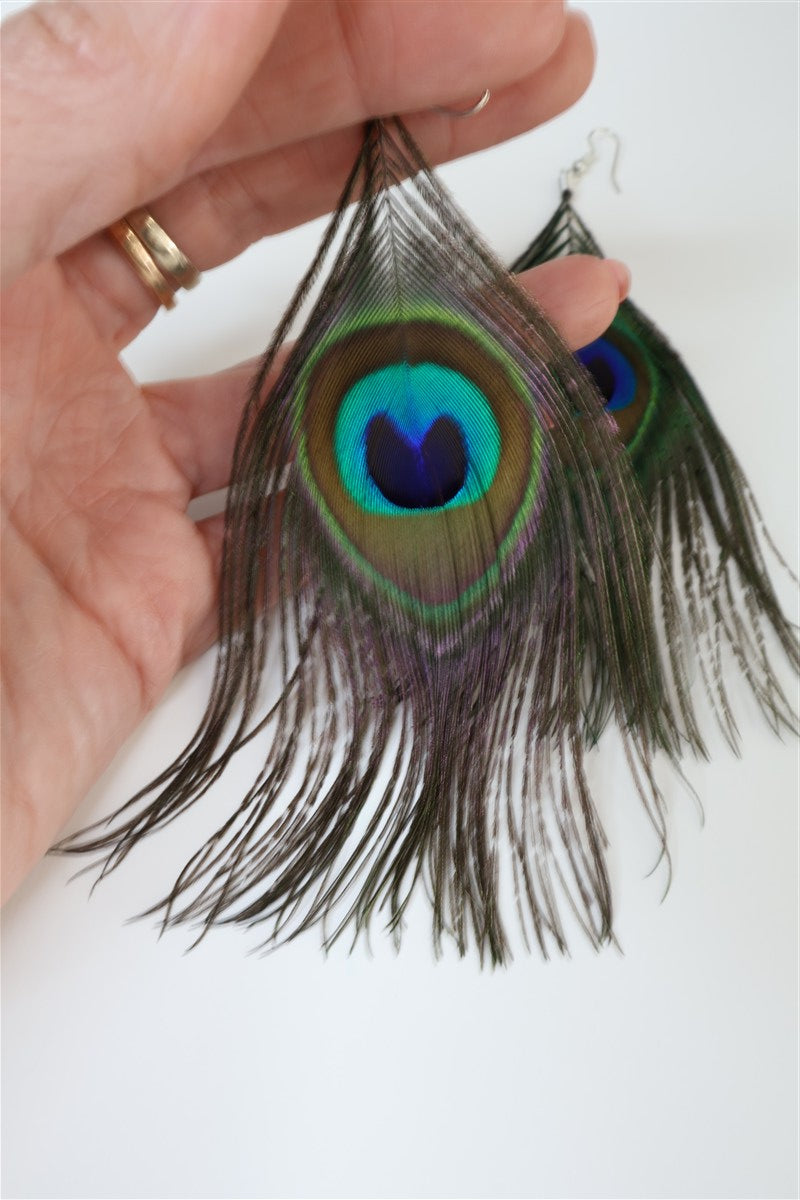 עגילי נוצת טווס נשפכים