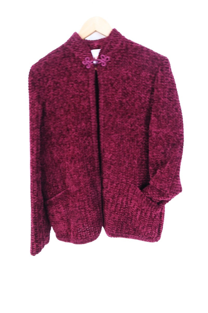 סריג קרדיגן וינטיג קטיפתי בבורדו-L-XL
