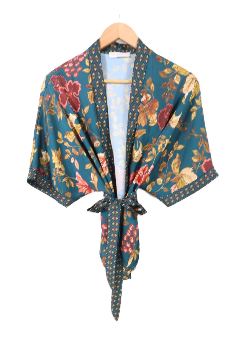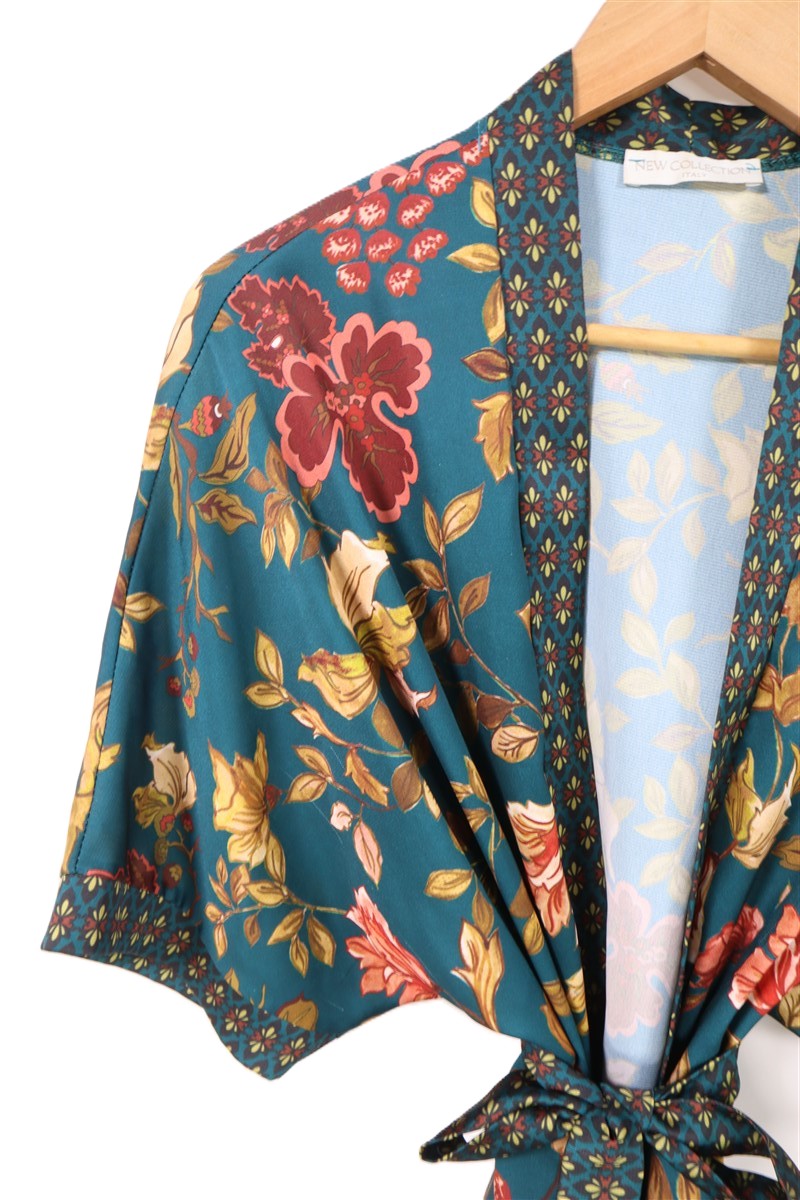 עליונית קימונו ללא סגירה עם חגורת קשירה תואמת