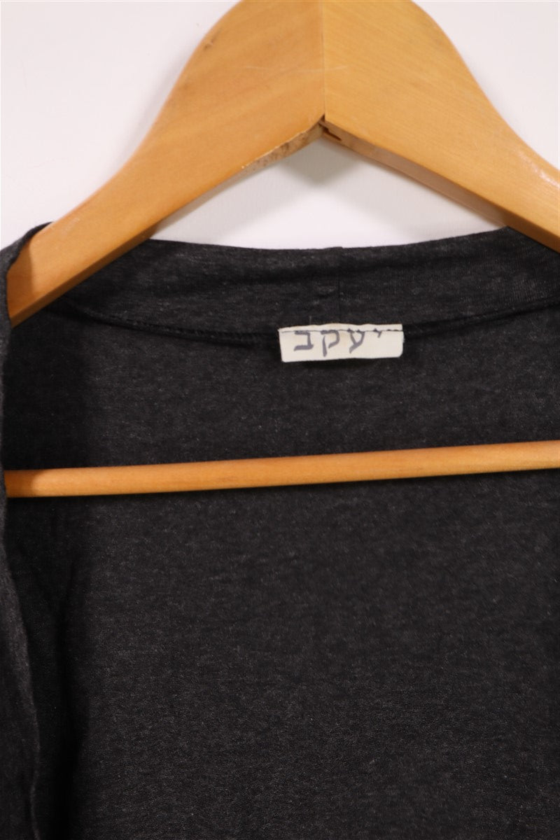 עליונית שרוולון בצבע אפור עכבר בד נעים ורך במגע. שם המעצב יעקב ללא מידה מוערך עד 38 הרכב בד טבעי במגע עם לייקרה. אורך 32 ס"מ היקף חזה עד 100 ס"מ
