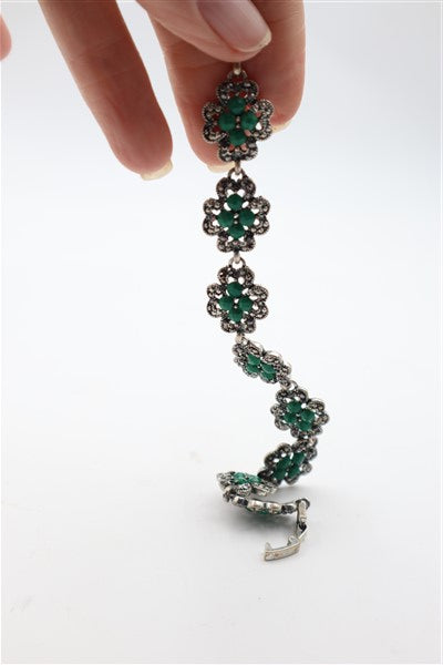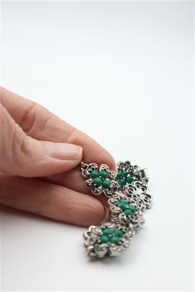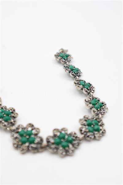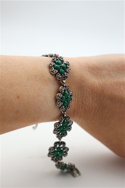 צמיד מעוצב בסטייל מיכל נגרין בצורת פרחים בשיבוץ אבנים בטורקיז