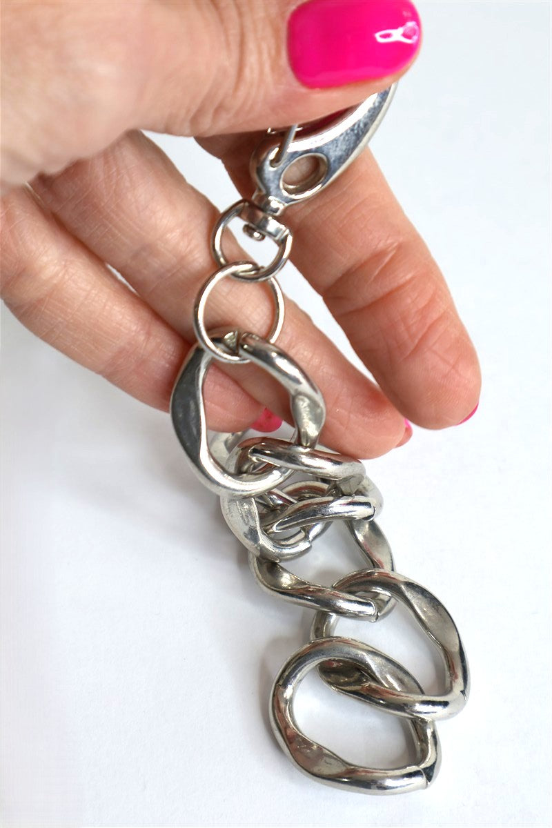 צמיד שרשרת מתכתי בגוון כסף מבריק