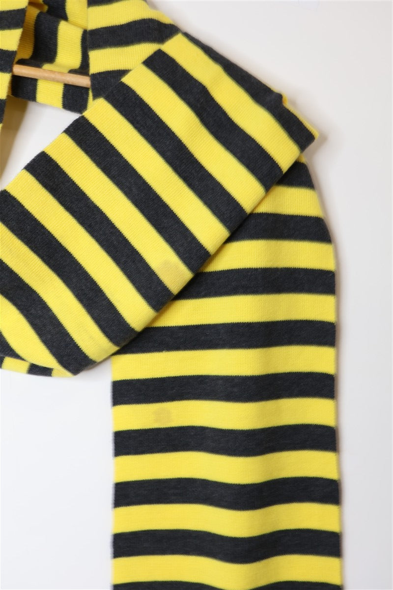 צעיף מחמם בצבע צהוב עם פסים באפור
