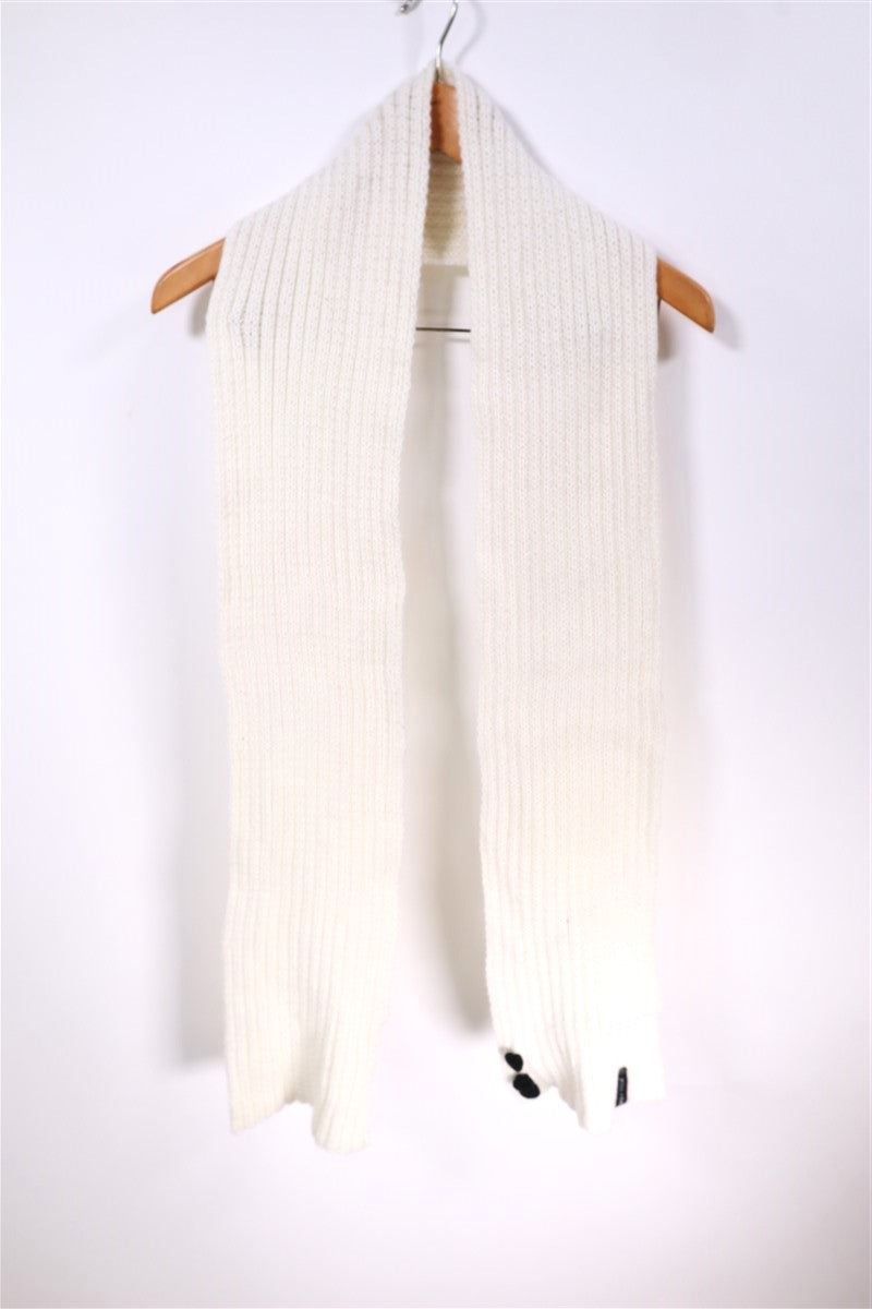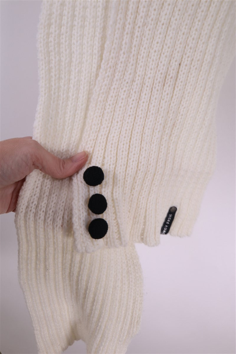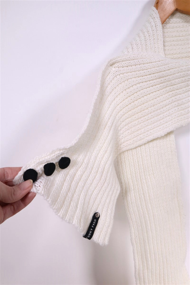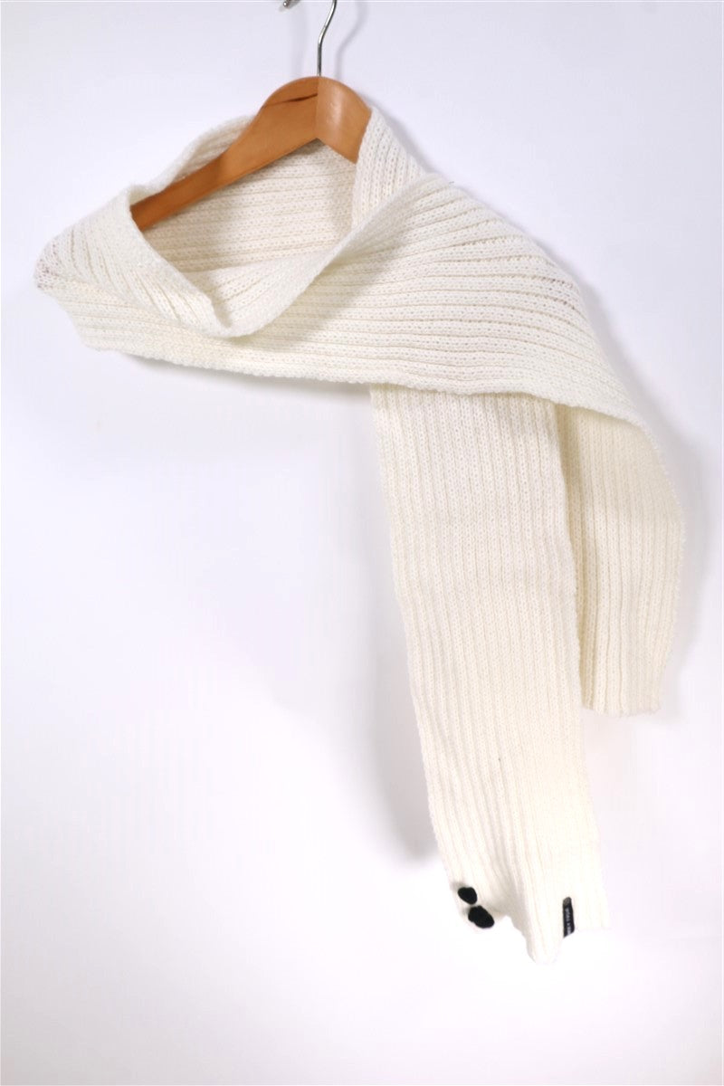 צעיף צמרי בצבע לבן בסיום דוגמת כפתורים מדליקה בשחור