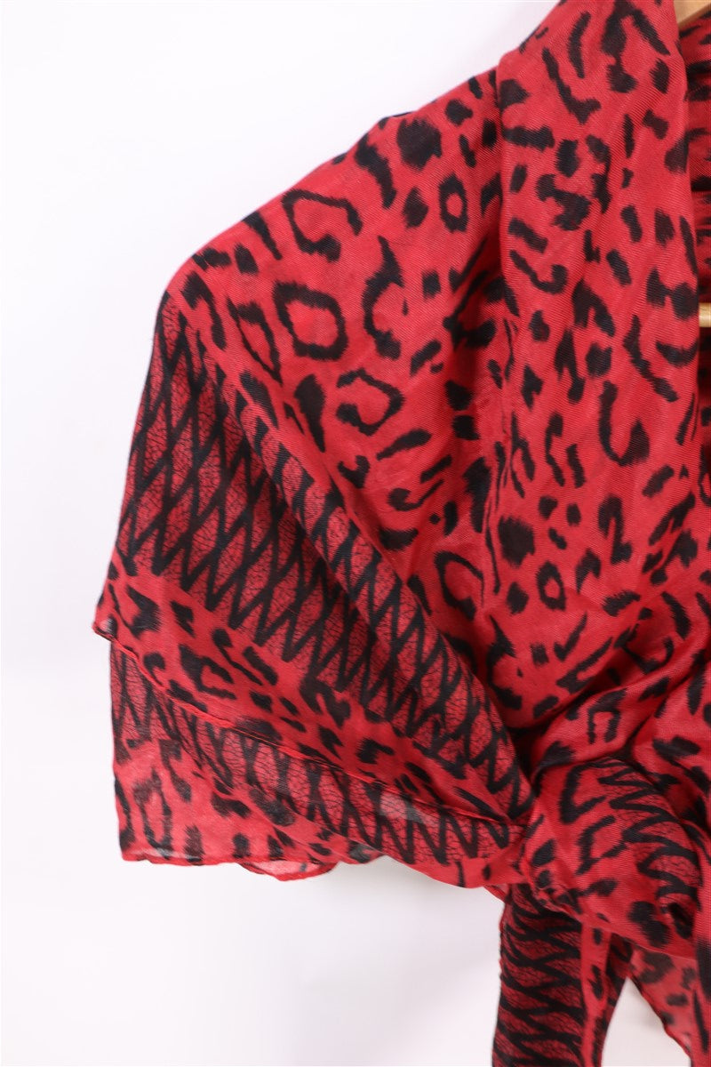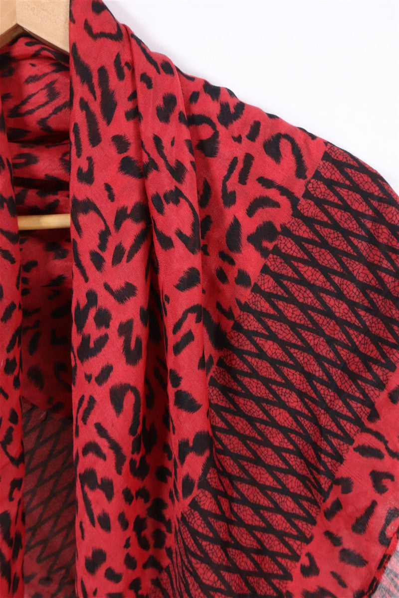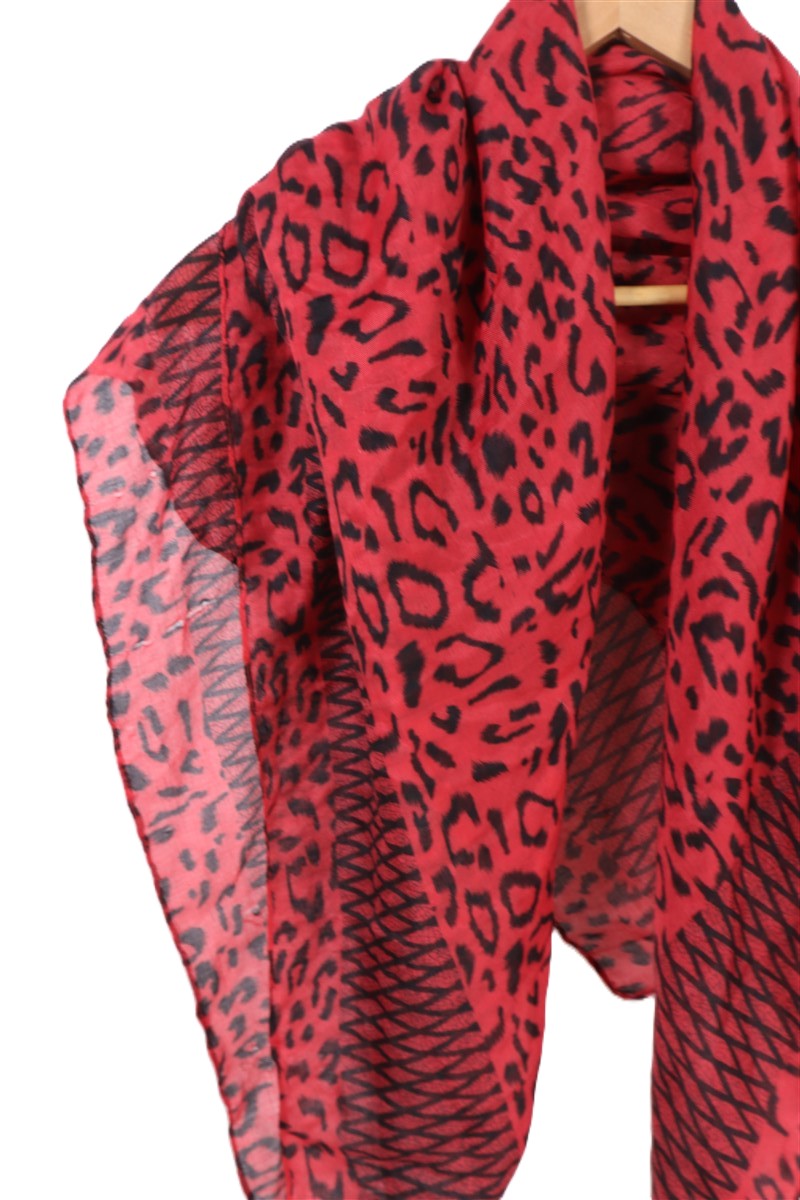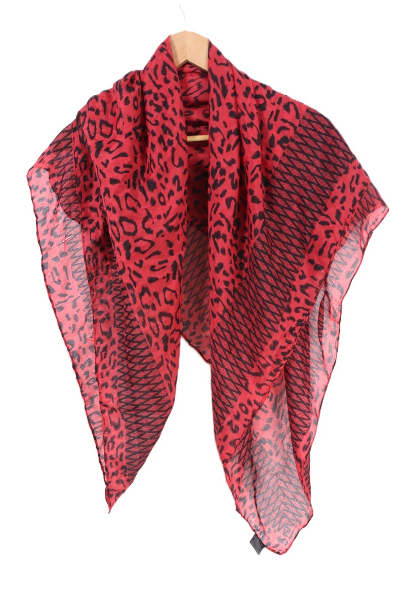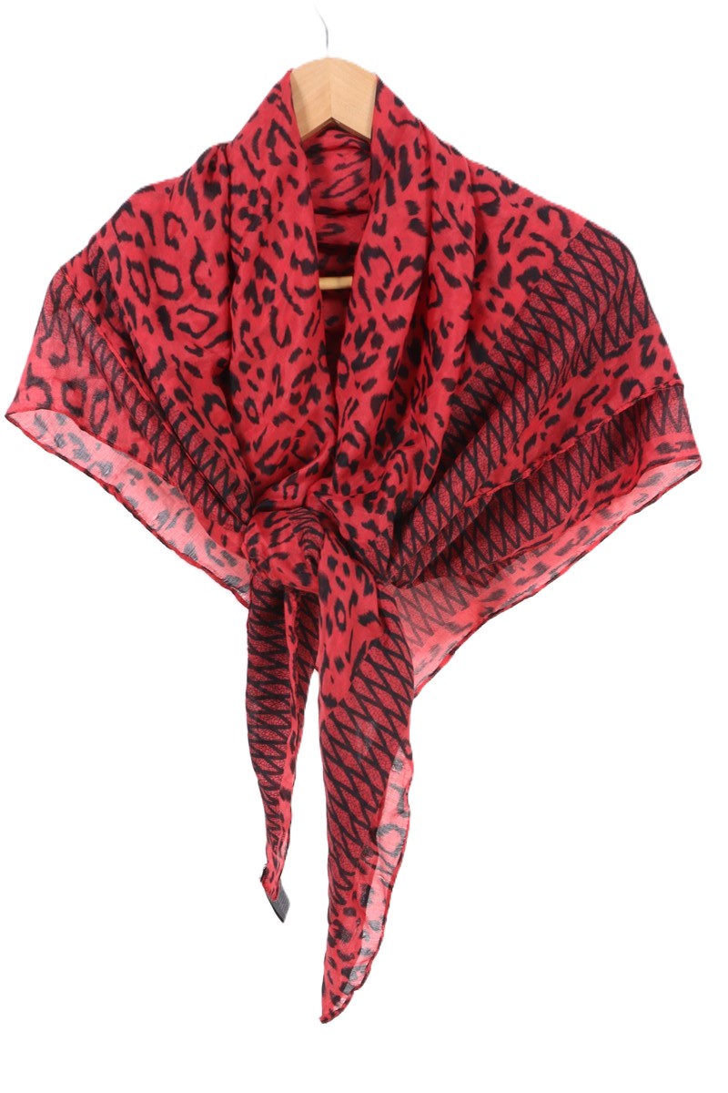 צעיף שיפוני קליל בפרינט מנומר בצבע אדום שחור