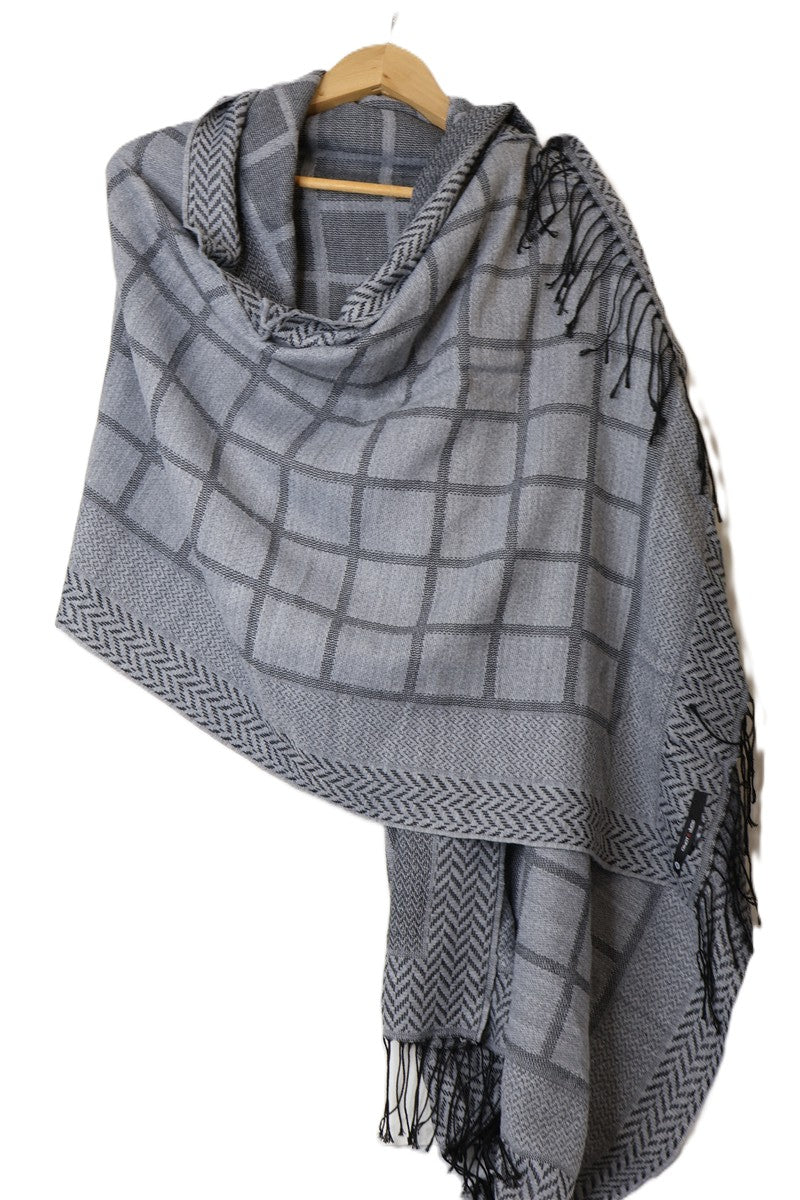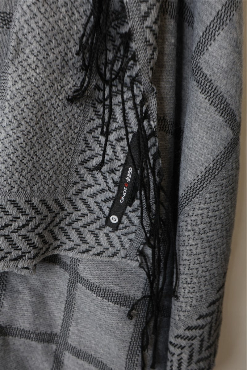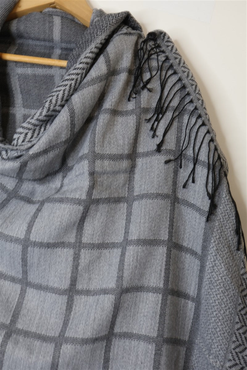 צעיף של מחמם בגווני אפור עם פרינט משבצות