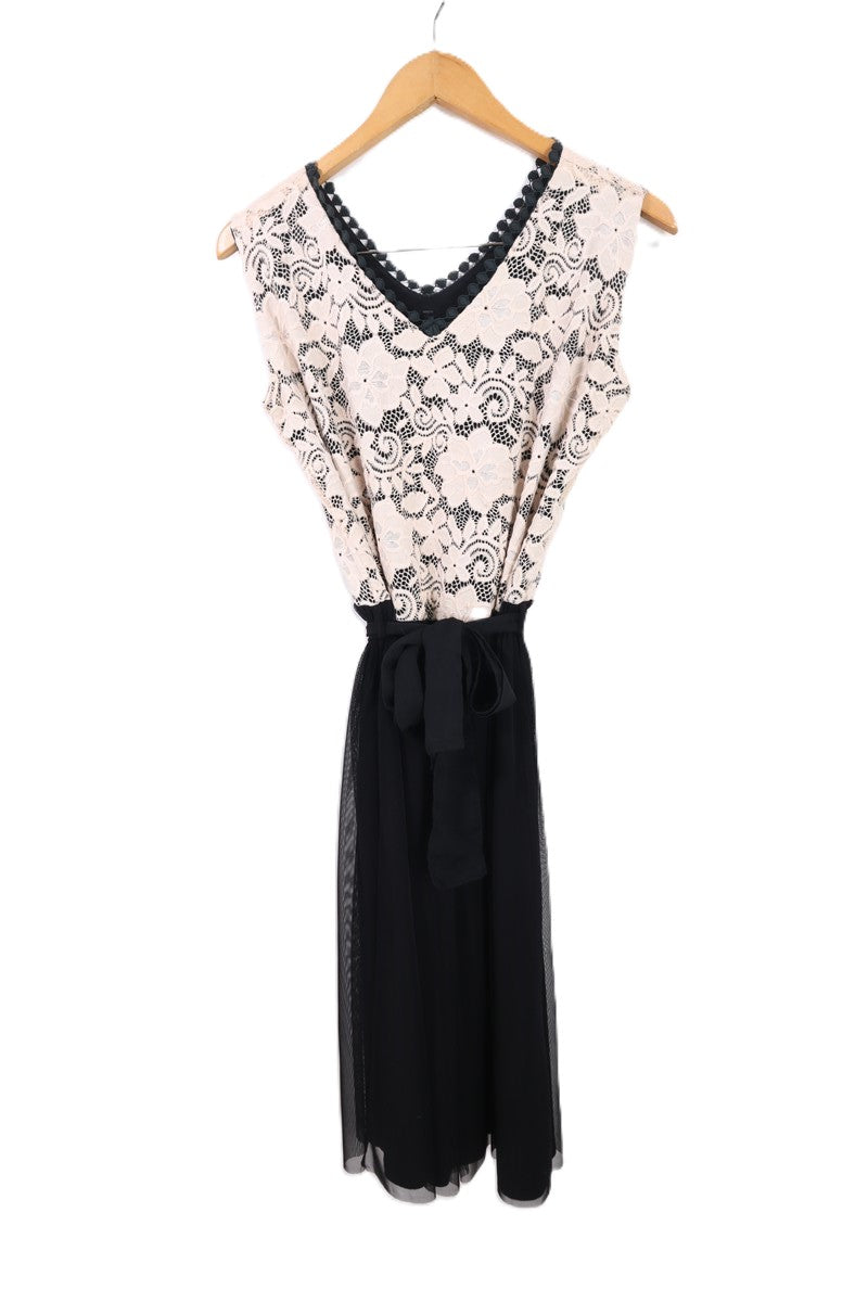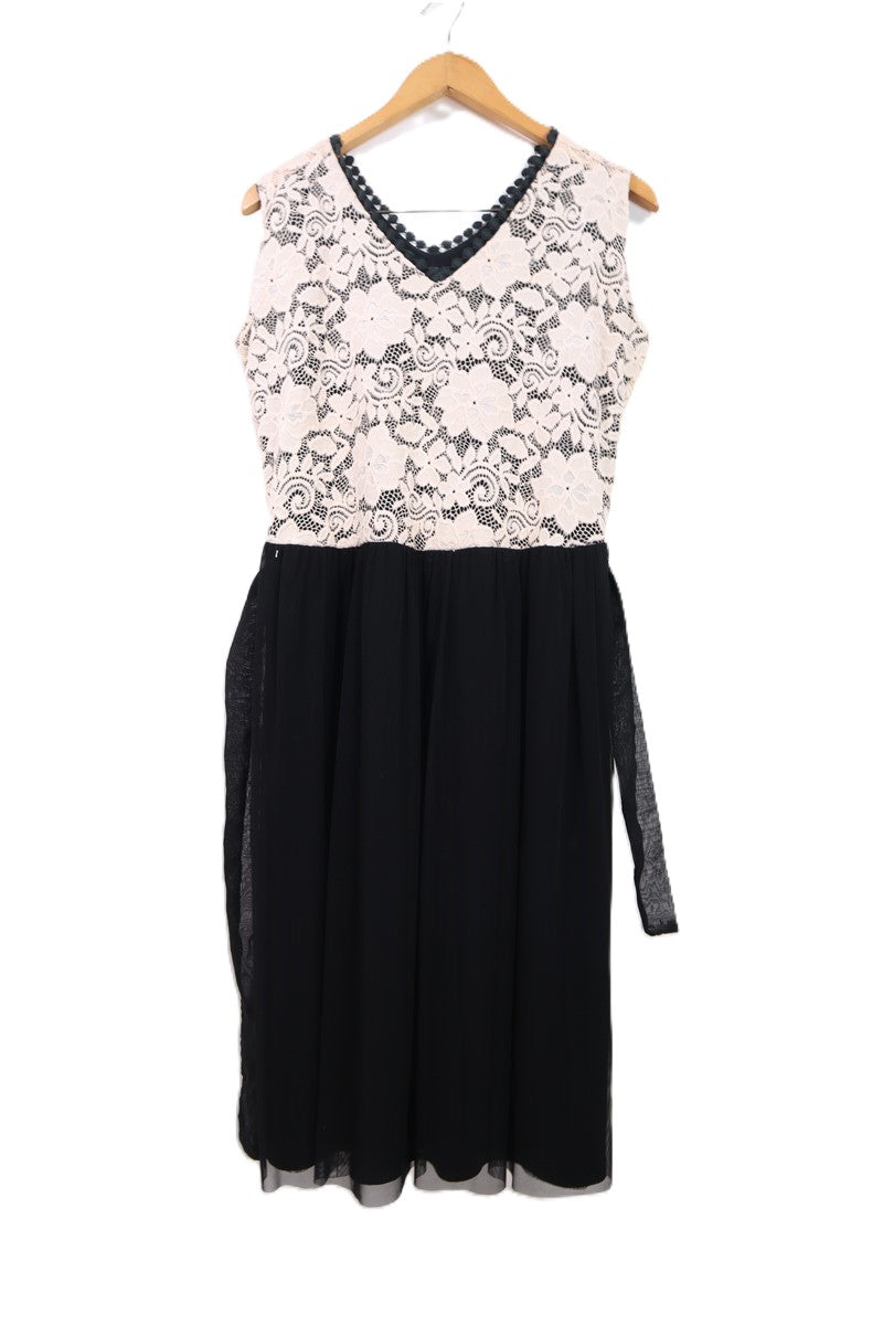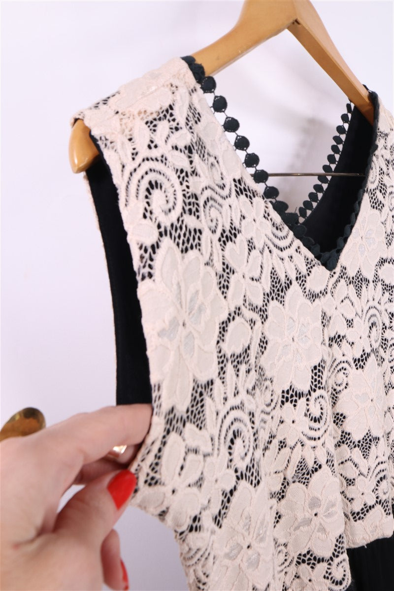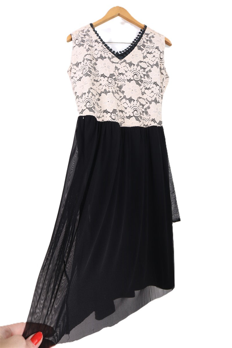 שמלה מעוצבת בקרושה שמנת (עם בטנה לא שקוף) בצבע שמנת בחלק העליון