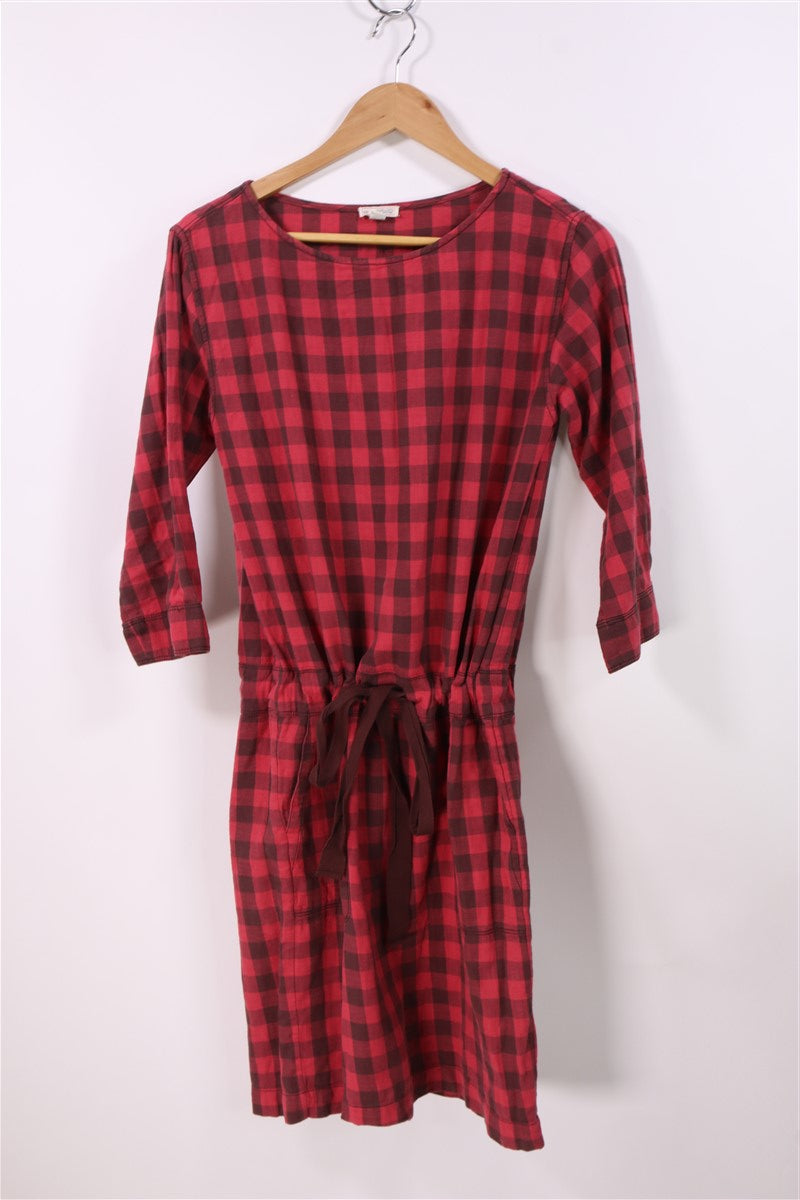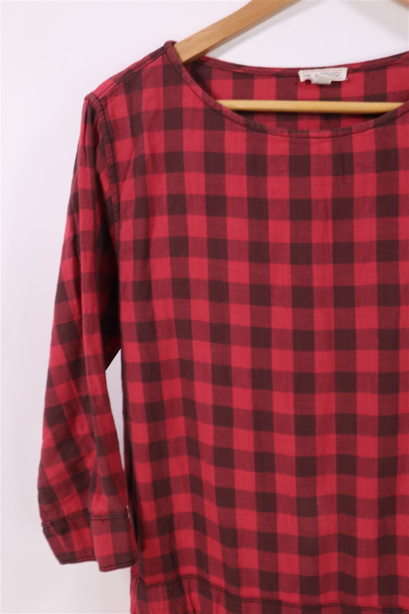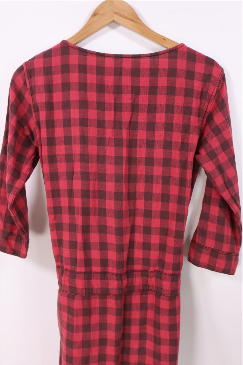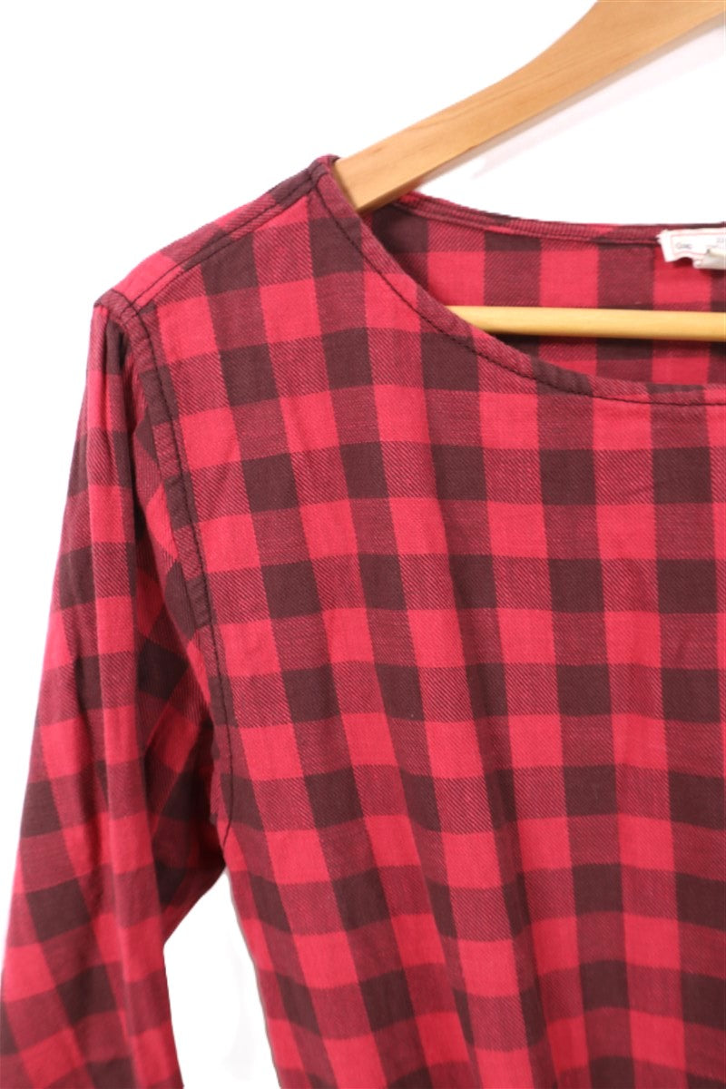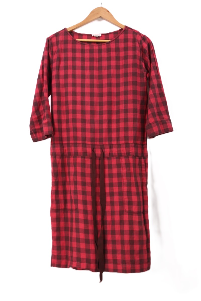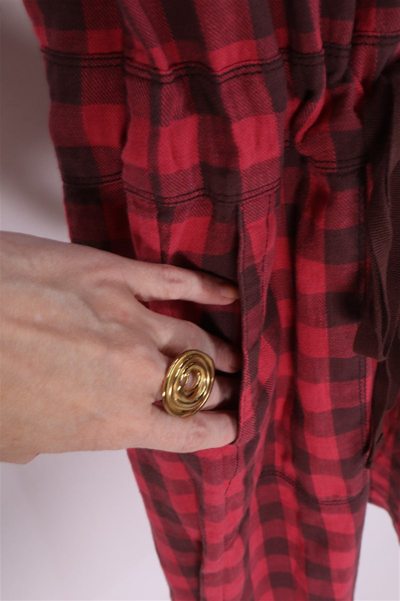 שמלת קזואל בסטייל אוברסייז משבצות באדום בהיר ושחור