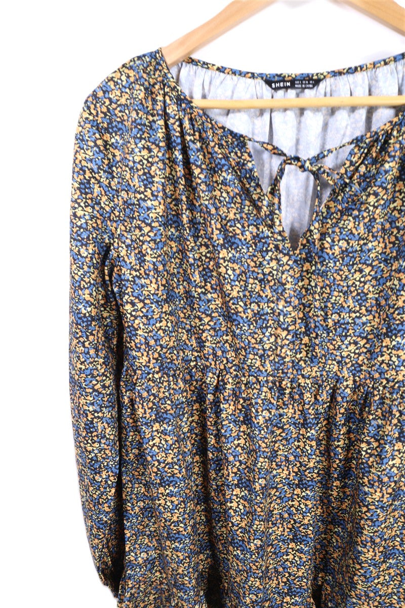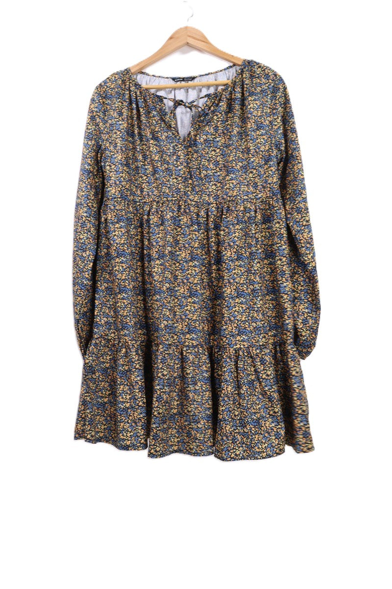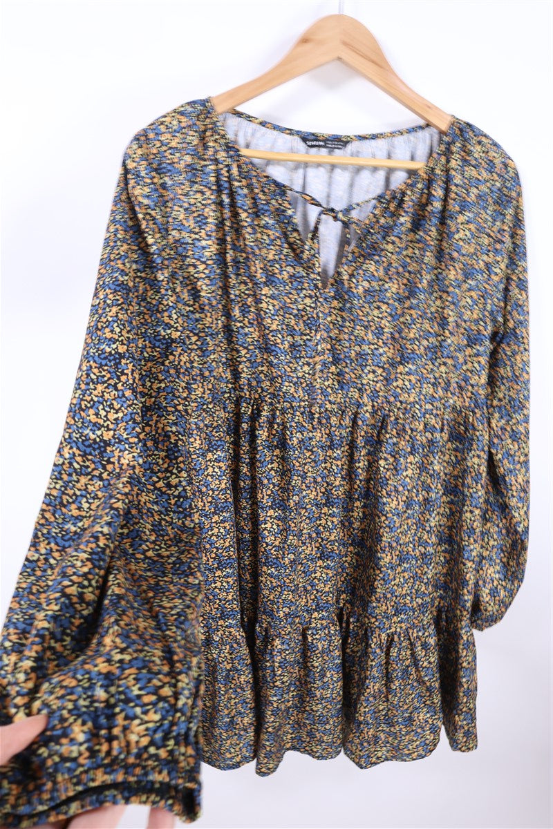 שמלת אוברסייז פרחונית בכחול וכתום- M-L