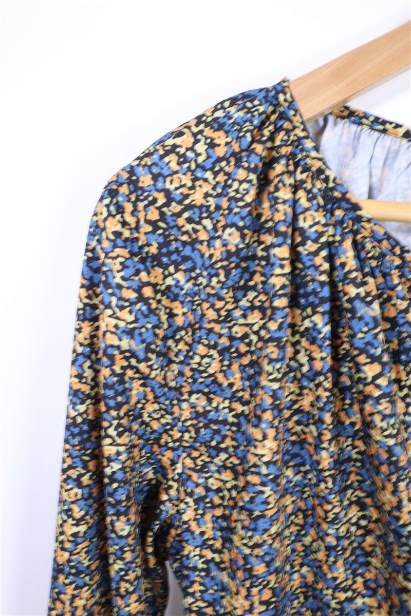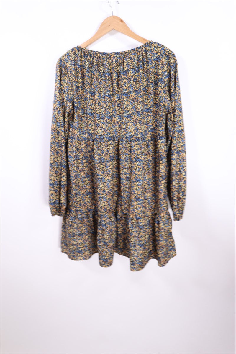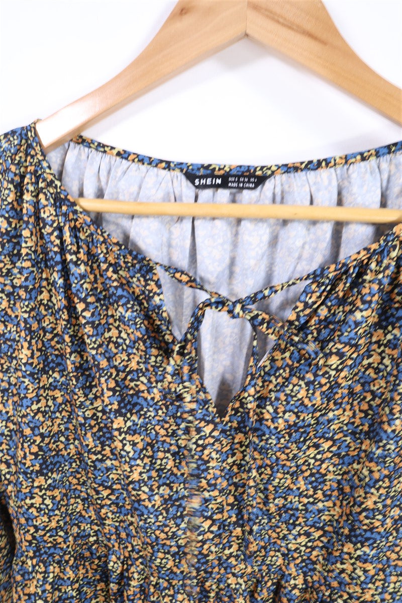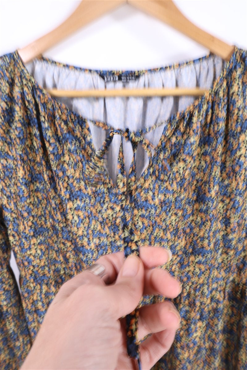 שמלת אוברסייז פרחונית בכחול וכתום- M-L