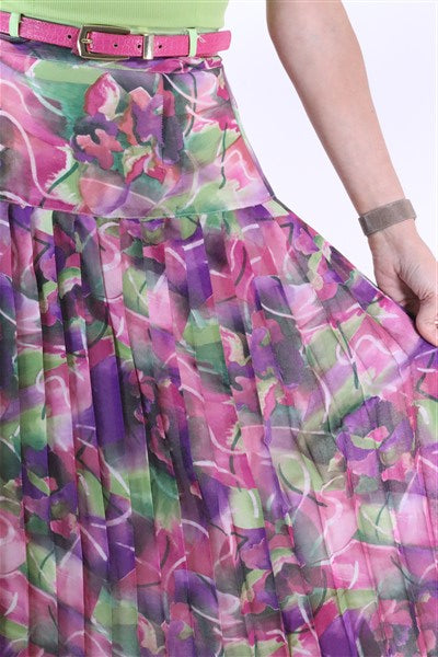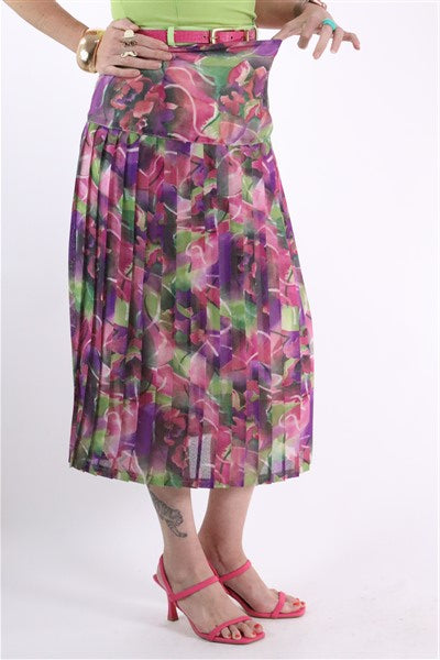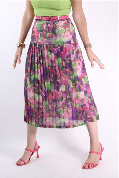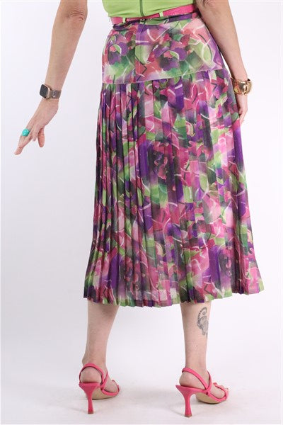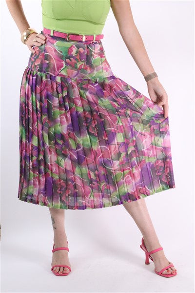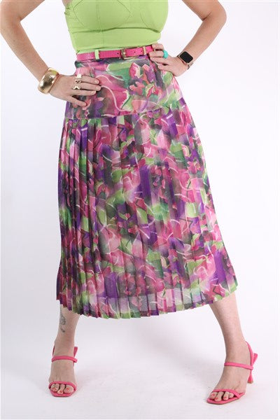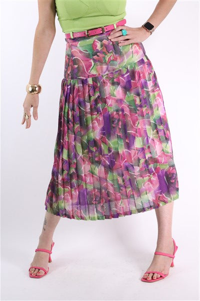 חצאית וינטיג בסגנון קפלי פליסה עם רוכסן וסגירת קרס בפרינט פרחוני וצבעוני.