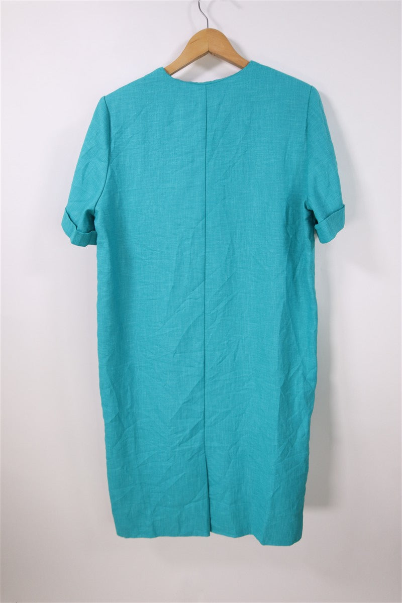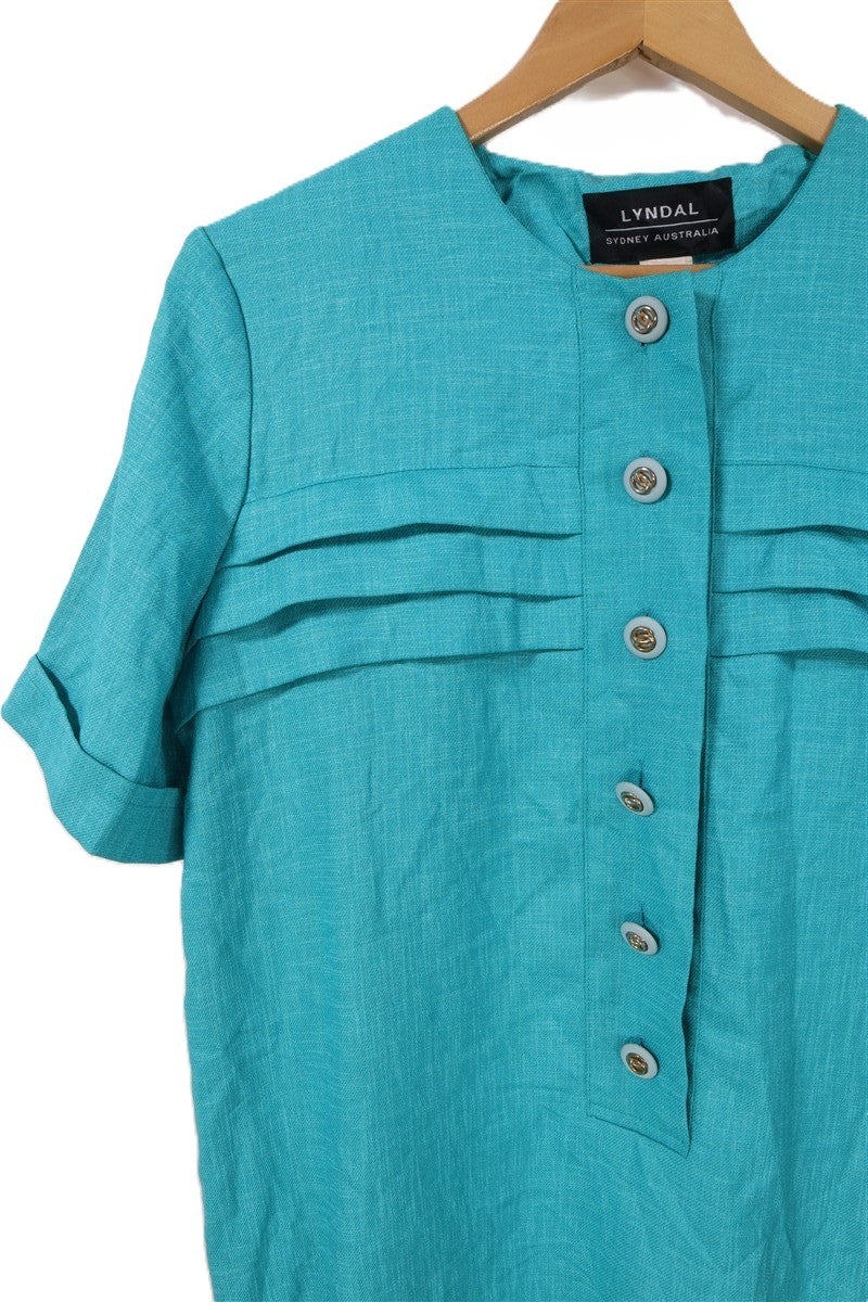 שמלת וינטיג אלגנטית ומכופתרת בגוון טורקיז