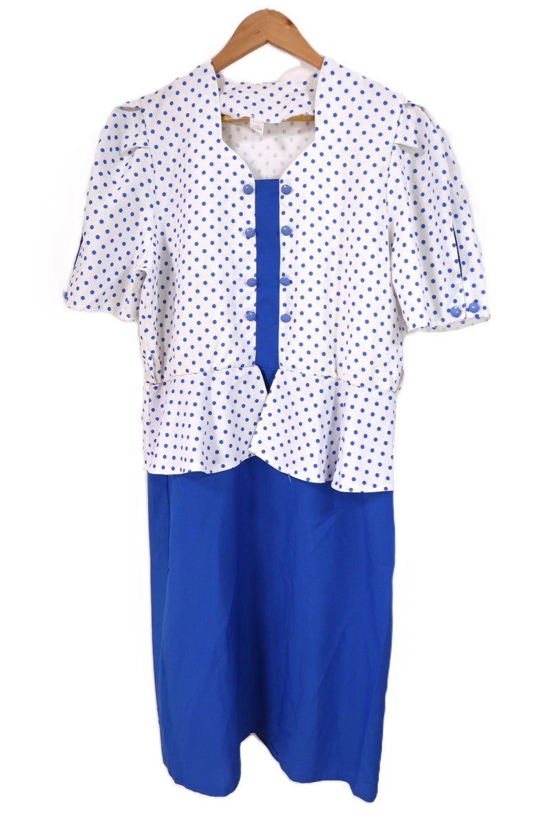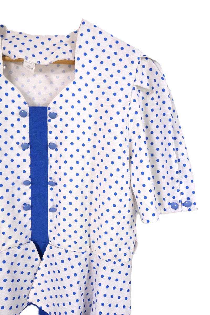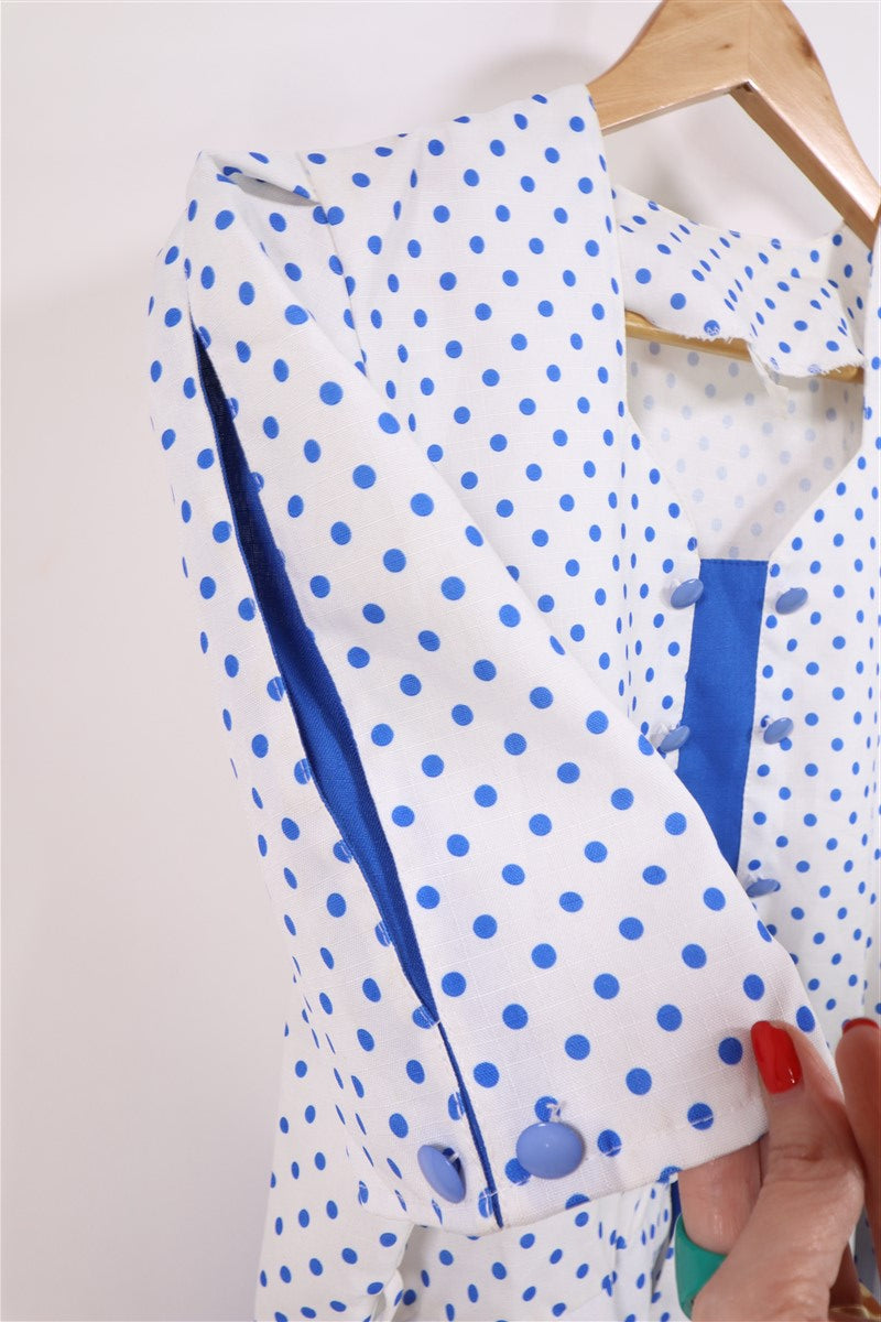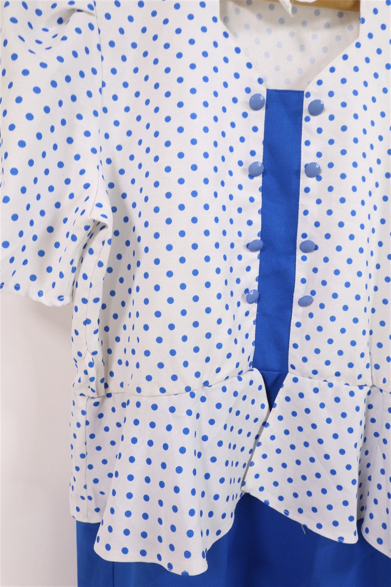 שמלת וינטיג מנוקדת בכחול לבן- L-XL