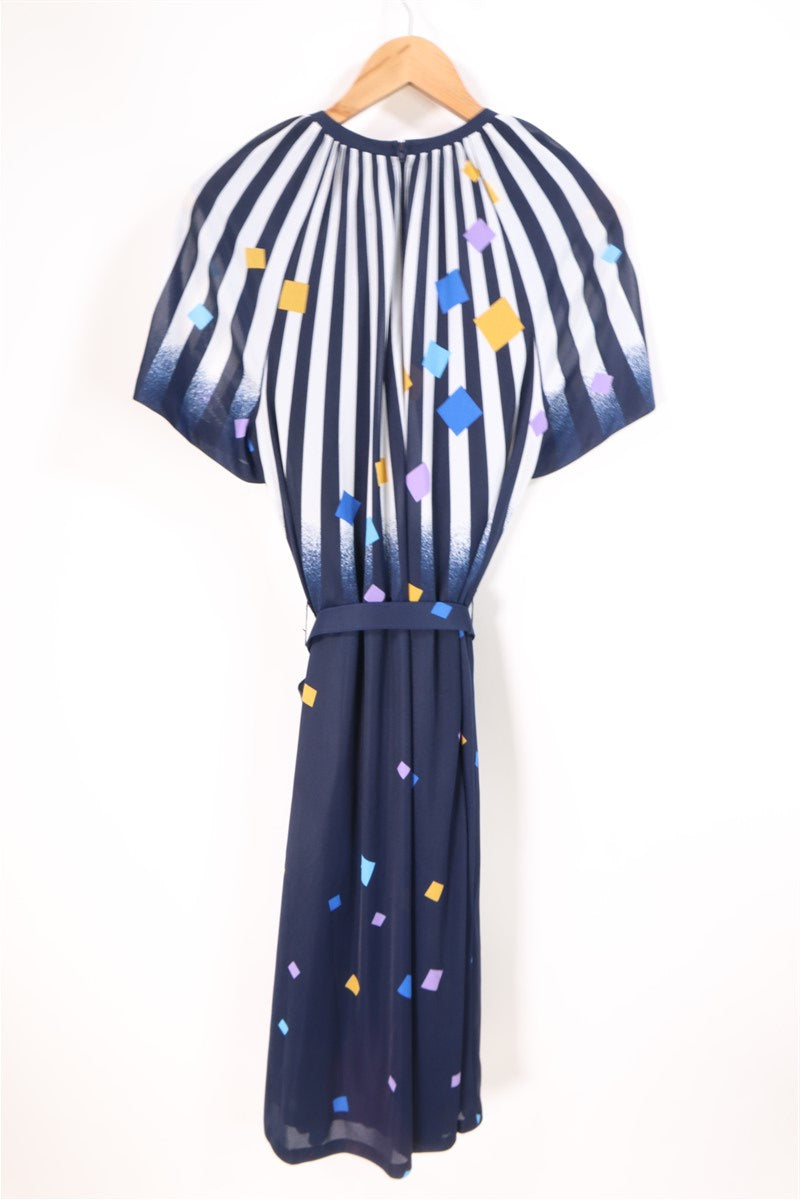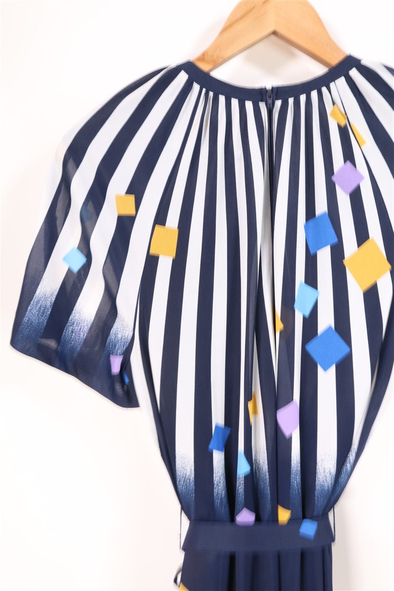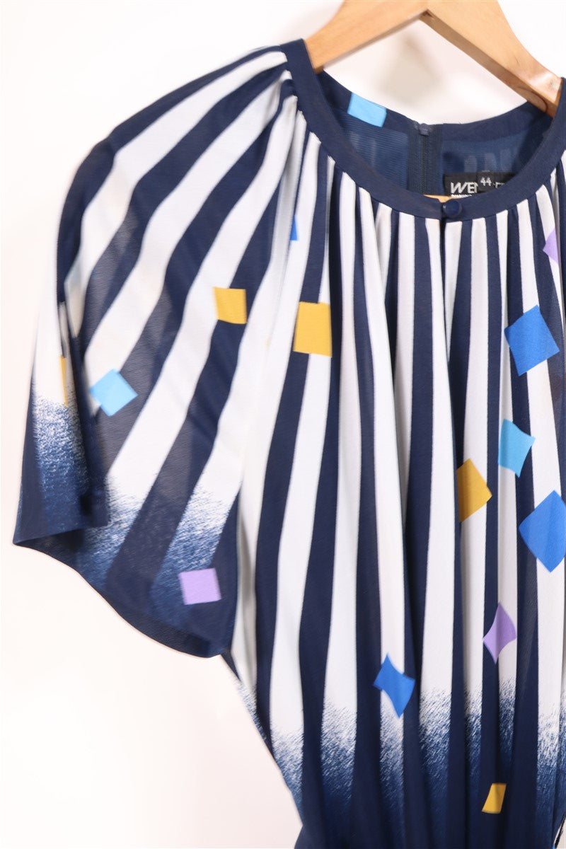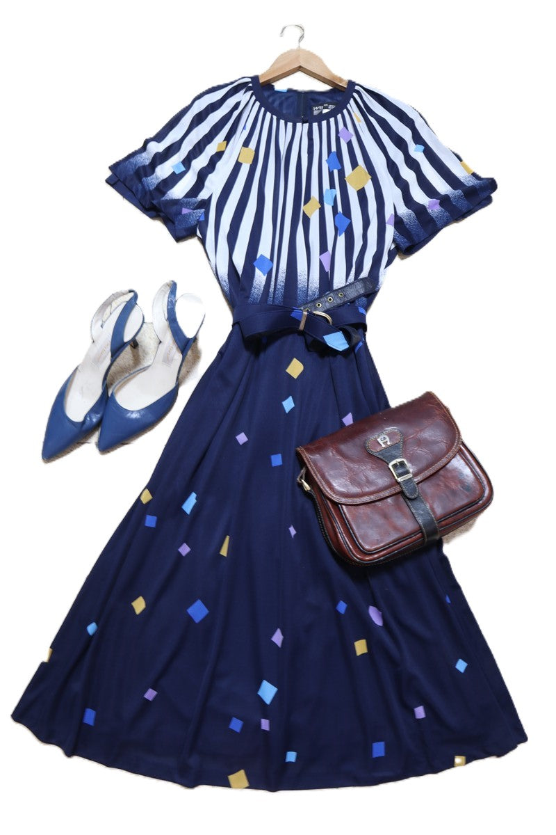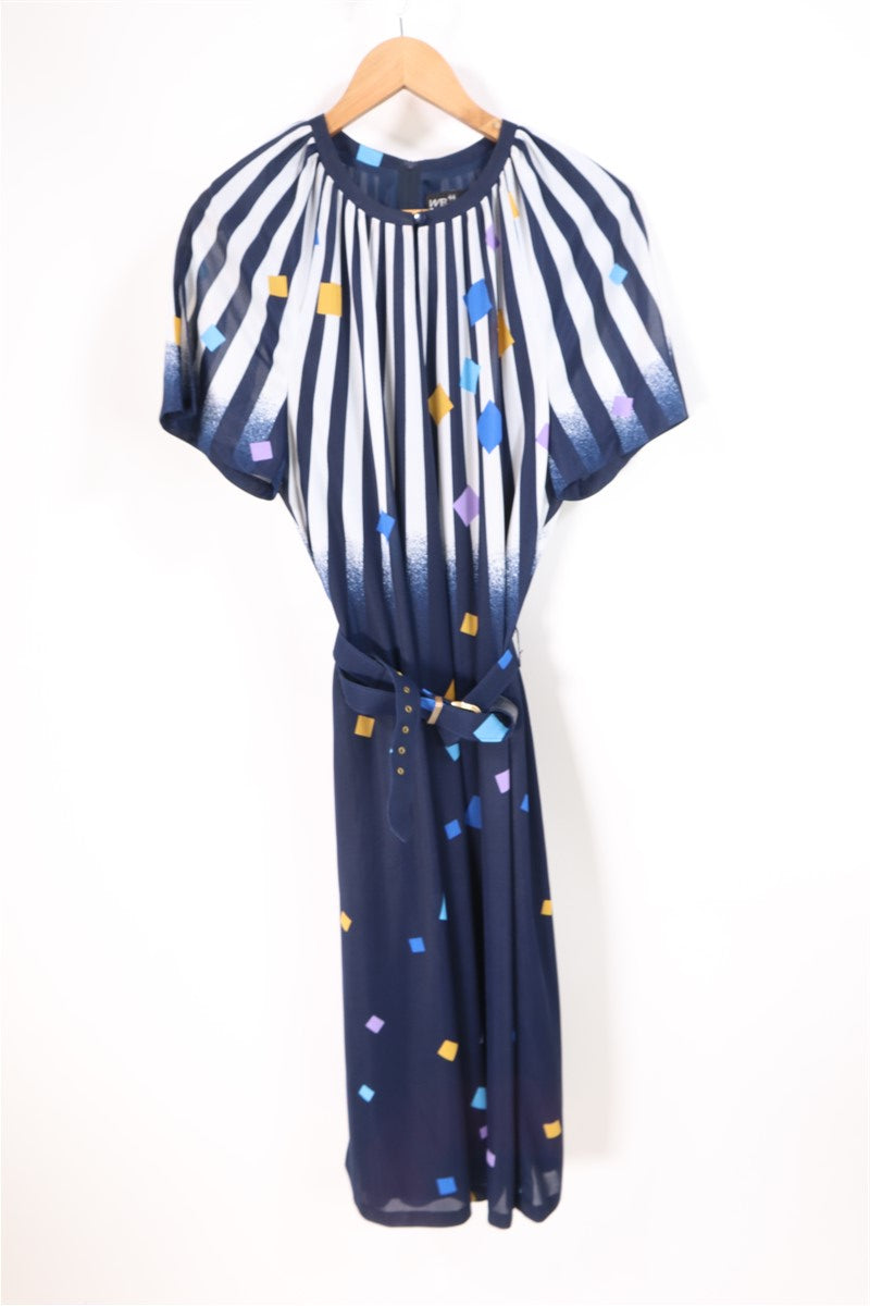 שמלת וינטיג צורות גאומטריות ופסים בכחול-L-XL
