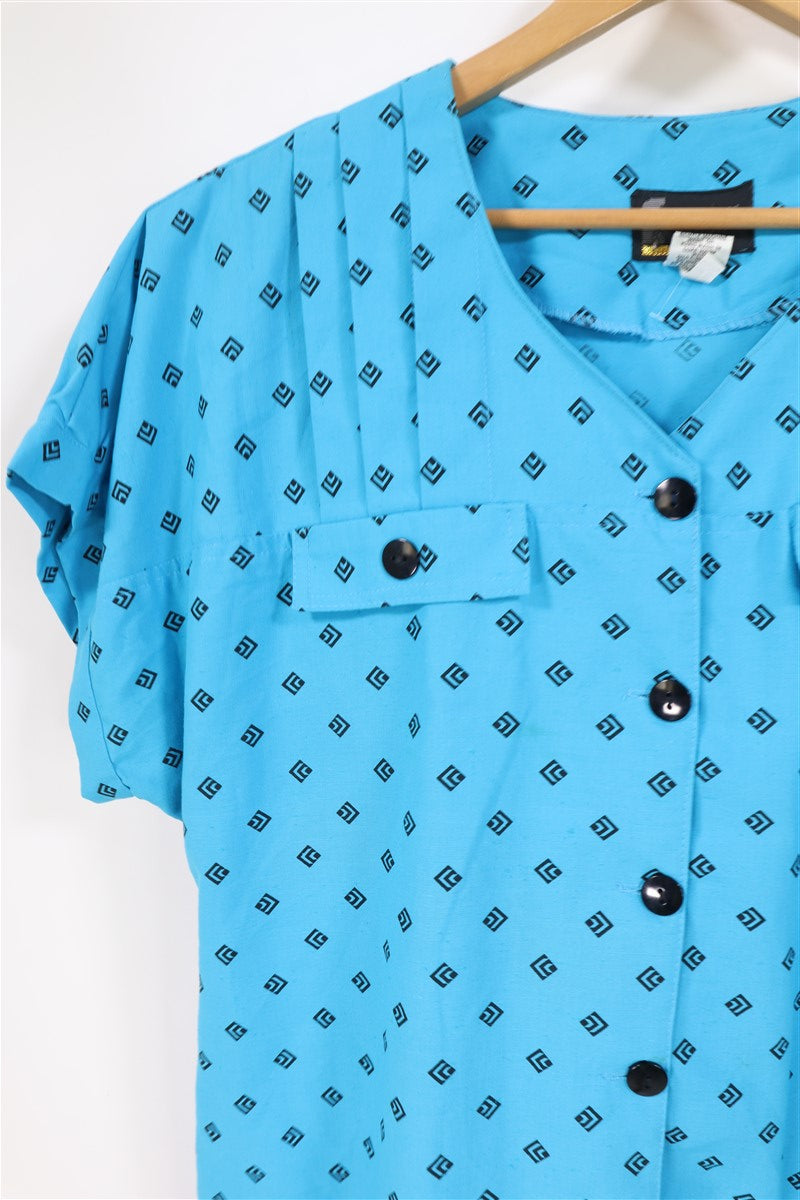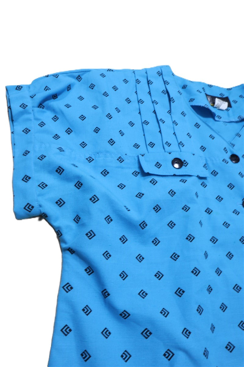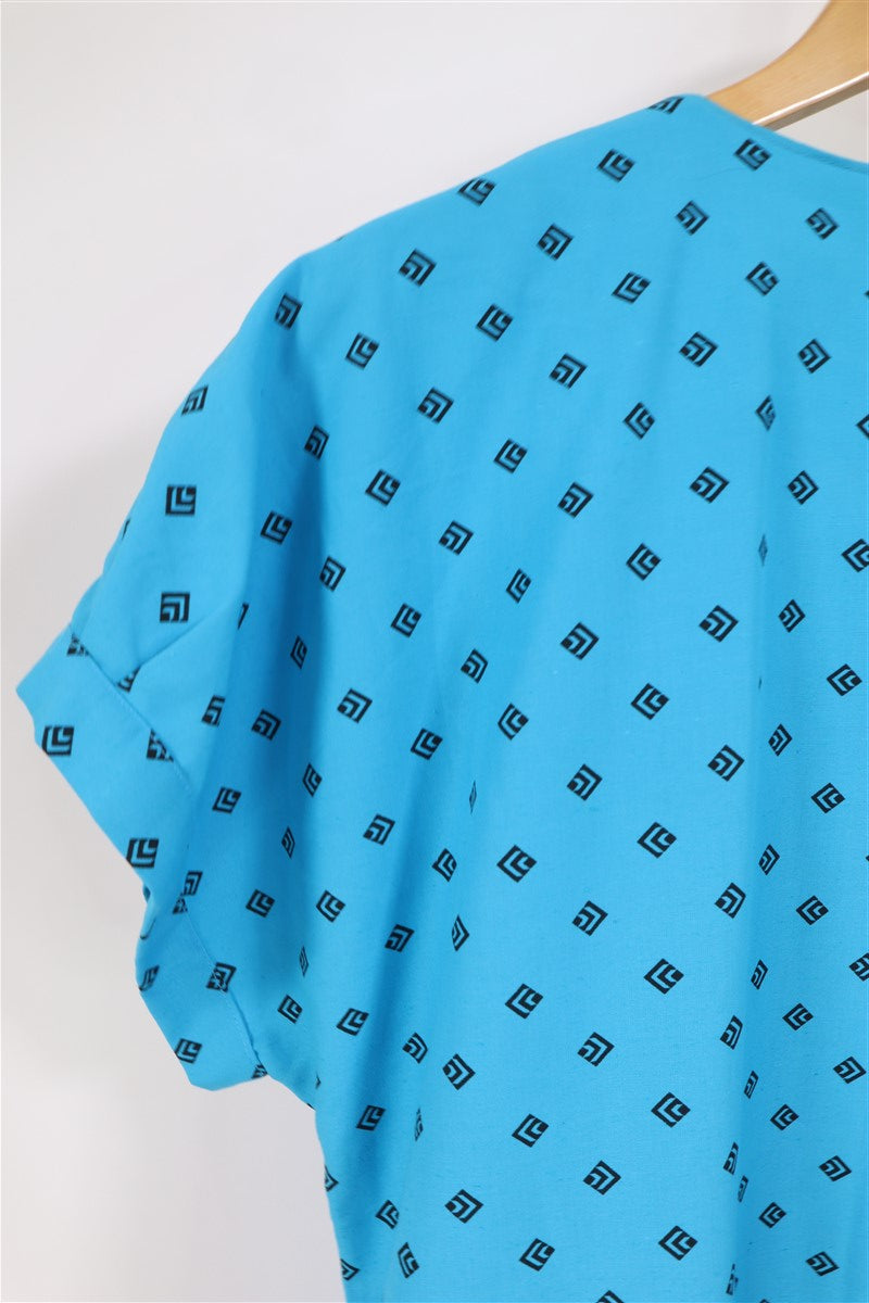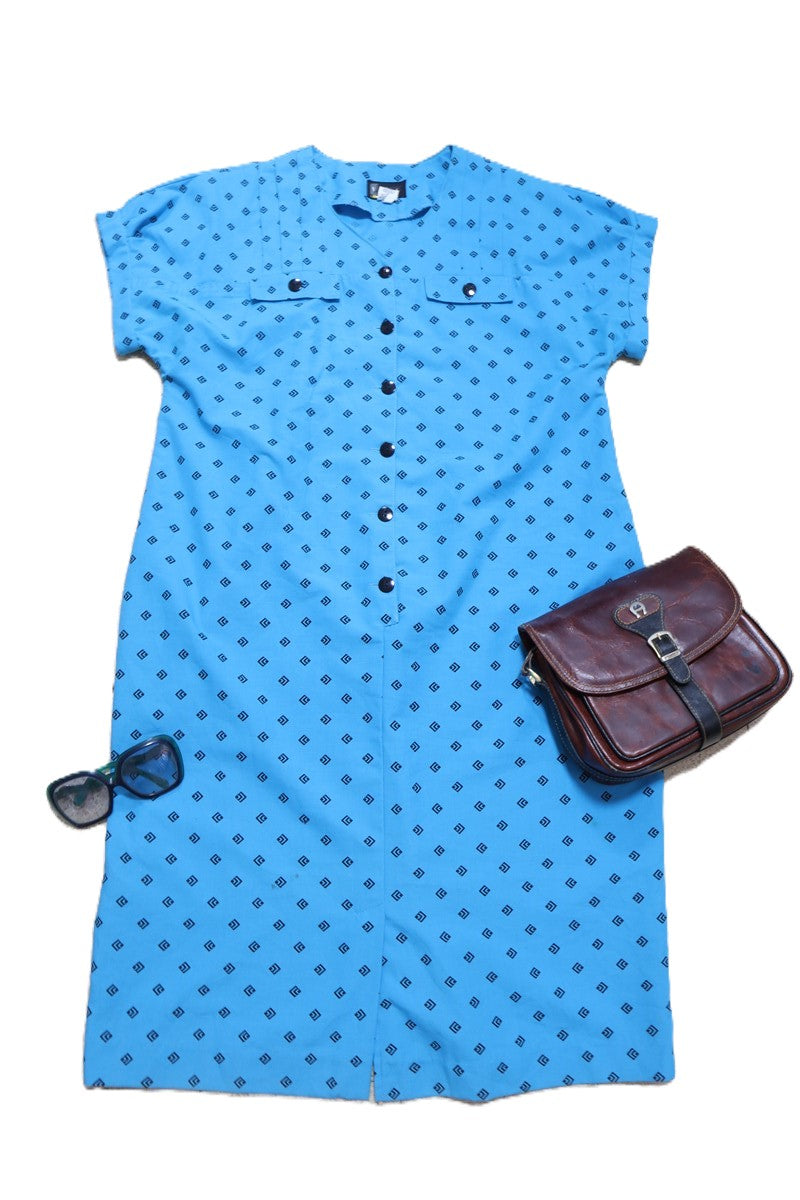 השמלה מכופרת בגזרה ישרה עם דוגמת כיסים וכריות דקות בכתפיים