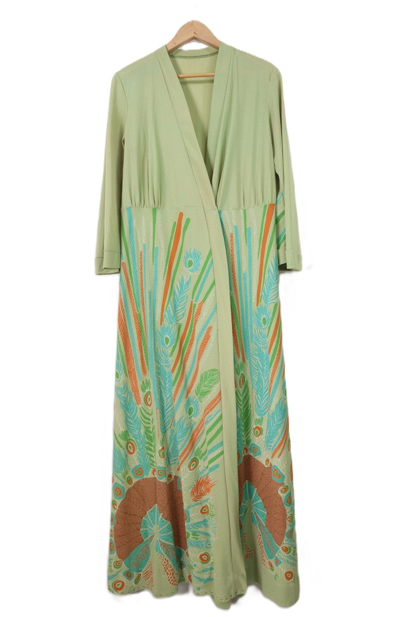 שמלת וינטיג ירקרקה ארוכה ונשפכת