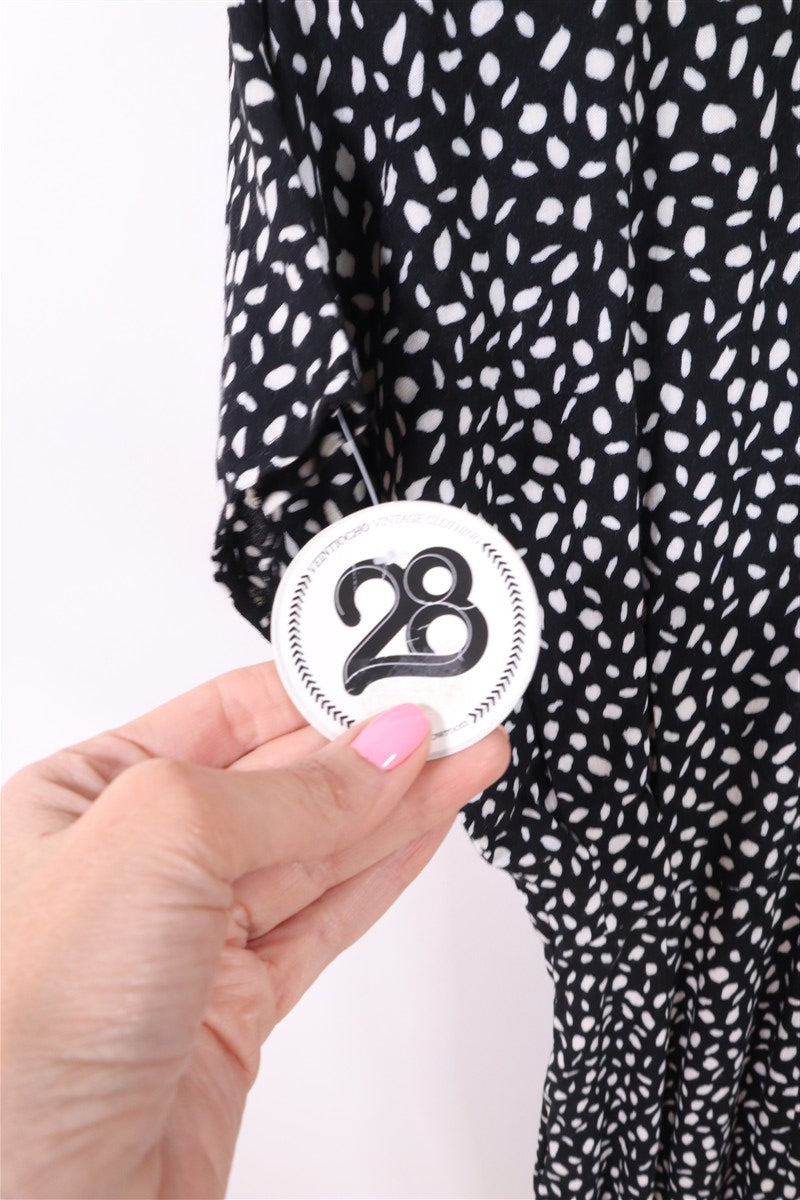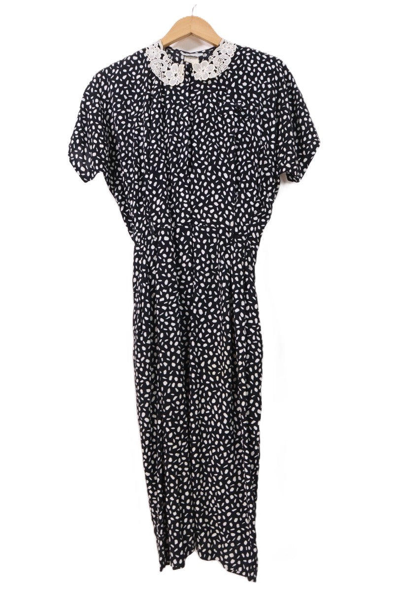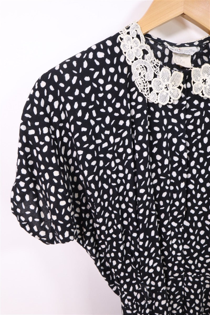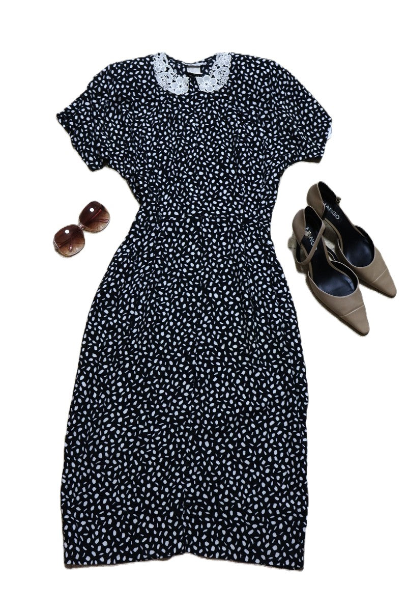 השמלה בגוון שחור עם כתמים קטנים בצבע לבן