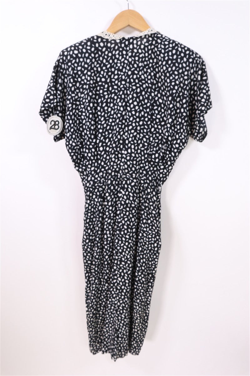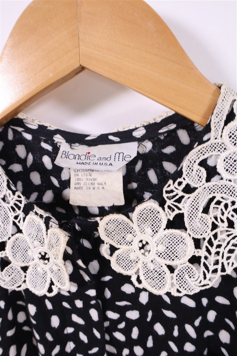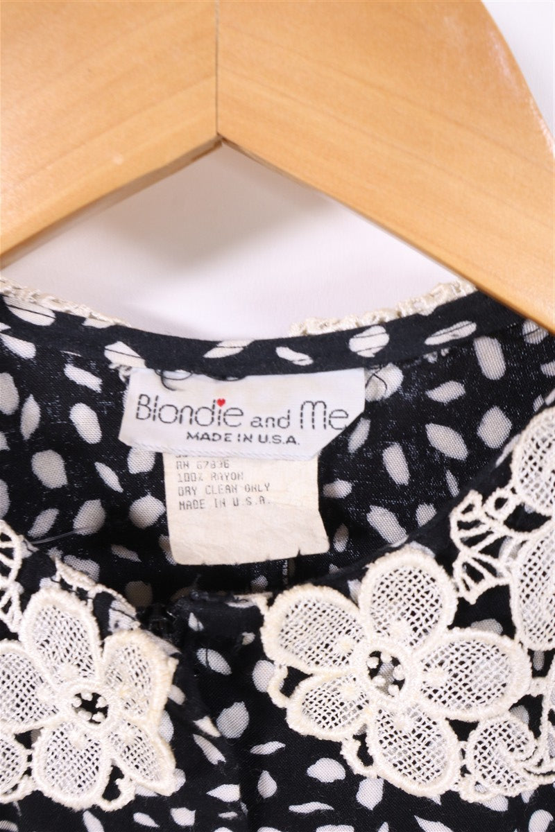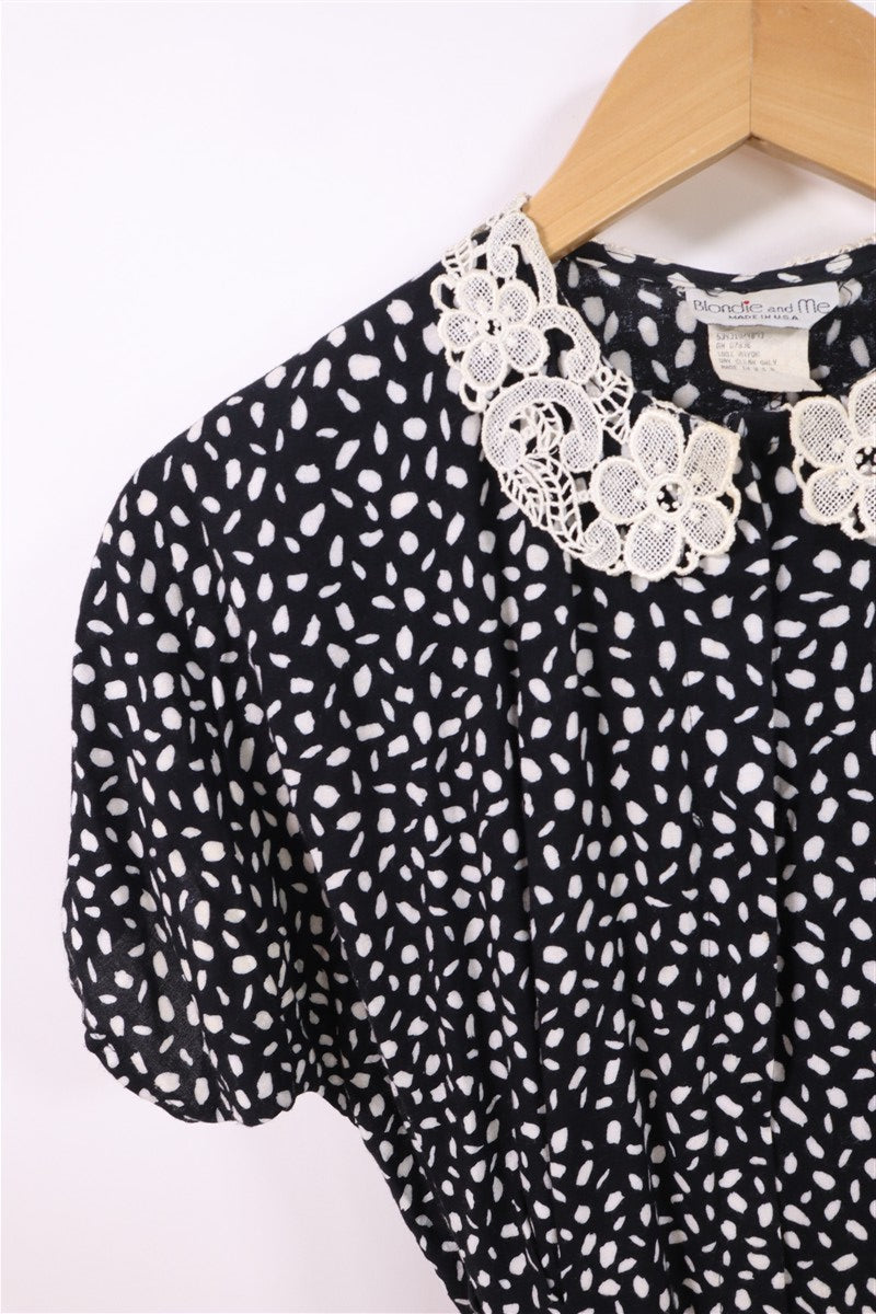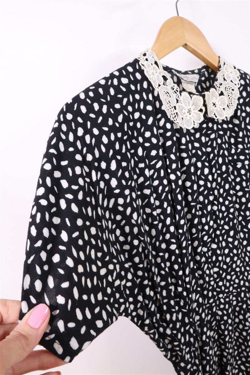 השמלה בגוון שחור עם כתמים קטנים בצבע לבן