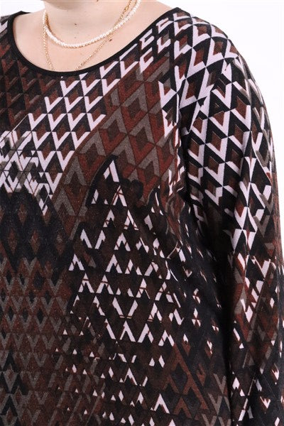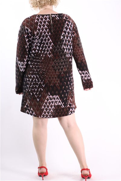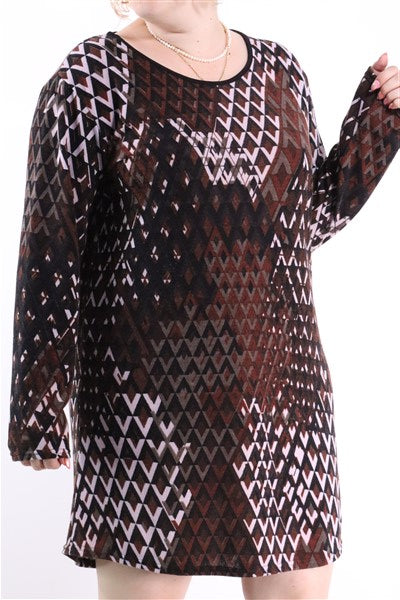 שמלת סריג דקה וקלילה בגווני שחור חום, אדום ואפור. ישנו רוכסן אחורי ללא שם מותג או מידה, מוערכת XL הרכב בד – פוליאסטר ואלסטן אורך 90 ס"מ היקף מותניים 120 ס"מ היקף חזה עד 130 ס"מ מידת הדוגמנית- L |
