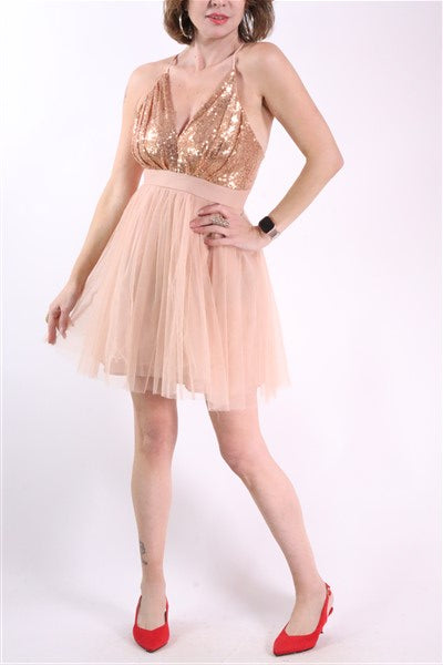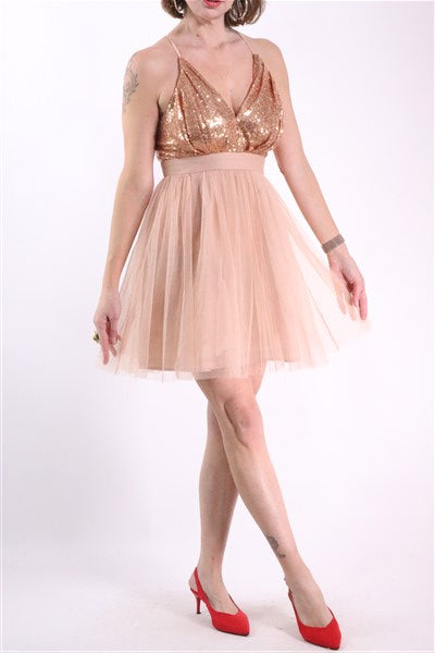 שמלת פייטים בחלק העליון ורשת בחלק התחתון