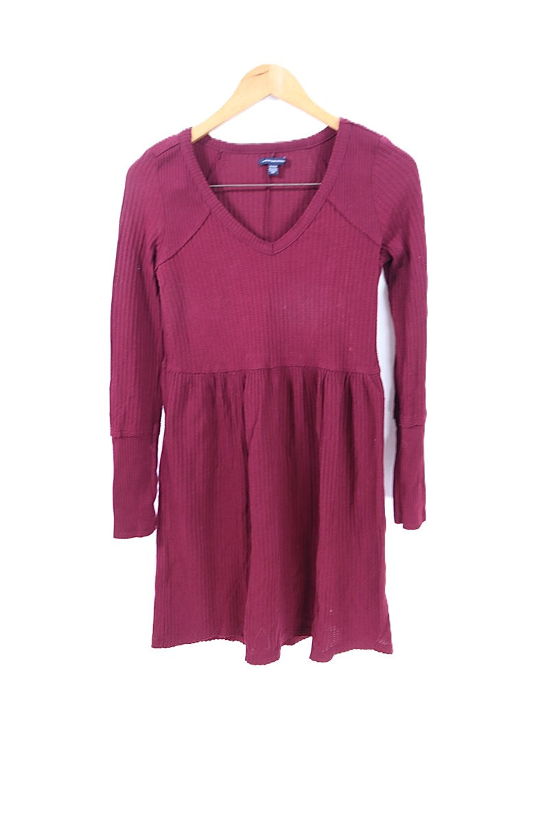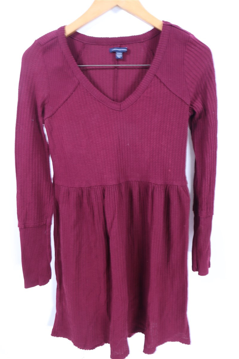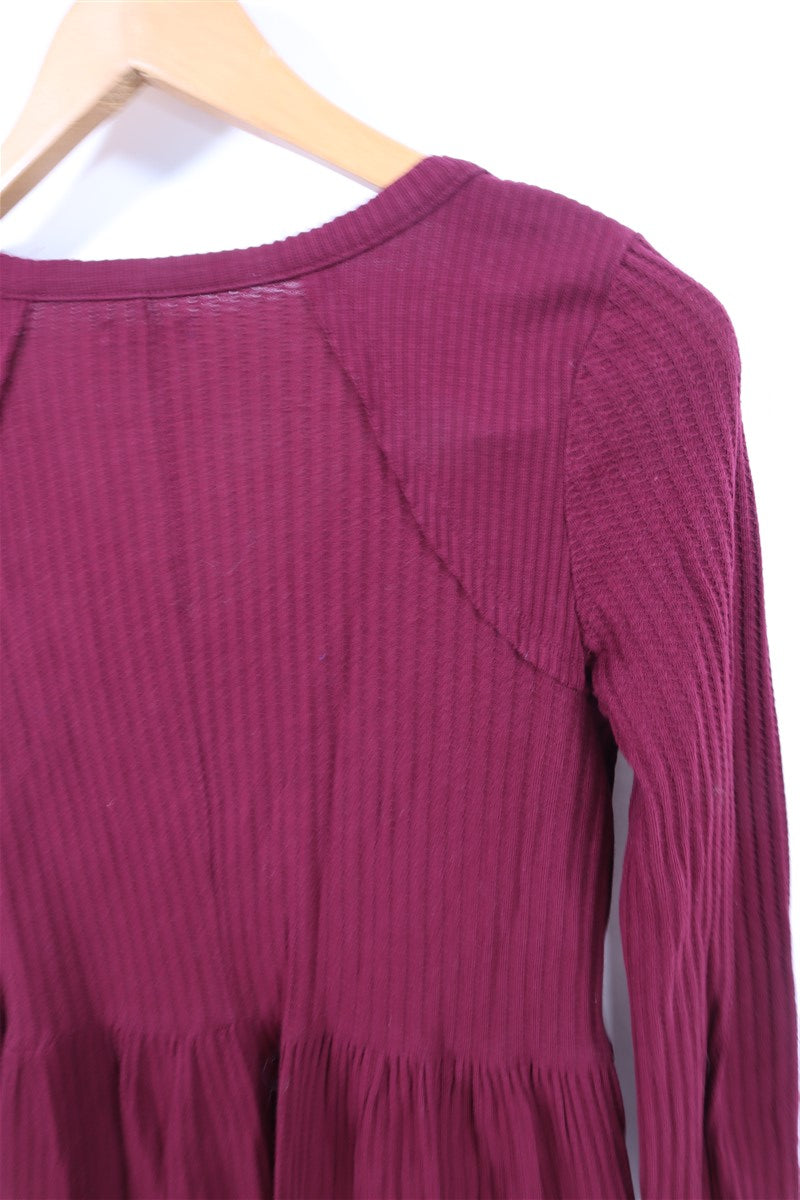 שמלת  קזואל קלילה ובגזרה נשפכת בצבע בורדו חציל