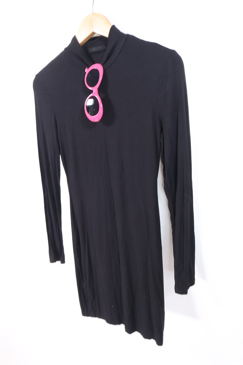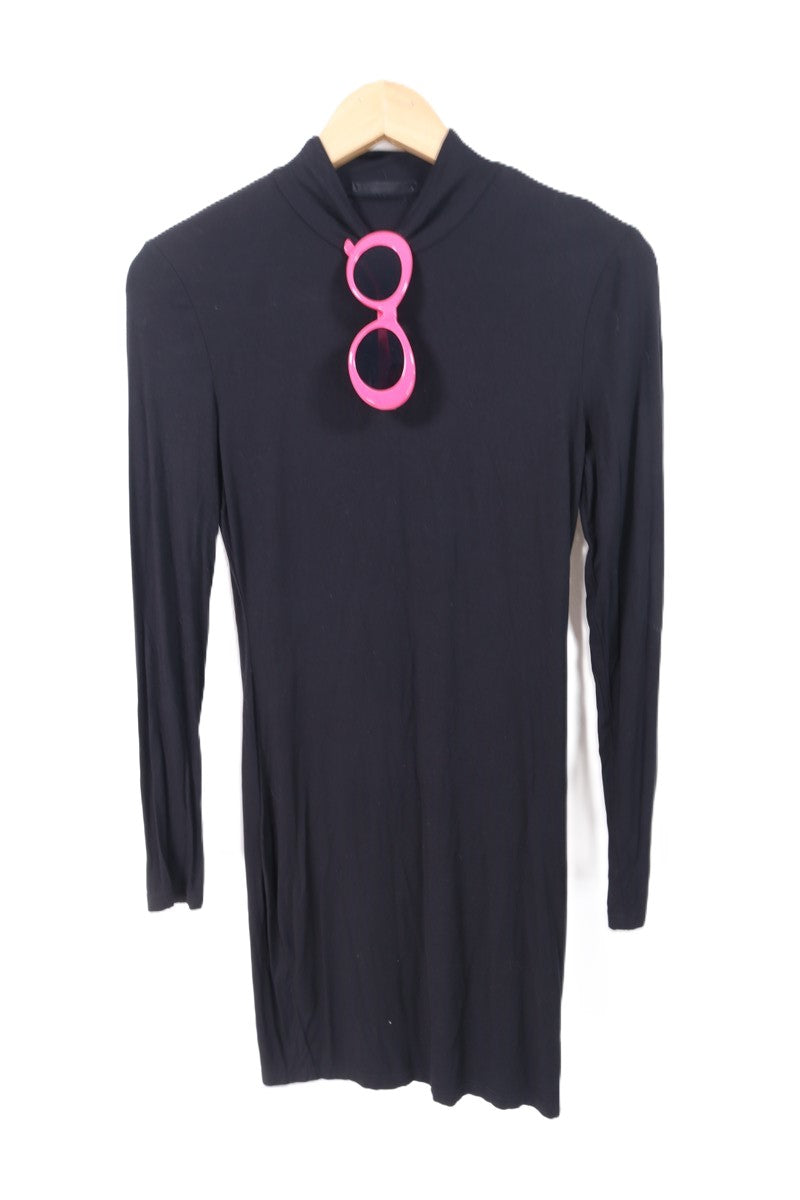 שמלת קזואל בצבע בסיס שחור עם צווארון מיני גולף