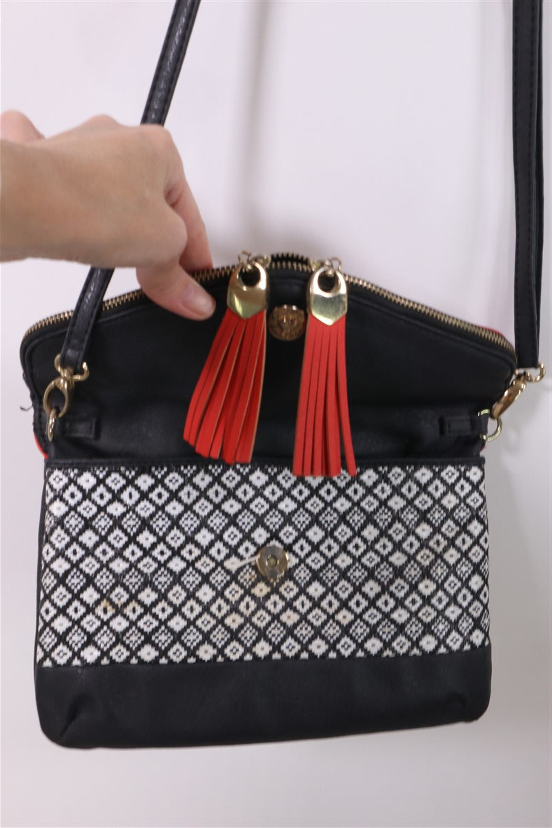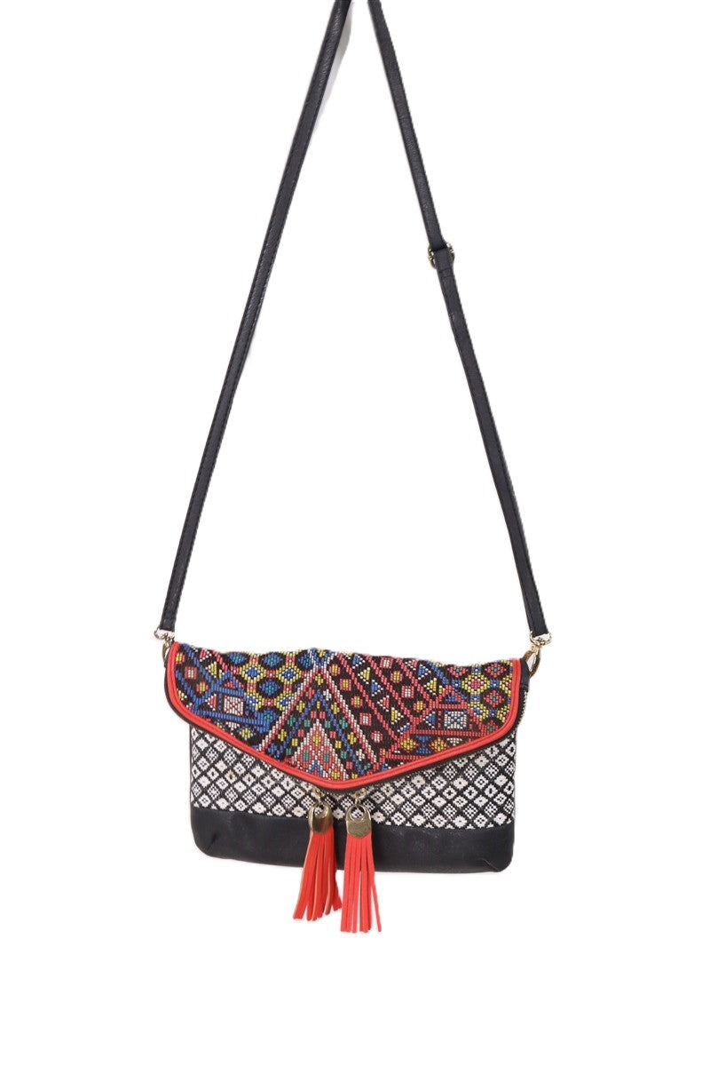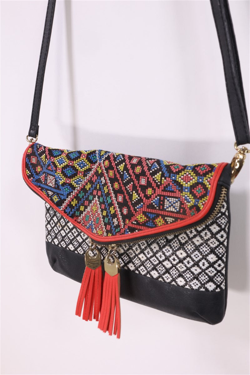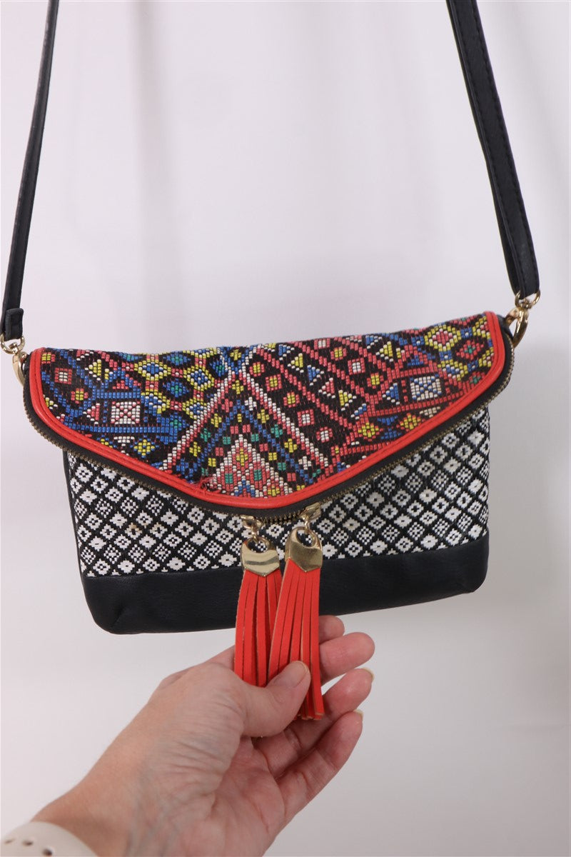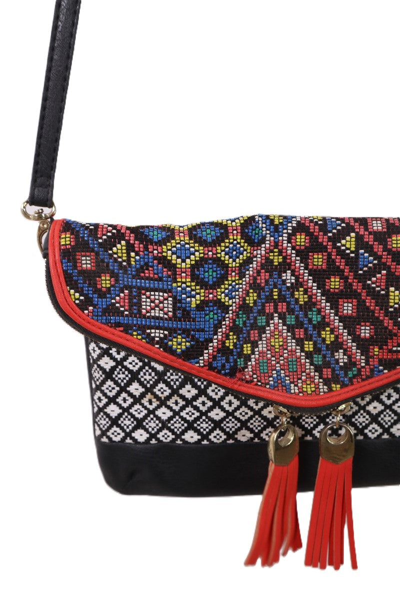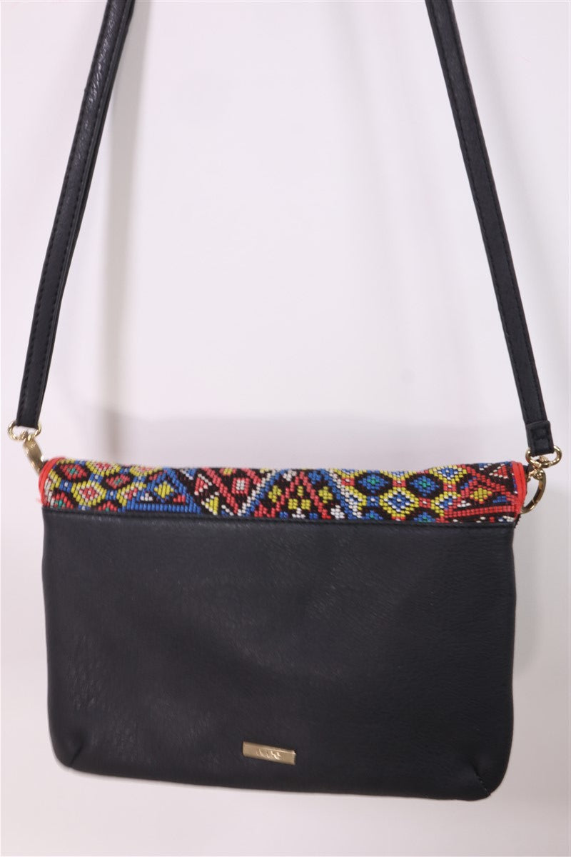 תיק תיק שחור בעיטור חרוזים קטנים וצבעוניים